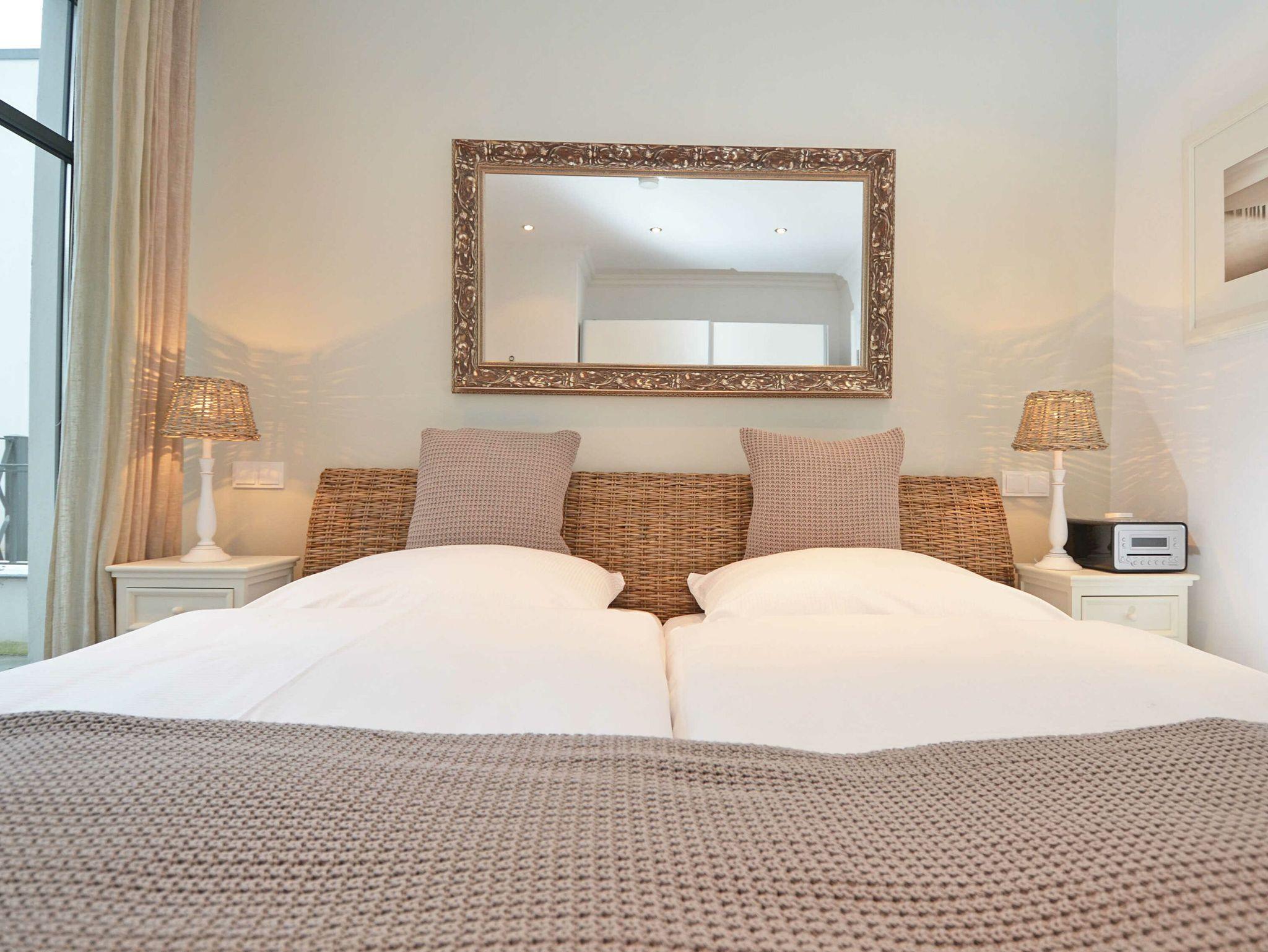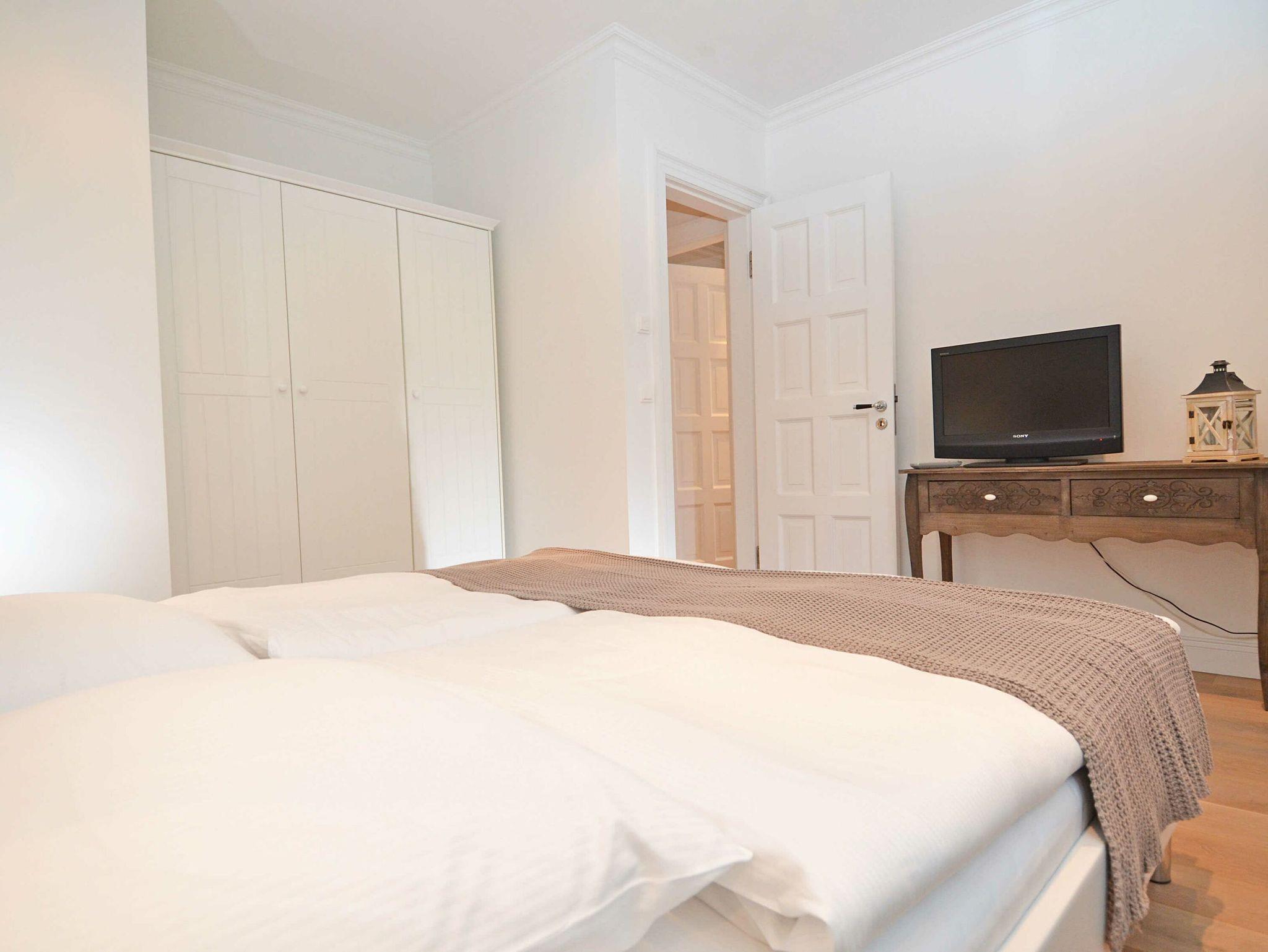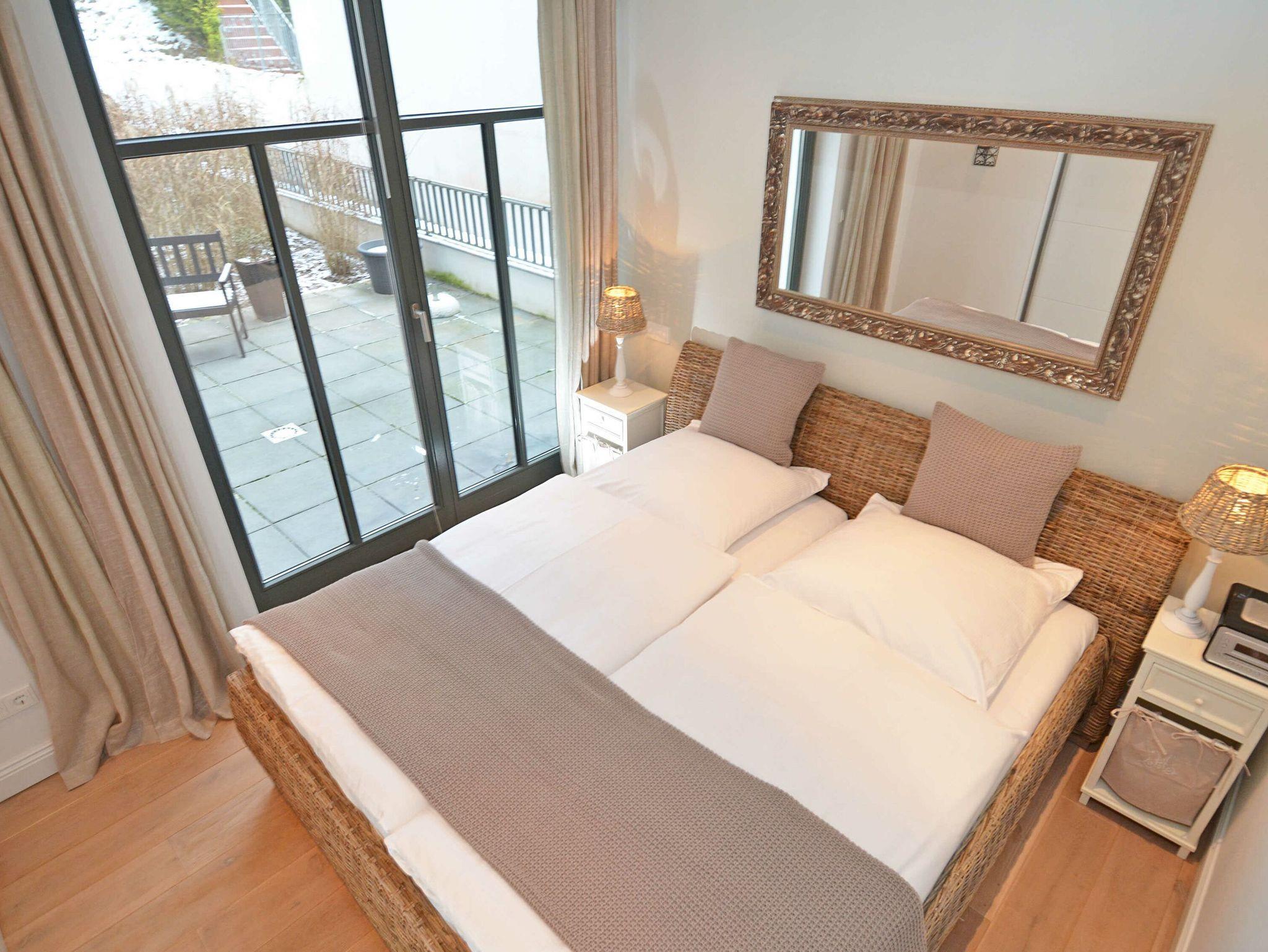 Die beiden Schlafzimmer sind zur sehr ruhig zur Parkseite hin gelegen und verfügen über besonders bequeme Deluxe-Doppelbetten. Von einem der Schlafzimmer aus kann man ebenfalls die große Sonnenterasse betreten. Eines der Schlafzimmer ist zudem mit einem weiteren Flachbild-TV ausgestattet.