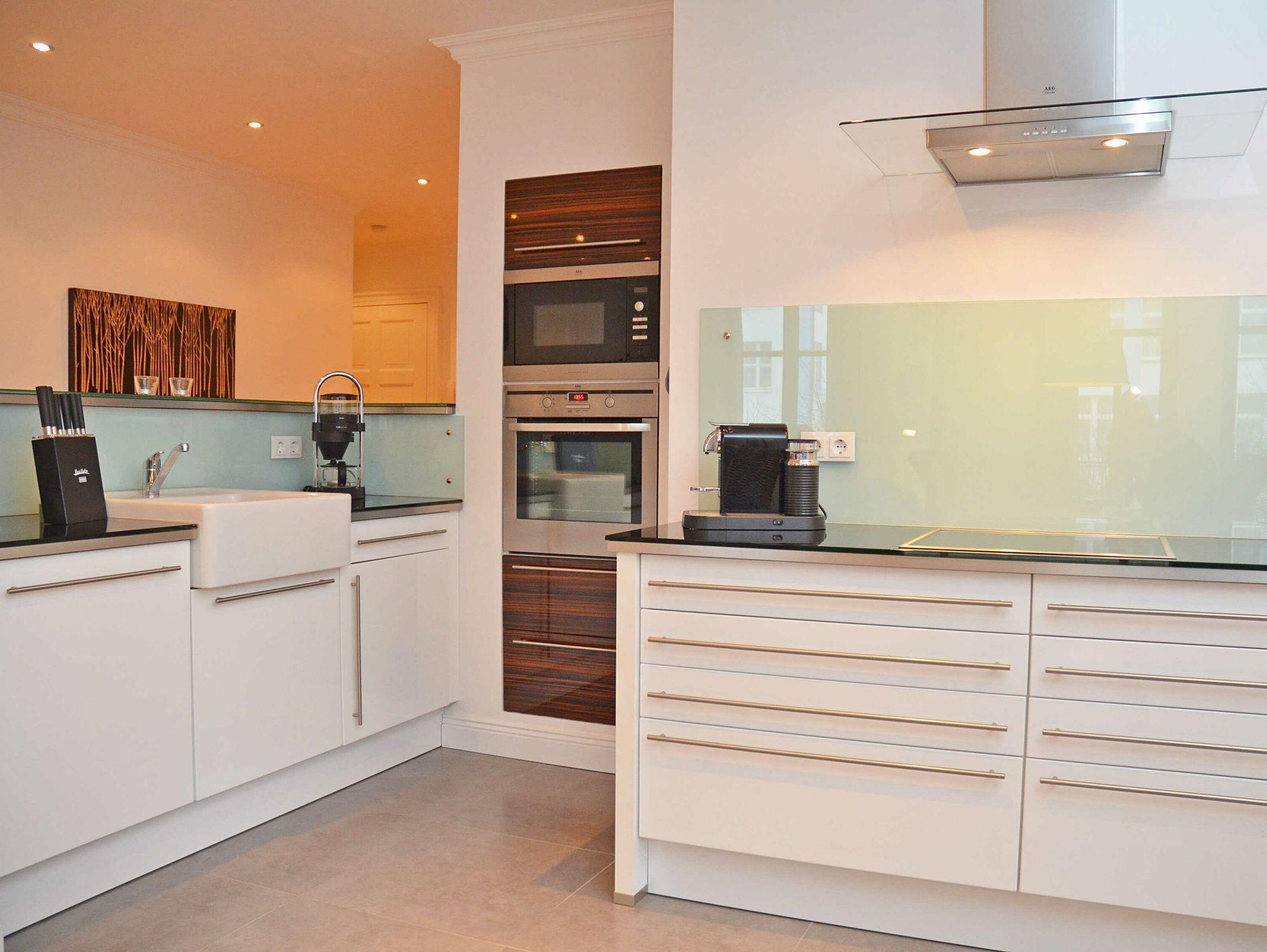 Das individuell geschnittene 3-Raum-Appartement erfüllt dabei auf 85 m² Wohnfläche höchste Wohnansprüche! Die Mischung aus antikem und modernen Mobiliar sowie ausgesuchte warme Stoffe in Kombination mit stilvollen und einzigartigen Akzenten, wie einer kunstvoll geschnitzten Wandtafel aus Java, wurden hier von einer jungen Hamburger Innendesignerin zu einem ganz außergewöhnlichen Raumerlebnis von beeindruckender Eleganz und Wärme vereinigt. Die bodentiefen Fenster durchfluten alle Räume mit Tageslicht und bieten zudem im Wohnzimmer einen wunderschönen Blick über die architektonisch reizvolle Wilhelmstrasse.