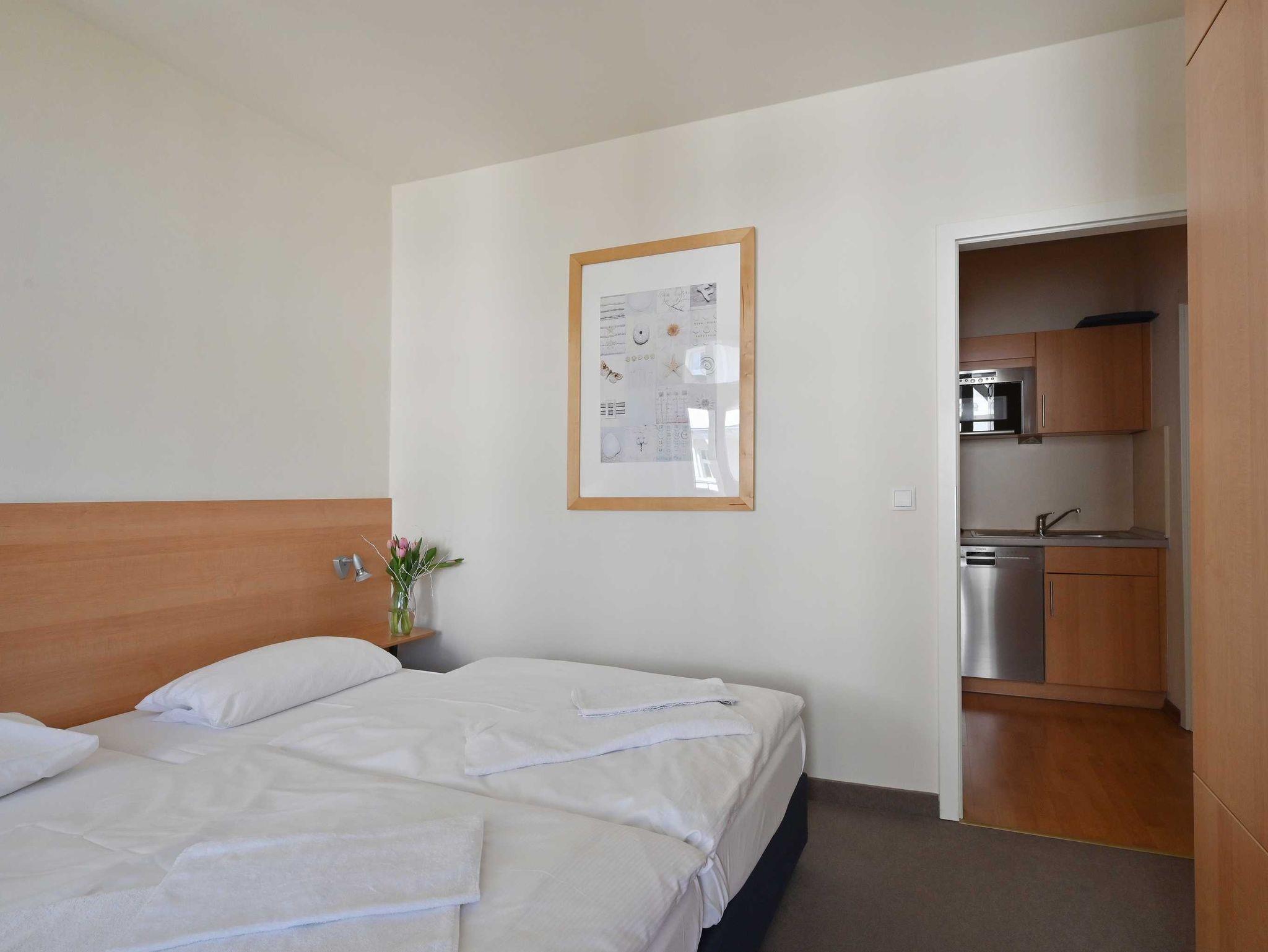 Ein Doppelbett, zwei Einzelbetten, eine Doppelschlafcouch, zwei Balkone, voll ausgestattete Küchenzeile (mit Geschirrspüler, Mikrowelle, Backofen, Tiefkühlfach), Bad (mit Dusche, WC), Fahrstuhl in das 2. Obergeschoss, kostenlose Sauna-Nutzung, Kinderbett und Kinderstuhl auf Anfrage kostenlos stellbar, kostenlose W-LAN-Nutzung, Münzwaschmaschine und Trockner, Parkplatz (entgeltlich, bitte im Voraus buchen) , Rauchen im gesamten Haus nicht erlaubt (aber auf dem Balkon möglich).