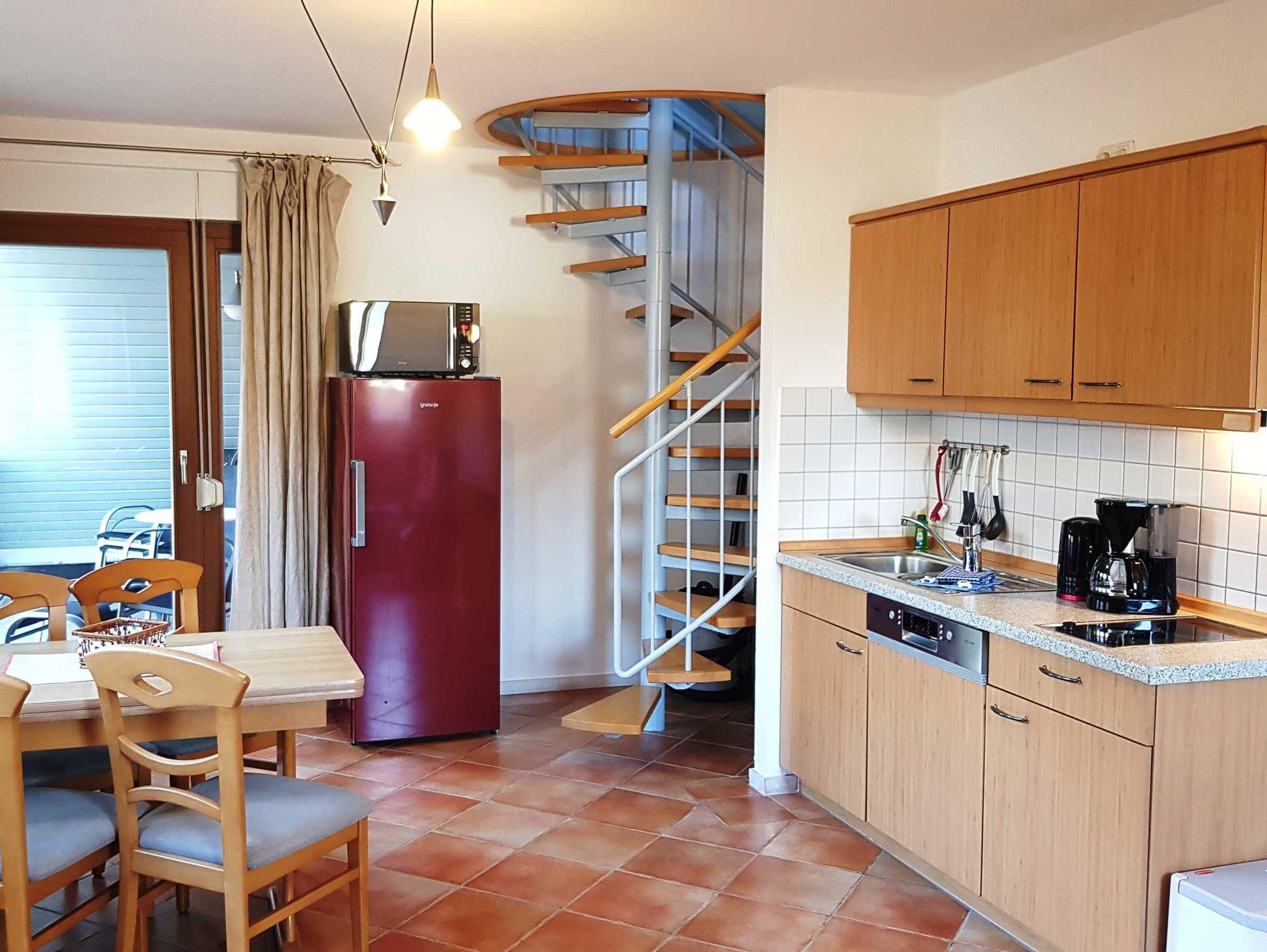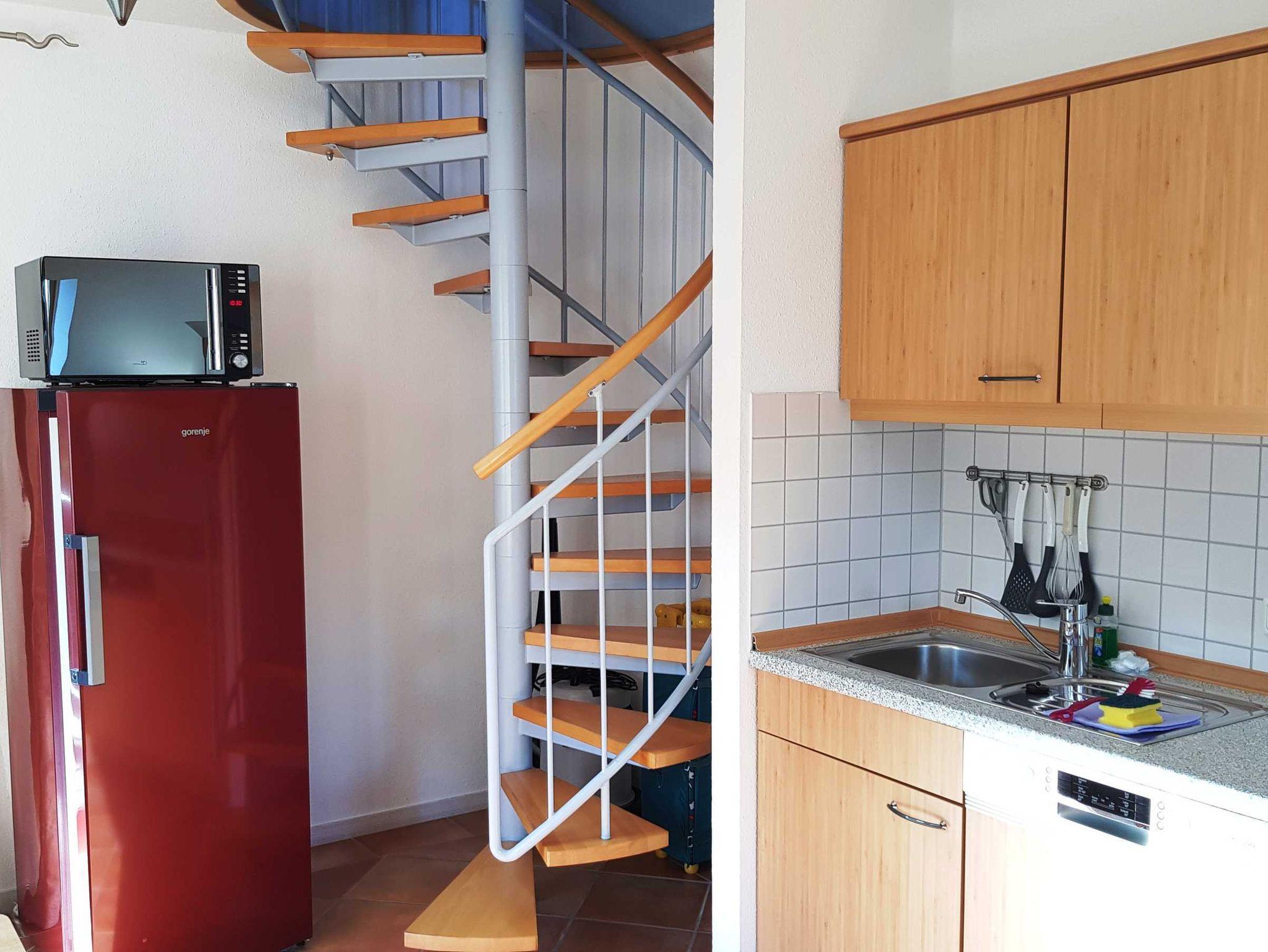 • In der Maisonettenwohnug erreichen sie das Schlafzimmer über eine Wendeltreppe.