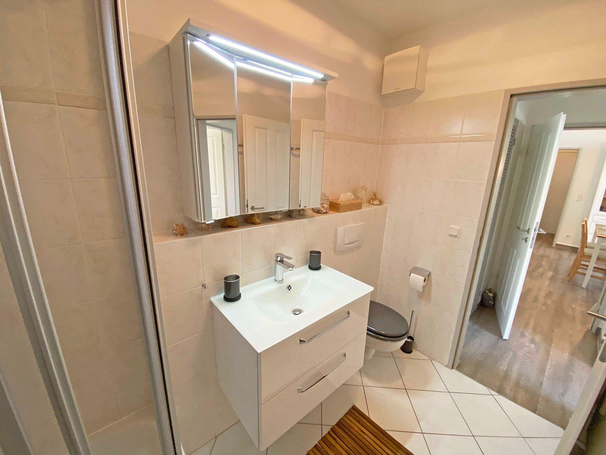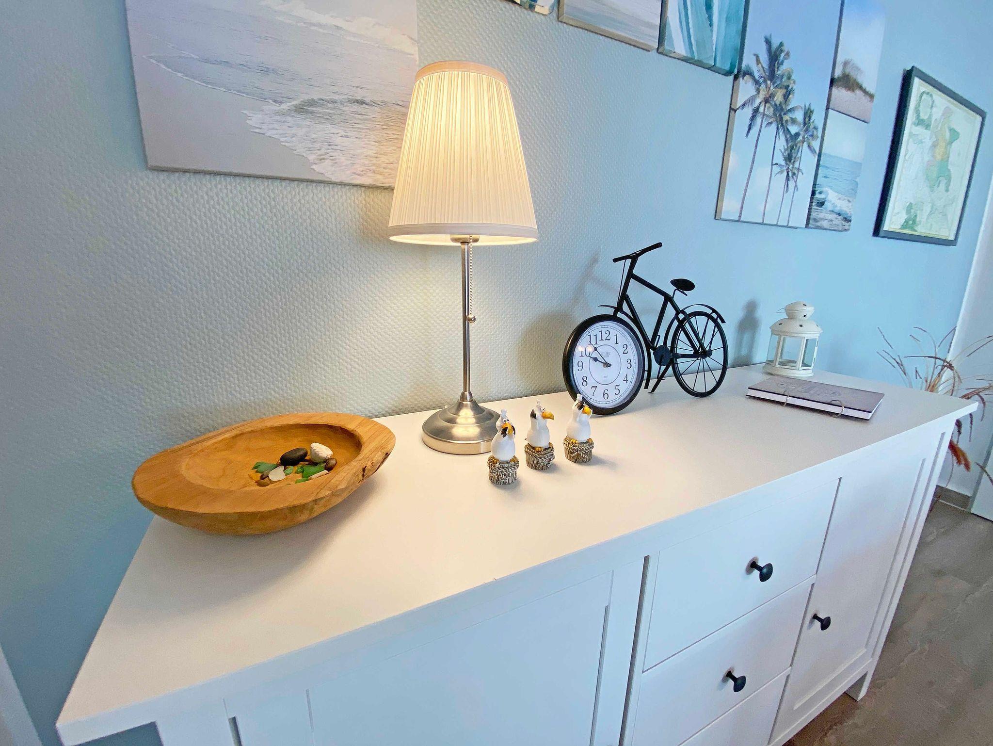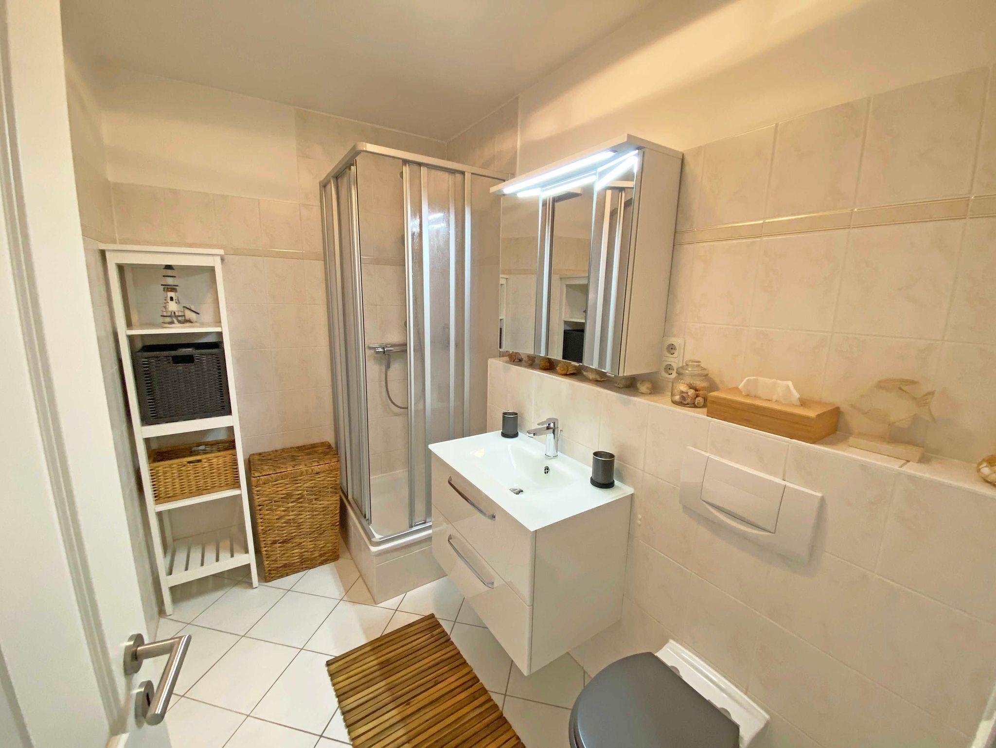 Die modern gestaltete 2-Raumferienwohnung 07 (Nichtraucher) im 1. Obergeschoss des ?Haus Holstein? hält für Sie alles bereit, was Sie für einen erholsamen Urlaub brauchen. Die Wohnung umfasst ca. 48 m² und verfügt für max. 2 Personen über einen komfortablen Wohnbereich mit einer Couch, 2 Relax Sesseln, kostenfreies WLAN, eine Radio/CD-Anlage mit USB-Anschluss sowie einen Smart-TV. Die ebenfalls hier gelegene kleine Einbauküche lässt keine Wünsche offen. Sie können mit einem Backofen, einem Geschirrspüler, einem 2 Zonen-Cerankochfeld mit Dunstabzugshaube und einem Kühlschrank mit einem Gefrierfach alles so zubereiten, wie Sie es von zu Hause kennen. Natürlich finden Sie hier auch eine Mikrowelle, den Wasserkocher, Toaster, Senseo Padmaschine und die Kaffeemaschine für einen guten Start in Ihren Urlaubstag. Angrenzend komplettiert ein Essbereich diesen Raum. Im Schlafzimmer stehen für Sie ein Boxspringbett (1,60m x 2,00m) und zwei Nachtschränke sowie eine Verdunklungsmöglichkeit. Außerdem verstauen Sie hier Ihre Kleidung im Kleiderschrank und einer Kommode. Vom Schlafzimmer gelangen Sie, wie auch vom Wohnbereich, auf Ihren bestuhlten Balkon (Westen) wo Sie bei abendlicher Sonne den Ausklang eines wunderschönen Urlaubstages genießen können. Das innenliegende Bad ist mit einem WC, einer Dusche sowie einem Waschtisch ausgestattet. Hier finden Sie neben einem Spiegelschrank auch einen Fön. Zur Wohnung gehört ein kostenfreier PKW-Stellplatz Nr.07, der sich am Haus befindet. Im Keller des Gebäudes stehen für Sie eine Waschmaschine und ein Trockner gegen Gebühr zur Verfügung. Auch für Ihre Fahrräder finden Sie geschützte Abstellmöglichkeiten. Haustiere sind nicht erlaubt. Die Erstausstattung eines Wäschepaketes (komplette Bettwäsche, 1 Duschhandtuch, 1 kleines Handtuch) können Sie bis 14 Tage vor der Anreise gegen einen Aufpreis dazu buchen oder durch eigene ergänzen. Ab 2 gebuchten Paketen erhalten Sie einmalig 1 Geschirrtuch und einen Duschvorleger dazu.