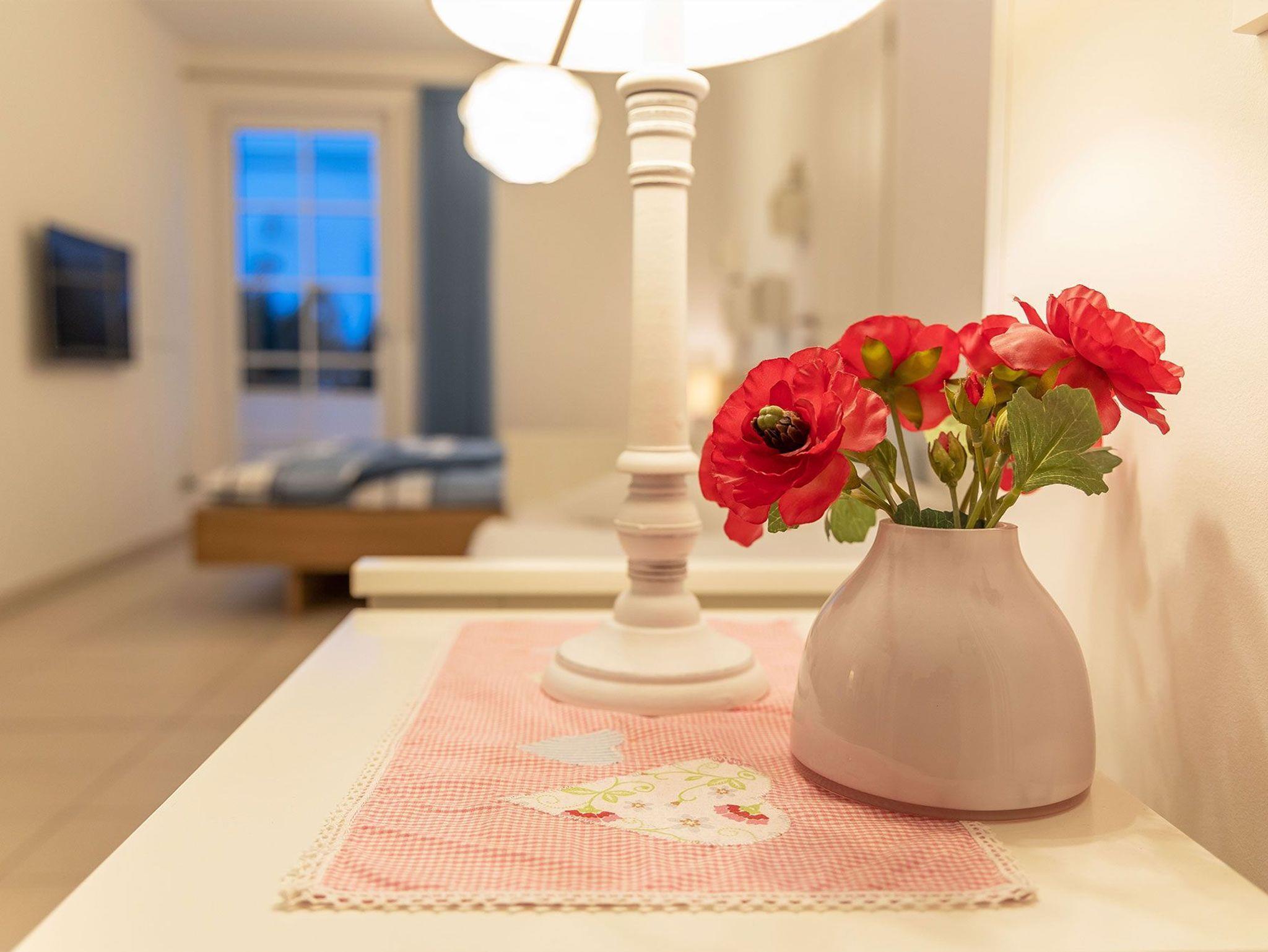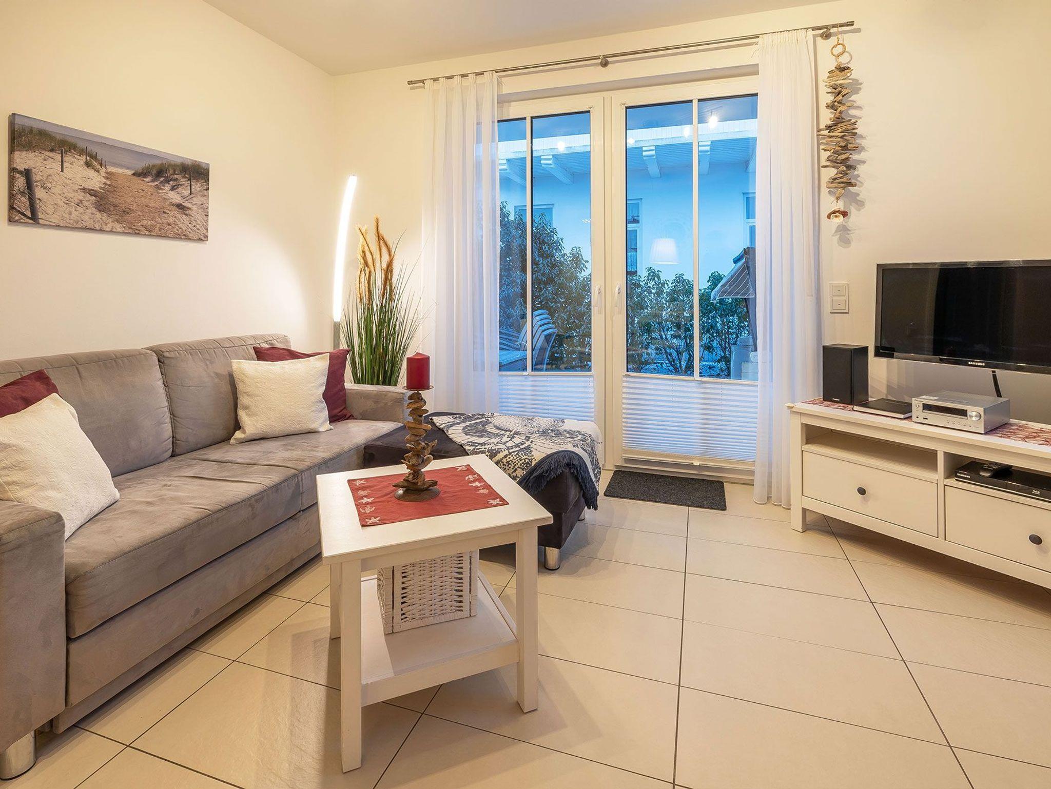 Ein Urlaubstraum auf stolzen 56 qm erwartet Sie in der Villa Annika, mit einem ganz besonderen Charme. Der Mittelpunkt Ihrer Ferienwohnung ist der Wohn- und Essbereich mit einer perfekt ausgestatteten Küchenzeile, einem direkten Zugang zur Terrasse und einem wohnungseigenen Strandkorb. Hier können Sie Ihr Glas Wein in der Abenddämmerung genießen.