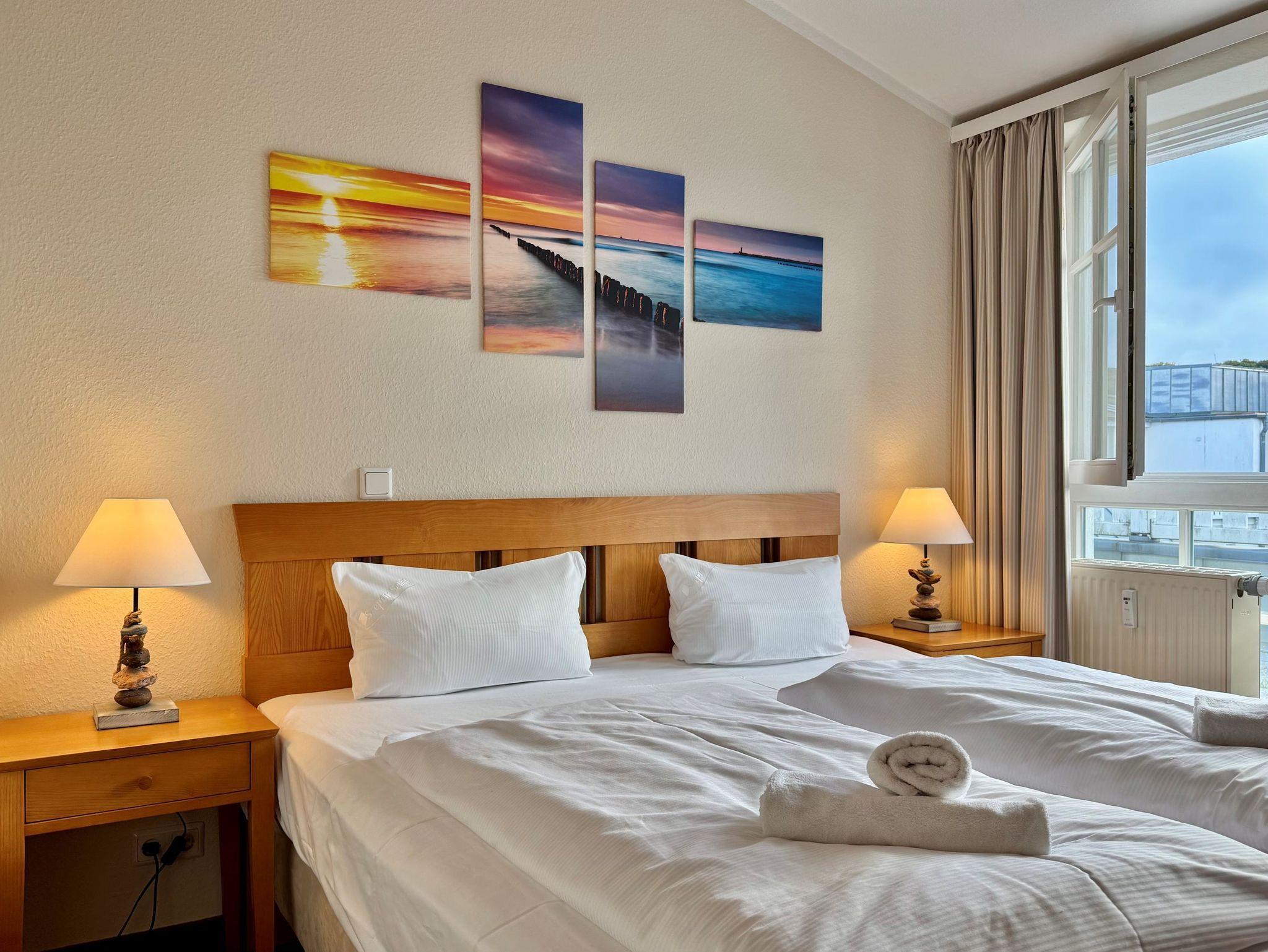 Gemütliche Ferienwohnung 393 im Seepark Sellin mit Balkon, WLAN, kostenlosem Schwimmbadzugang und Haustierfreundlichkeit.