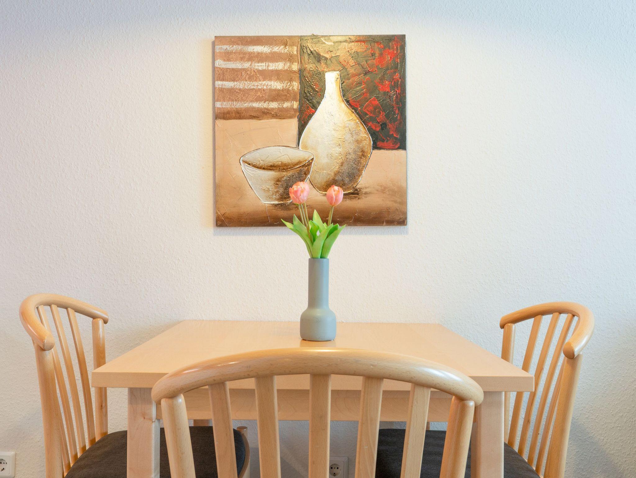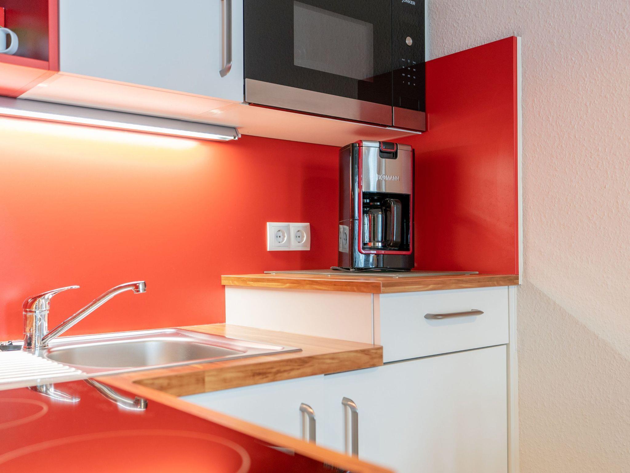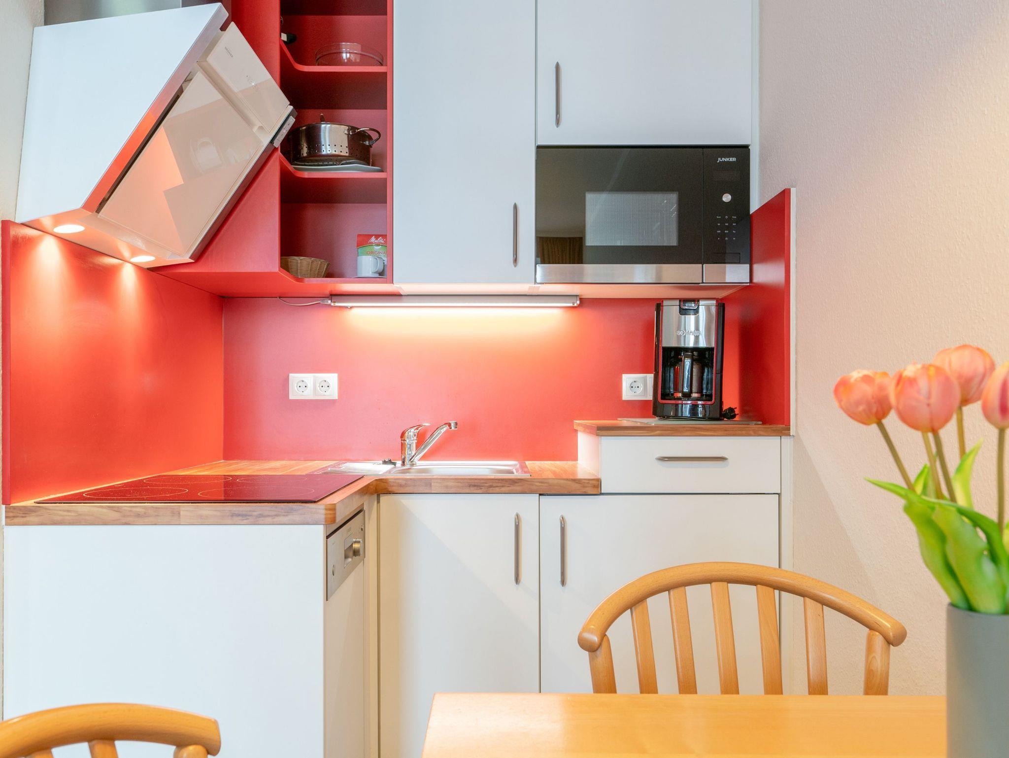Zur Wohnung gehört außerdem ein Balkon, auf dem man entspannt die Sonne genießen kann. Die offene Wohnküche bietet ausreichend Platz zum Kochen und Essen. Für die Unterbringung von Fahrrädern steht ein Fahrradkeller zur Verfügung. Ein WLAN Anschluss sowie ein TV mit Sky-Sendern gehören ebenfalls zur Ausstattung. Für die bequeme Anreise stehen Tiefgaragenstellplätze zur Verfügung und auf Wunsch wird ein Brötchenservice angeboten.