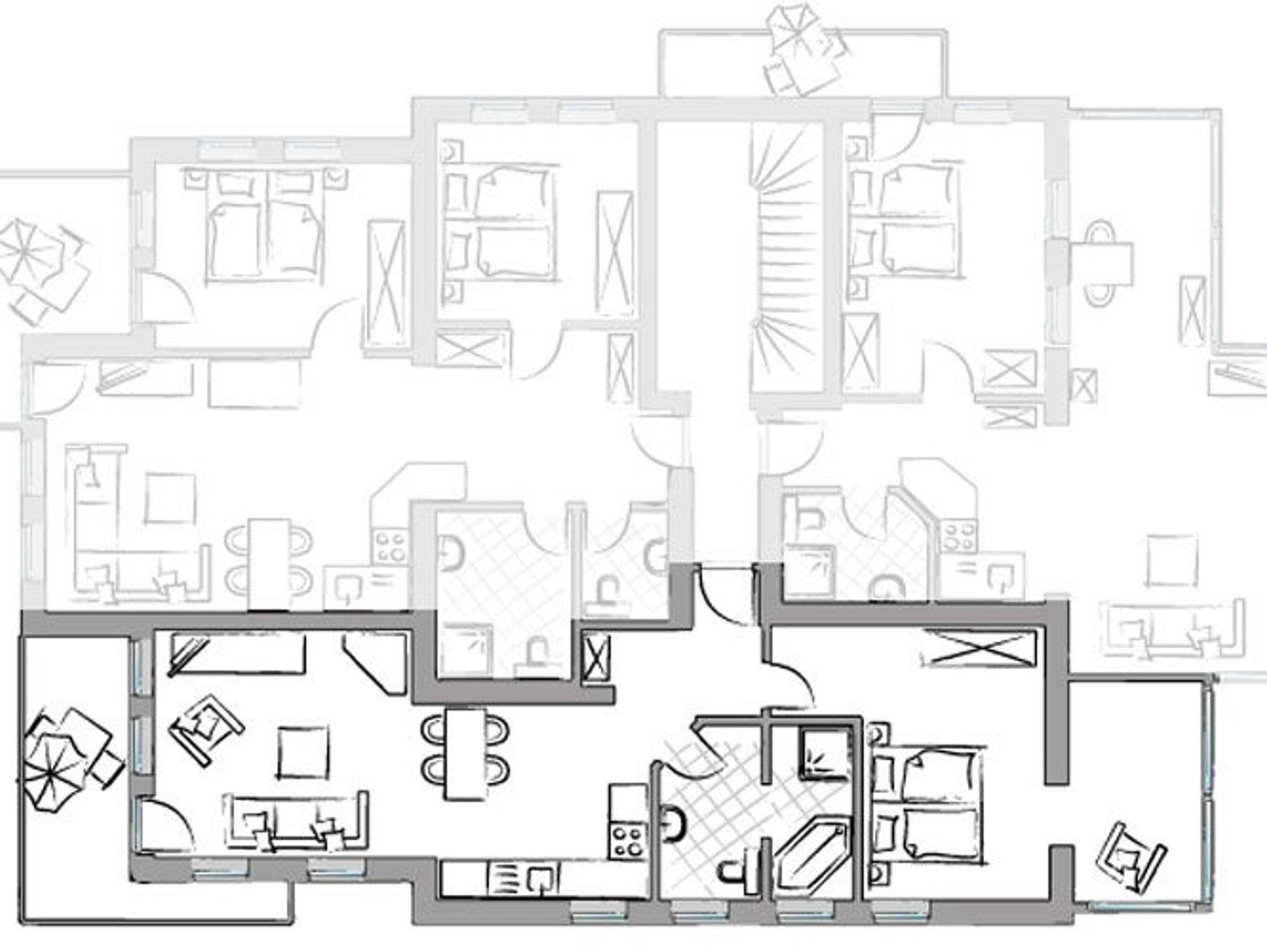 Im Souterrain des Hauses steht ein kleiner Wellnessbereich mit Sauna, Duschen, WC und Ruhezone kostenlos zur Verfügung. Bügelutensilien erhalten Sie kostenlos auf Anfrage. Gegen Gebühr finden Sie im Souterrain eine Waschmaschine, einen Trockner und ein Solariumzu Ihrer Nutzung vor.