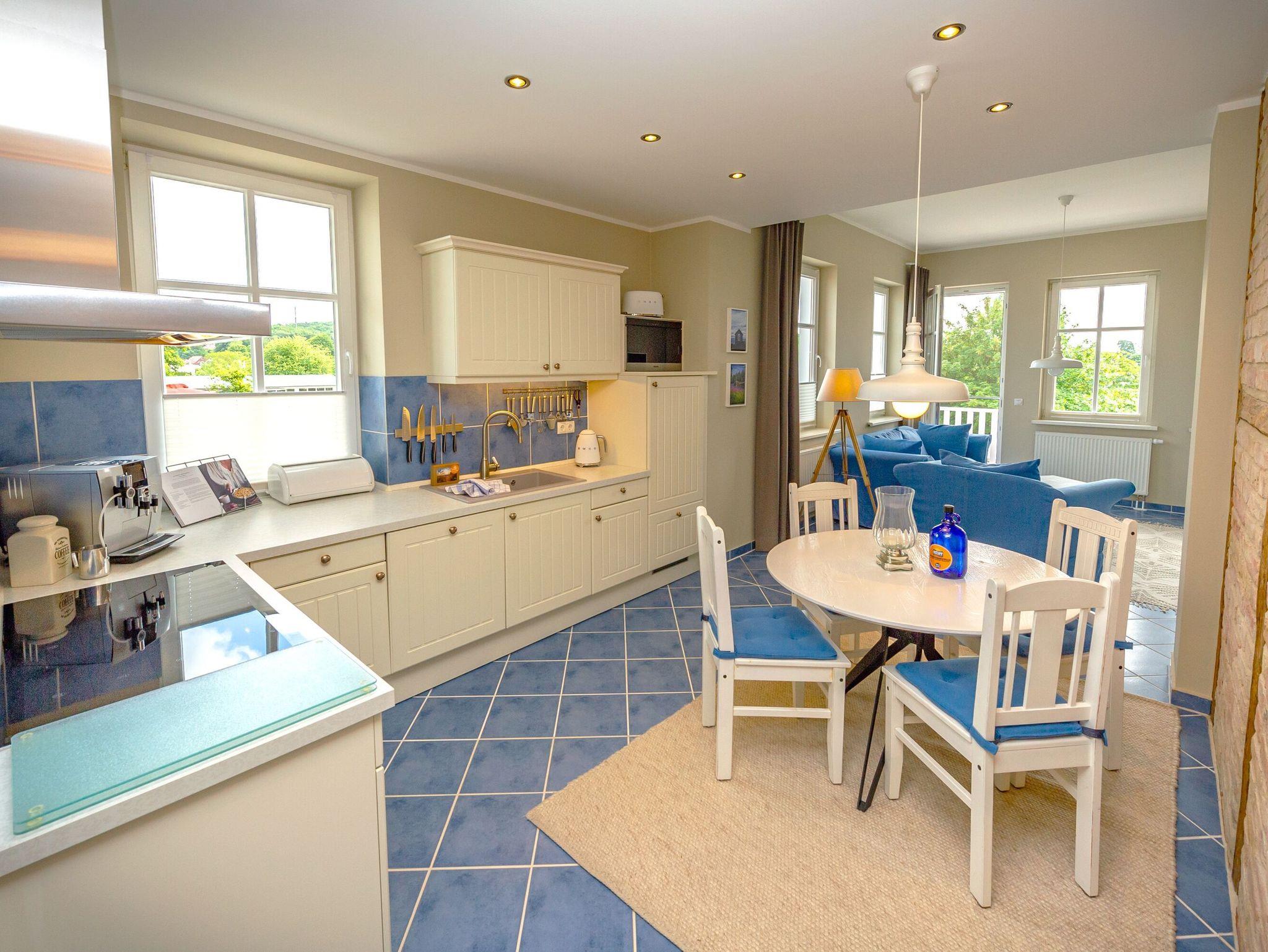 Dieses zauberhafte 2-Raum-Appartement im 1. Obergeschoss ist im weißen Landhausstil eingerichtet, hat eine Wohnfläche von ca. 68 m² und einen großen möblierten Balkon (ca. 11 m²) zur sonnigen Südseite.