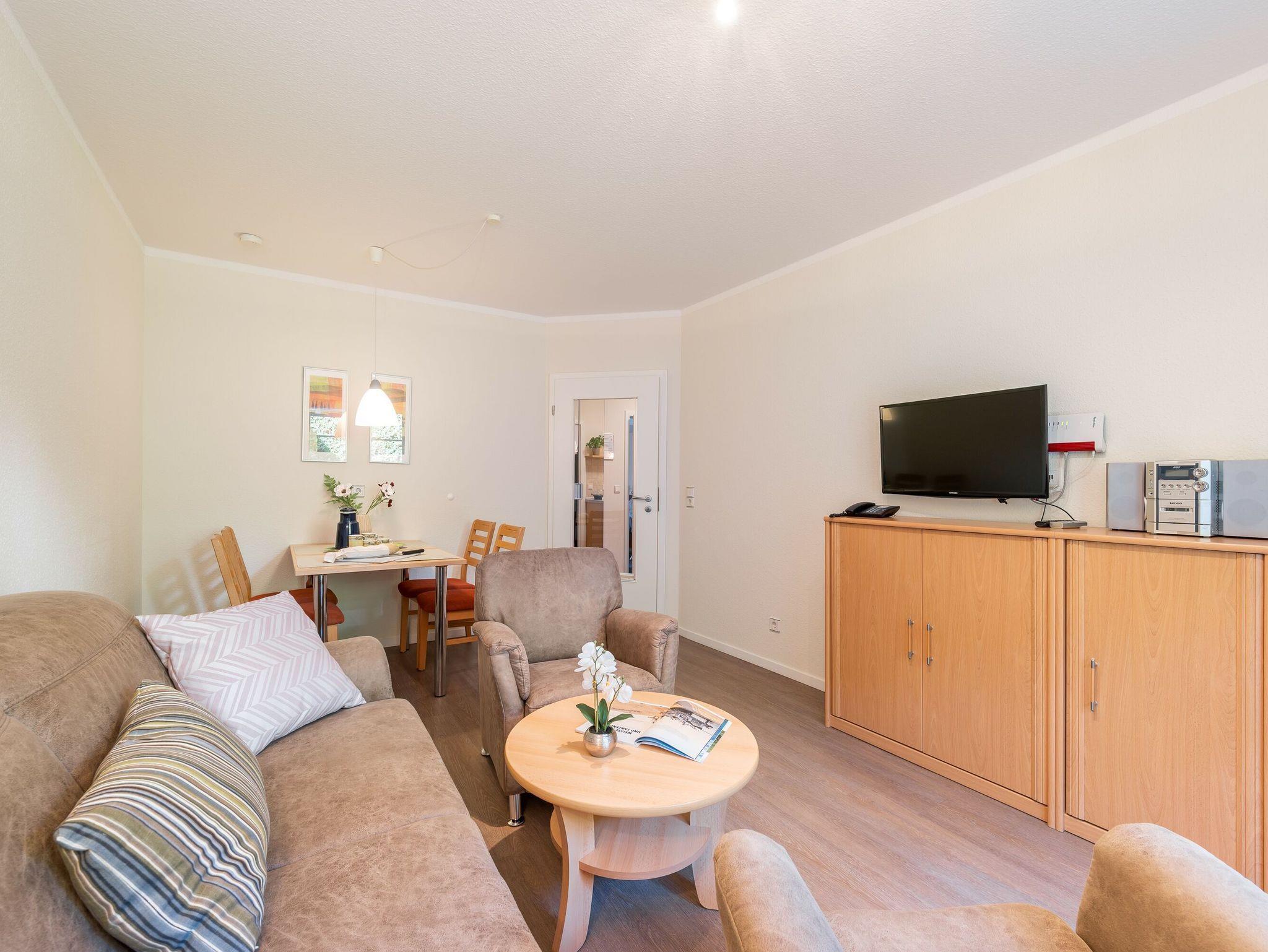 Die freundlich eingerichtete Wohnung 5 in der Ferienanlage Margaretha ist ca. 41 m² groß und für bis zu 2 Personen ausgelegt.