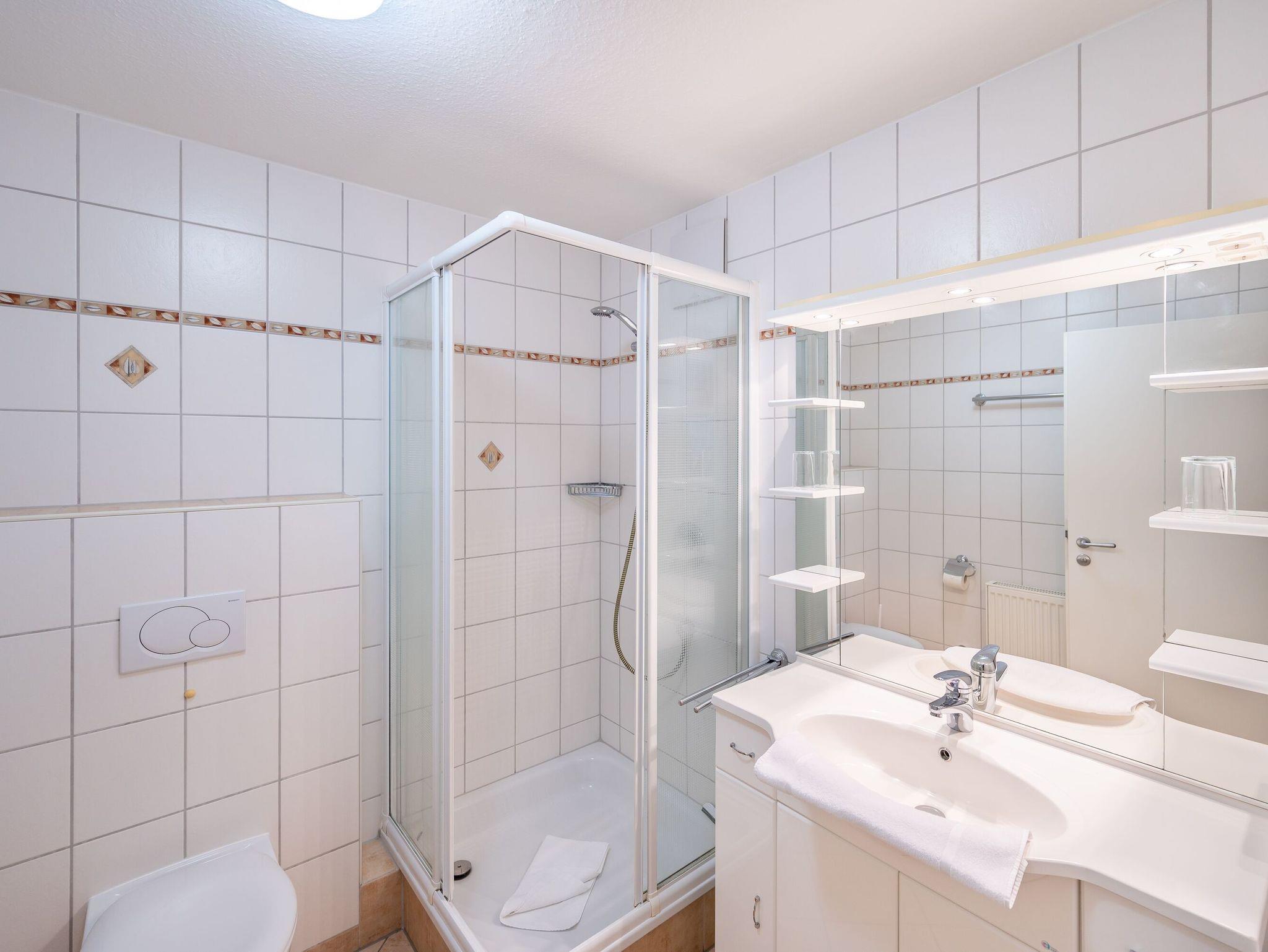 Im Schlafbereich steht ein komfortables Doppelbett und ein geräumiger Kleiderschrank bereit. Im hell erleuchteten Badezimmer befindet sich eine Dusche und ein WC.