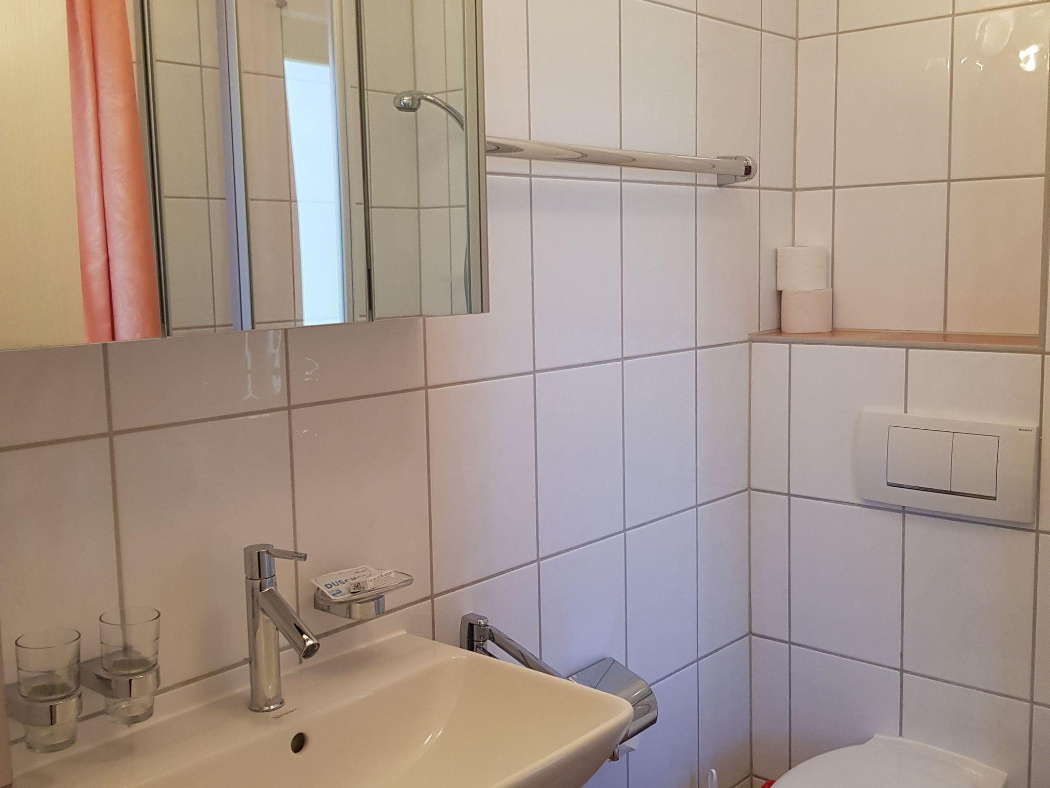 Münzwaschmaschine und -trockner stehen im Keller des Hauses zur Verfügung.