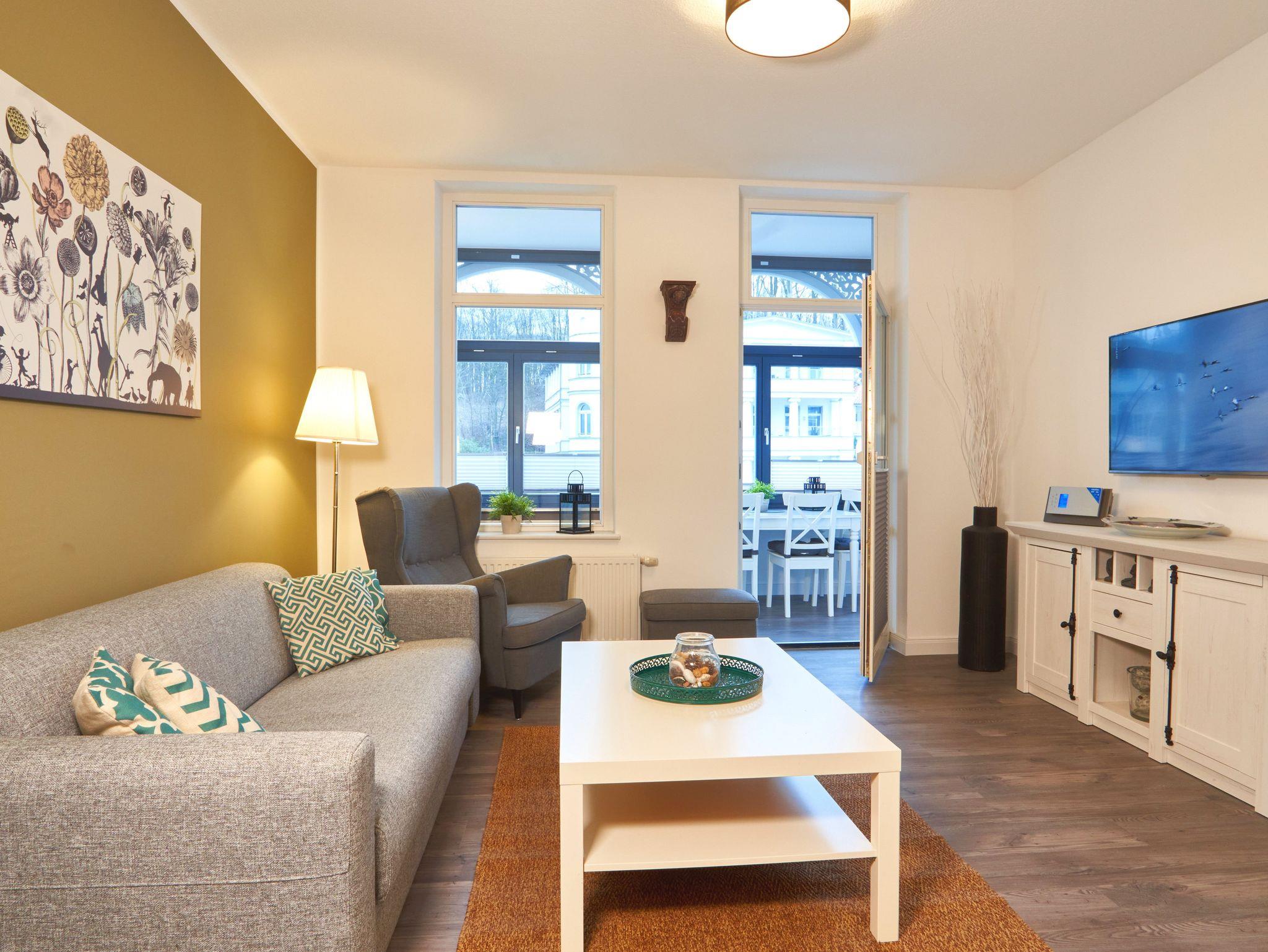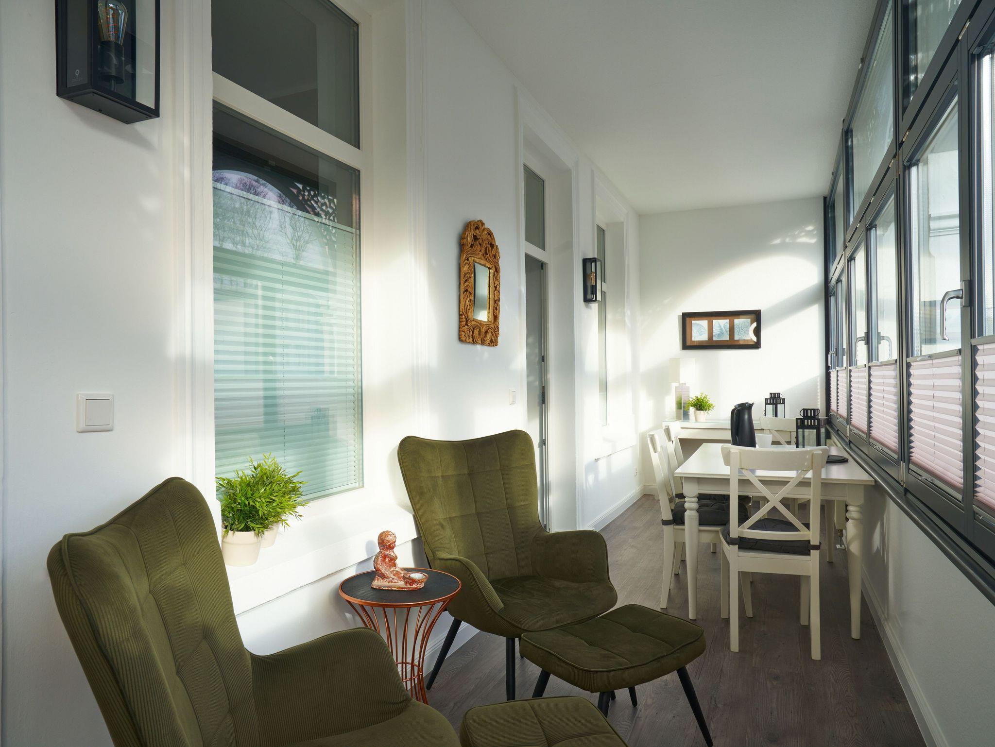 Modernes Appartement mit Wintergarten nahe Selliner Seebrücke und Strand, ideal für erholsamen Ostseeurlaub.