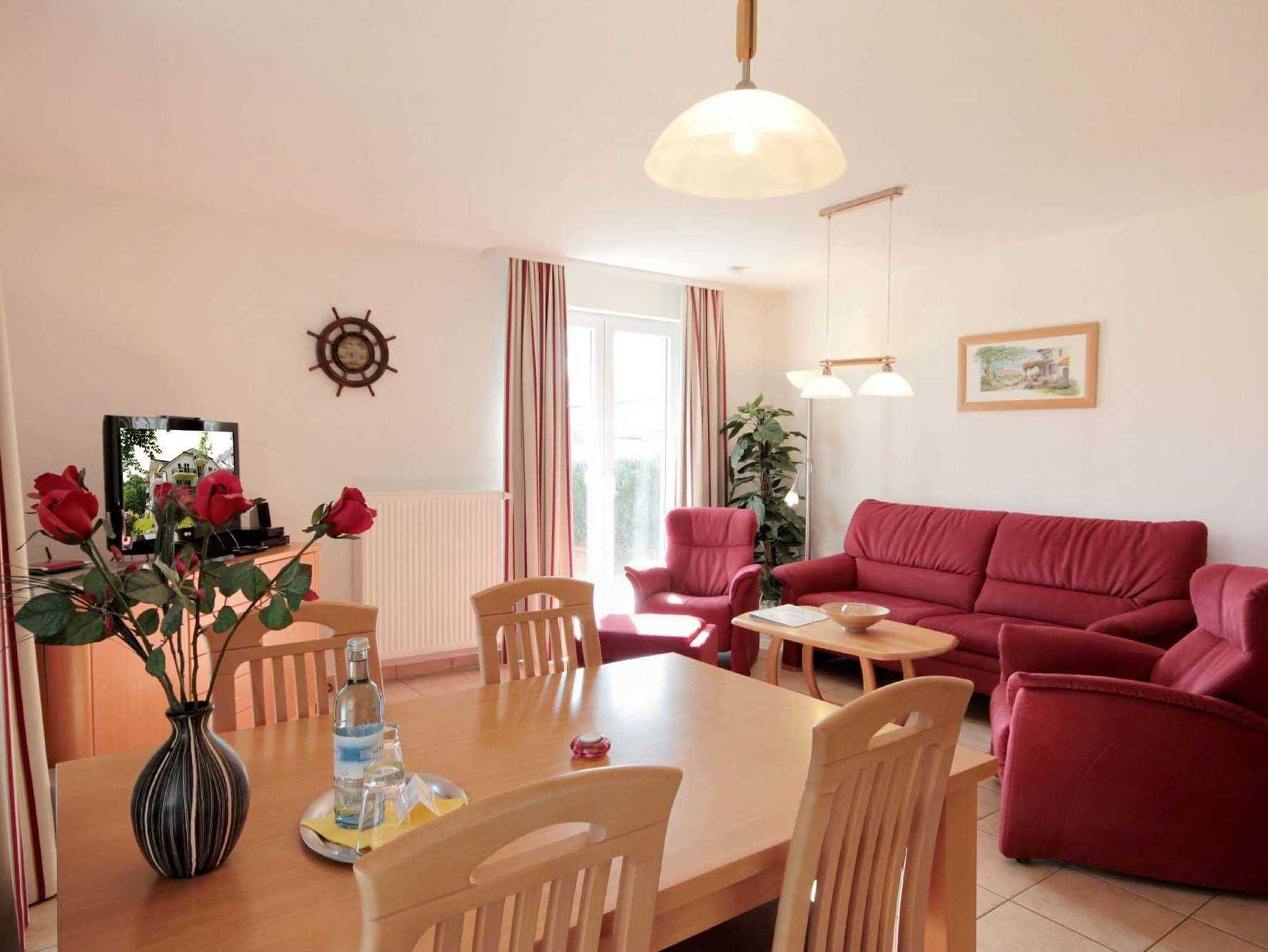 Ihr große freundliche 3 - Raum Ferienwohnung 57RB2 befindet sich im Erdgeschoss. Sie hat eine Größe von ca. 70 qm und ist für maximal 6 Personen eingerichtet. Die Wohnung verfügt über einen Wohnraum mit Schlafsofa, zwei Schlafzimmer, eine offene Küche und ein Badezimmer. Von einem Schlafraum, sowie vom Wohnraum haben Sie Zugang zu jeweils einer Ost- und einer Südterrasse mit großem umzäunten Gartenbereich. Das Haus ist mit einem Aufzug ausgestattet, von dem aus Sie bequem die Wohnung erreichen können. Neben dem behaglichen Wohnraum mit LCD - Fernseher, DVD - Heimkino - System und Schlafcouch, gibt es zwei weitere Schlafräume mit je zwei Betten. Die Küche ist komplett ausgestattet mit Geschirrspüler, Backofen, Kühlschrank, extra Sitzgelegenheit und diversen Kleingeräten. Im Badezimmer finden Sie eine Dusche, Badewanne, Waschtisch und eine Waschmaschine. Ab sofort können unsere Gäste einen kostenfreien Internetzugang nutzen.