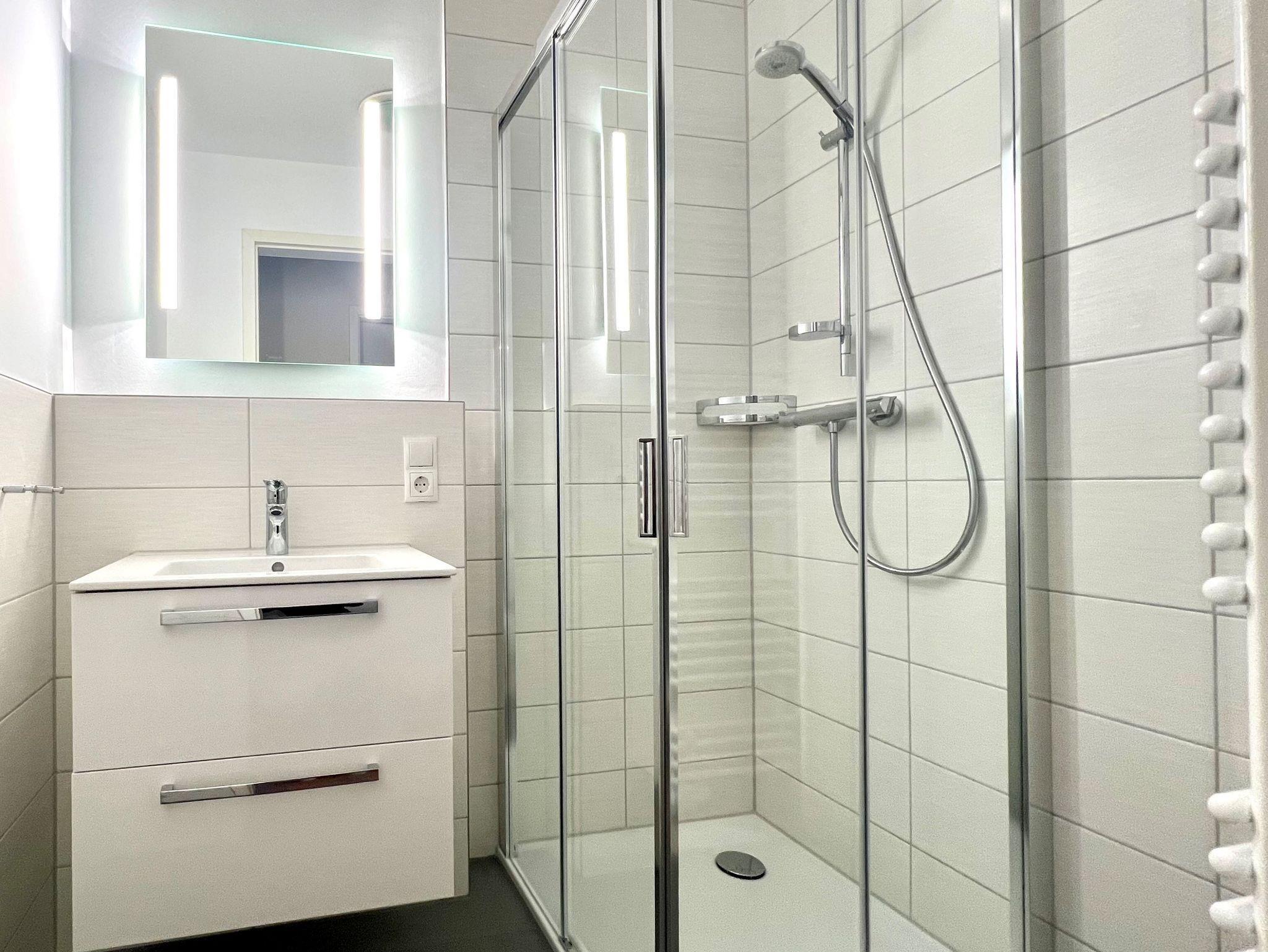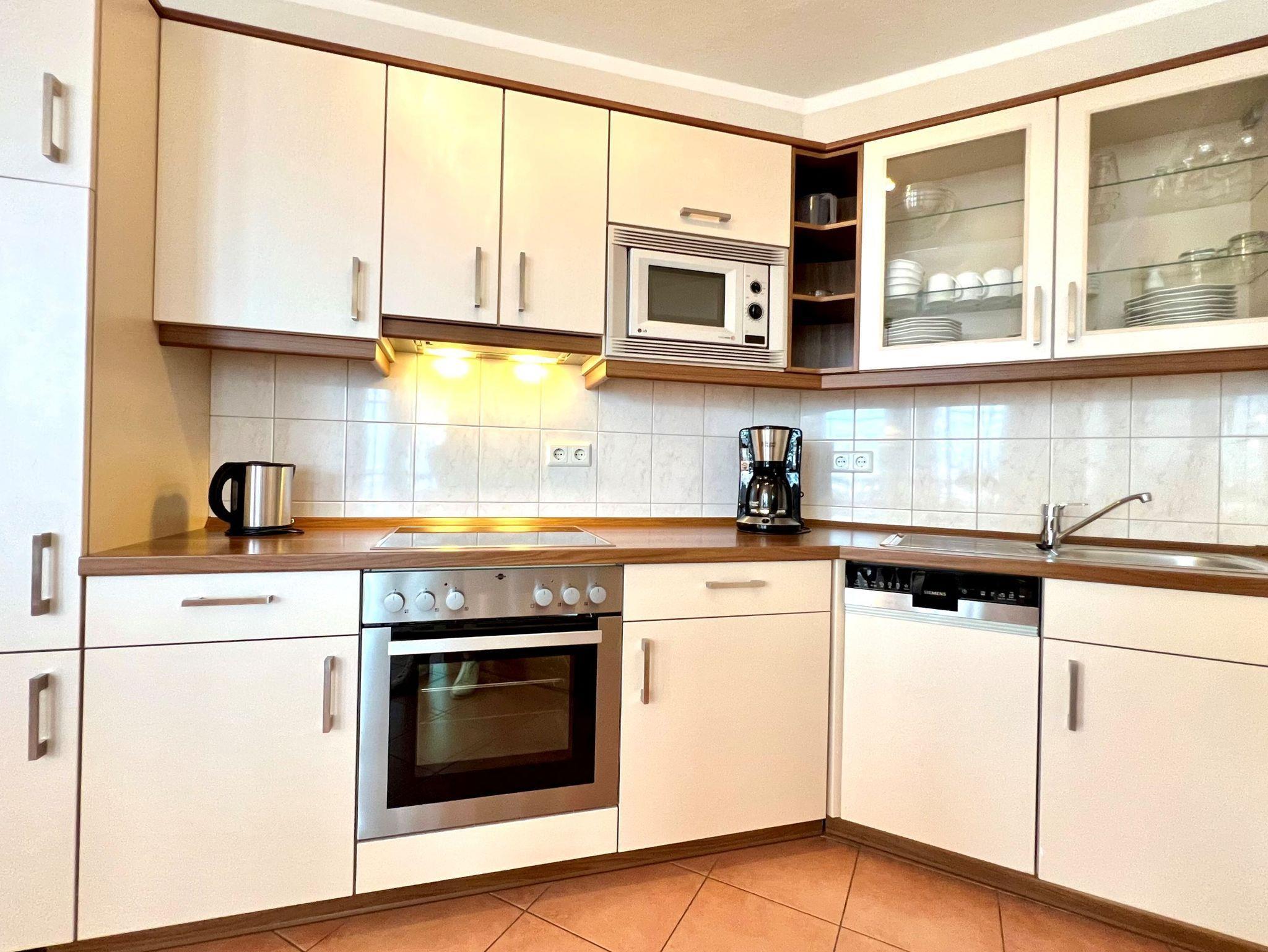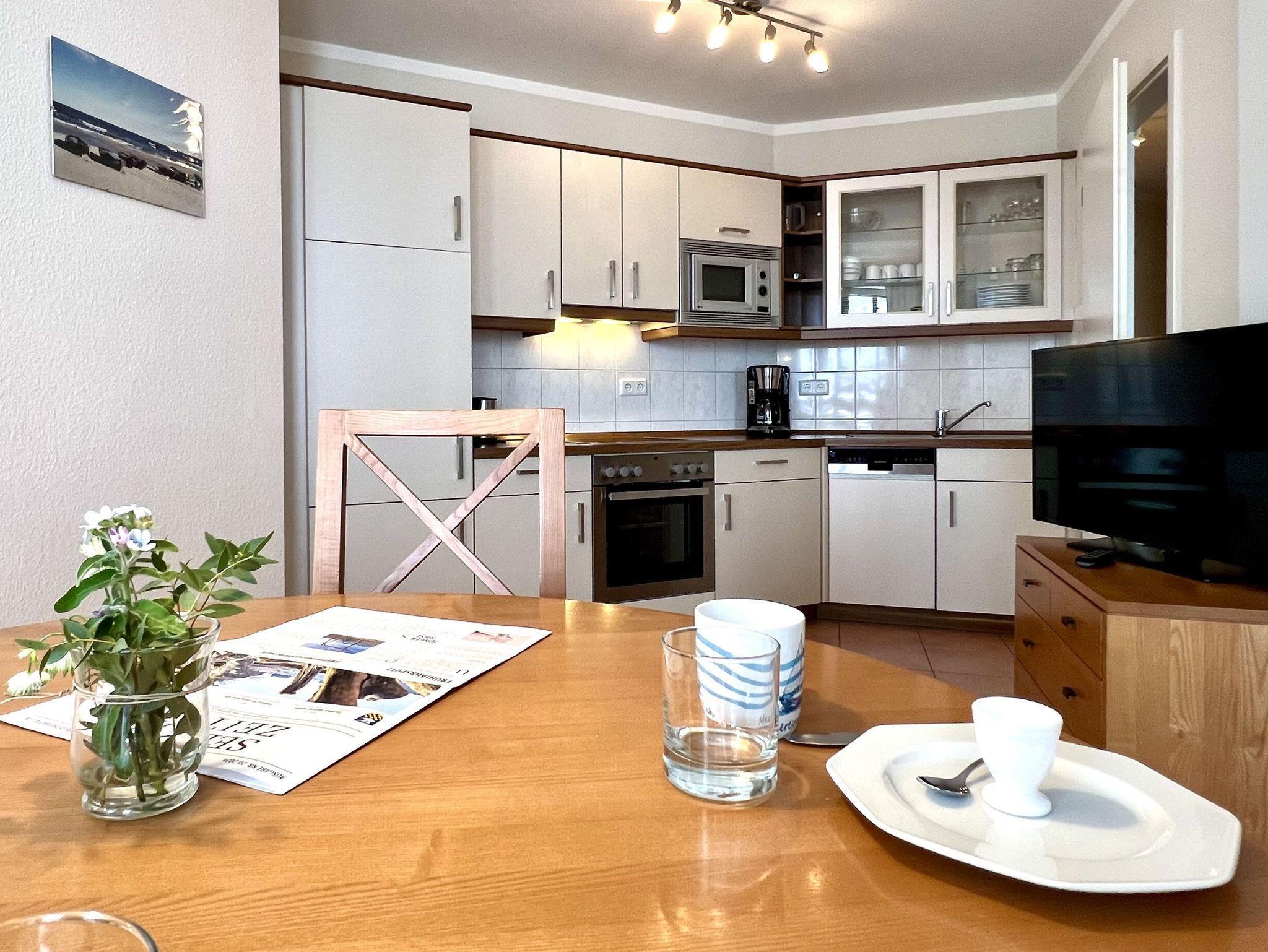 Die Ferienwohnung verfügt über kostenfreies WLAN und die Erstausstattung an Bettwäsche ist ebenfalls inklusive. Das Schlafzimmer ist mit einem Doppelbett ausgestattet und verfügt über Verdunklungsmöglichkeiten. Im Wohnzimmer befindet sich zudem eine Doppelschlafcouch. Ein Bad mit Dusche und ein separates WC stehen den Gästen zur Verfügung. Die offene Küche ist voll ausgestattet mit Backofen, Mikrowelle, Geschirrspüler, Kaffeemaschine und Toaster. Ein Fernseher mit 3 Sky-Sendern rundet die Ausstattung ab.