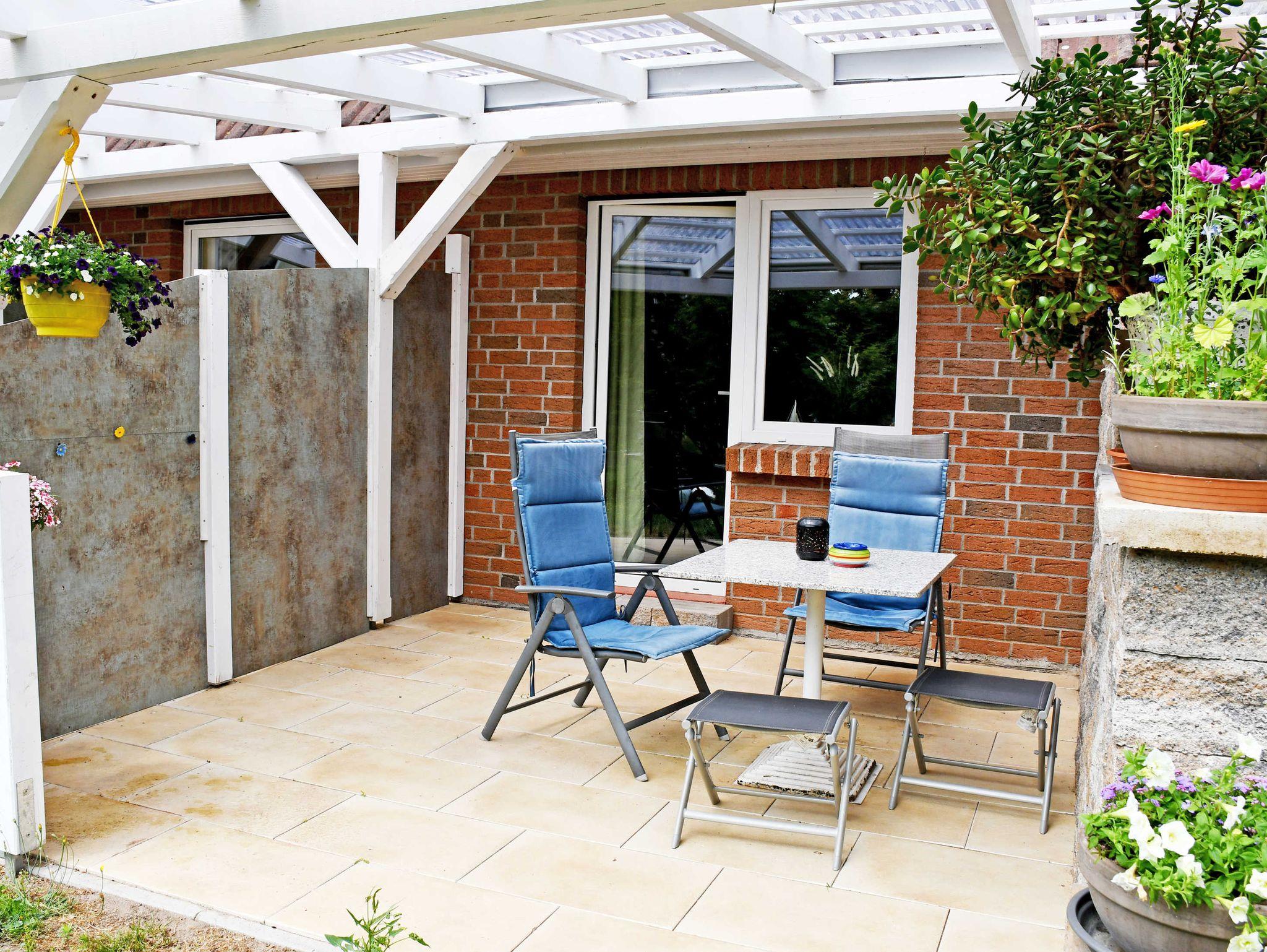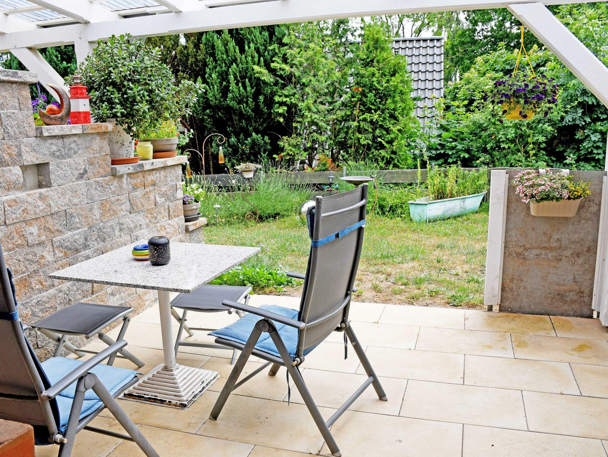 Im Garten können Gäste dieser Ferienwohnung eine Terrasse mit Gartenmöbeln und Grillmöglichkeit nutzen.