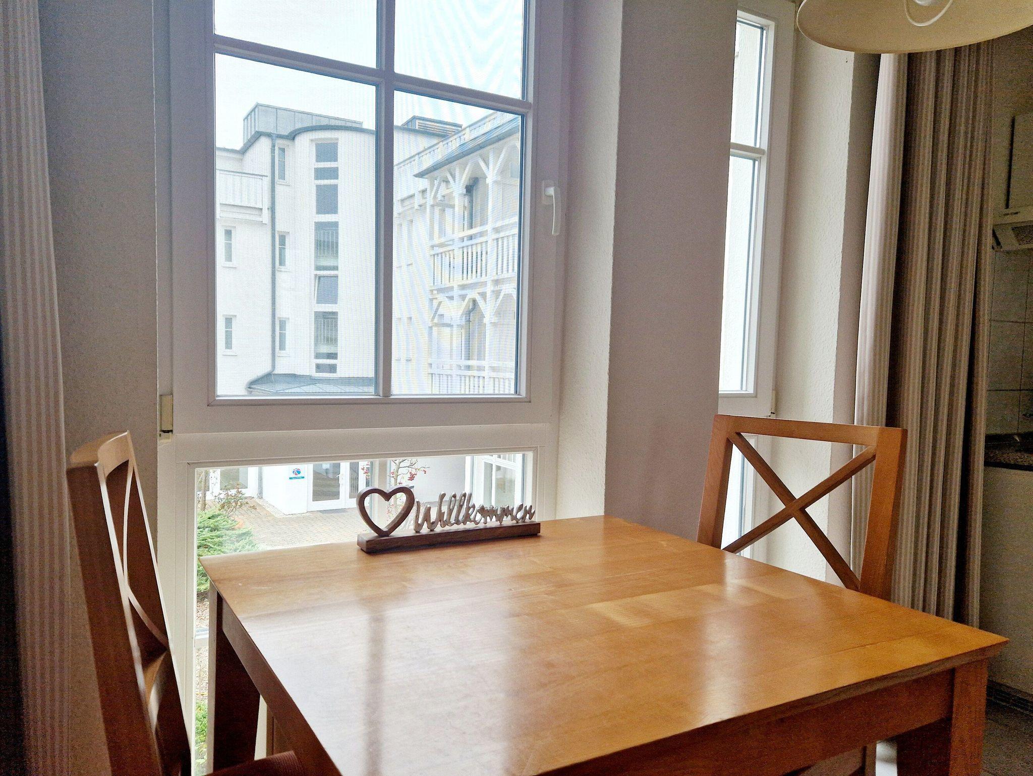 Gemütliche Ferienwohnung mit Balkon und kostenfreiem Schwimmbadzugang in Sellin, nahe Strand und Einkaufsmöglichkeiten.