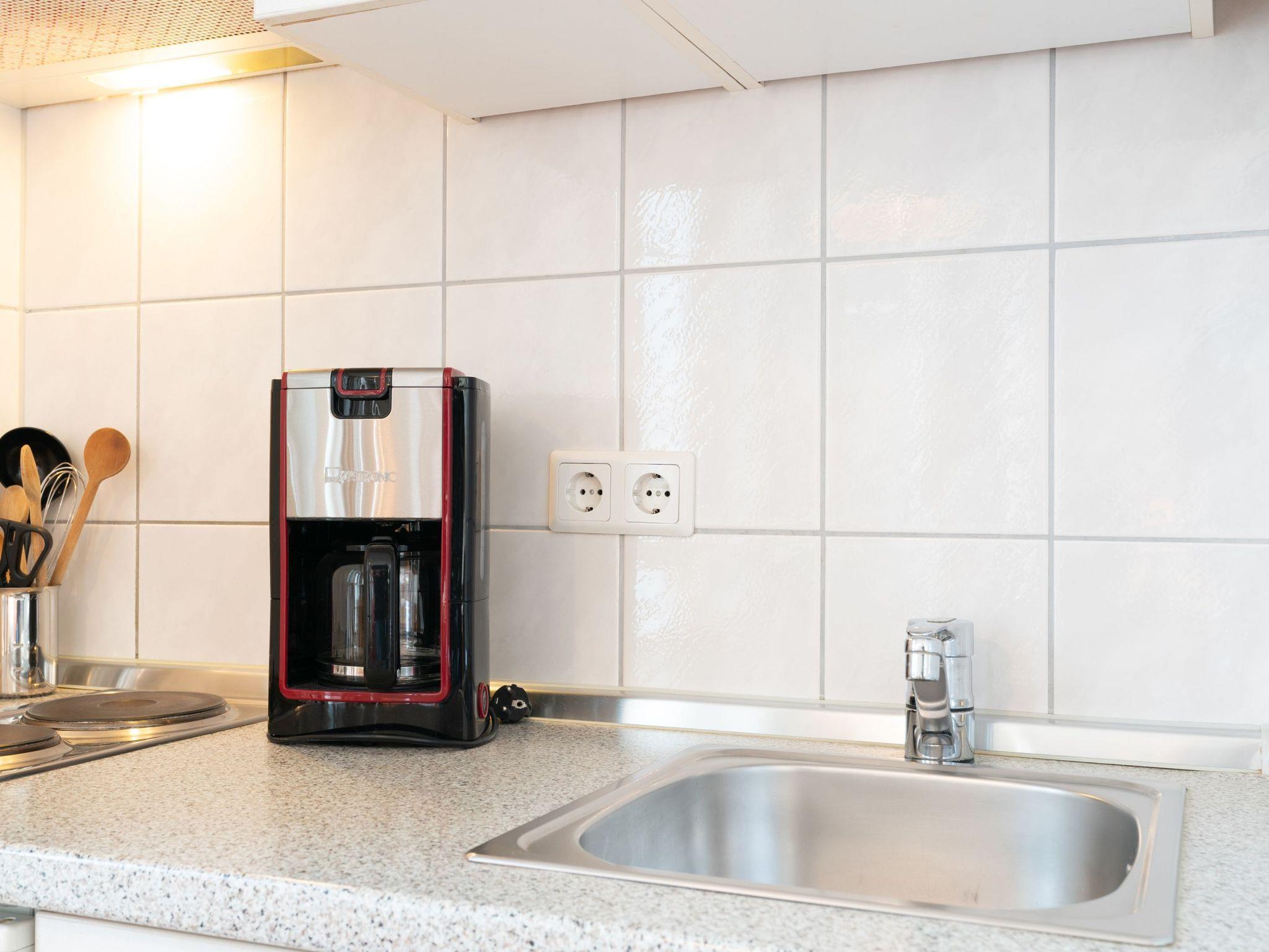 Die Ausstattung umfasst einen Flachbild-TV, eine Kaffeemaschine (Filter) und Bettwäsche, die im Preis inklusive ist. Außerdem gibt es einen Balkon, eine kleine Küche (Pantry/Mini) und einen Fahrradkeller. Für eine entspannte Unterhaltung steht ein WLAN-Anschluss sowie ein TV mit Sky-Sendern zur Verfügung. Für Kaffeeliebhaber gibt es eine Pad-/Kapsel-Kaffeemaschine. Für einen angenehmen Start in den Tag kann ein Brötchenservice genutzt werden.