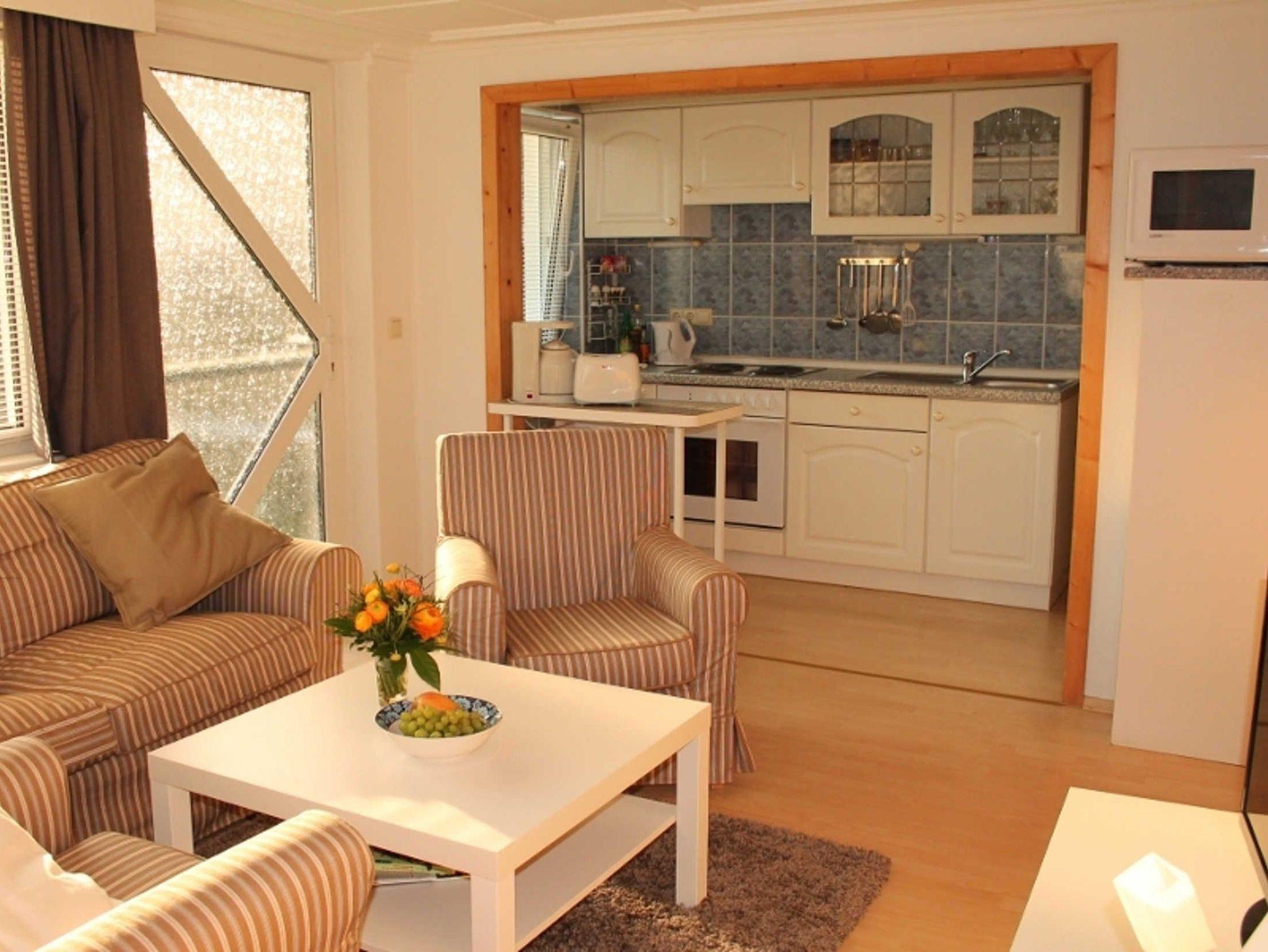 Der Wohnraum mit gemütlichen Sitzplätzen und Fernsehgerät mit Kabel/Sat Anschluss lädt zum Verweilen und Ausruhen ein.