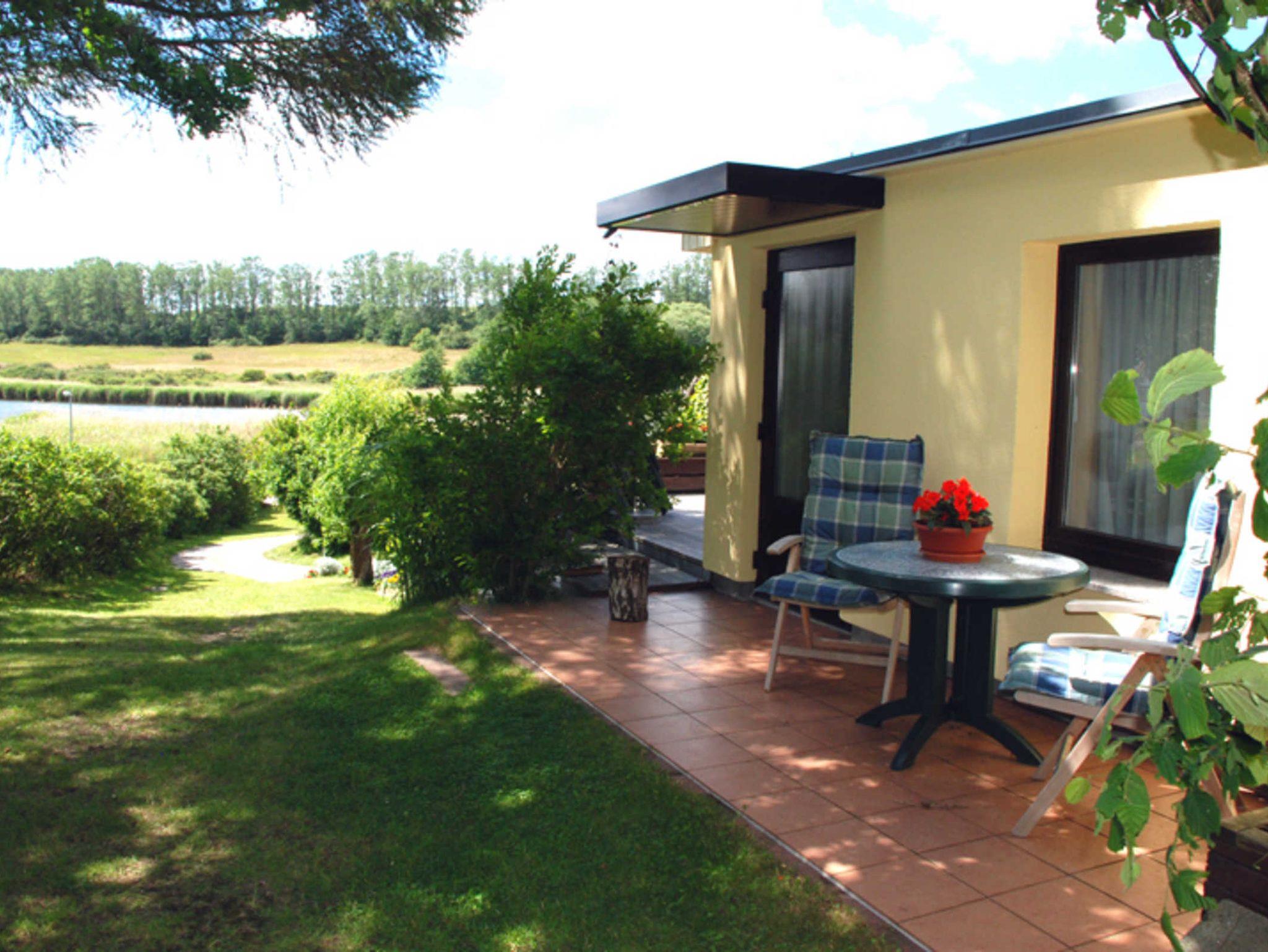 Zu jedem Ferienappartement gehört eine Terrasse mit Gartenmöbeln bzw. eine Sitzgelegenheit im Garten. Es besteht die Möglichkeit zum Grillen nach Absprache mit den Gastgebern (Reetdach!). Am Objekt gibt es auch einen kleinen Bootssteg im Schilf, an dem gern auch kleine Boote oder Jollen anlegen können.