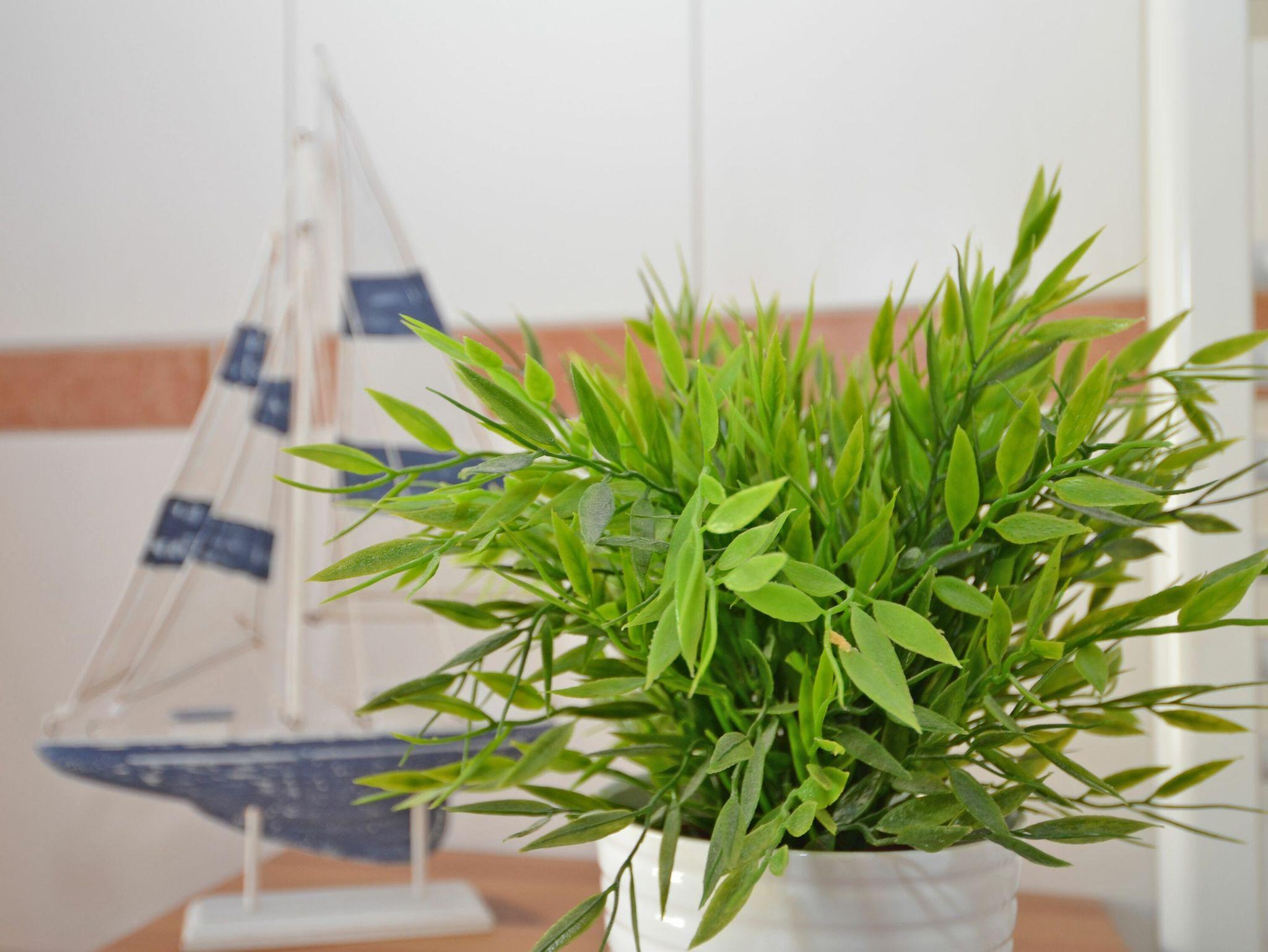 Die schöne 2-Zimmer Ferienwohnung ?Rügenglück? im Haus Möwe verfügt über ca. 50 m² Wohnfläche und befindet sich in der 1. Etage, welche Sie bequem mit dem Fahrstuhl erreichen können. Sie besticht durch eine gut durchdachte Raumaufteilung und bietet Platz für max. 2 bis 3 Personen. Die Nichtraucherwohnung ist mit viel Liebe zum Detail eingerichtet. Sie verfügt über einen geräumigen Wohnraum mit einer bequemen Schlafcouch (Aufbettungsmöglichkeit für 3. Person, 1,60m x 2,00m), zwei Sesseln mit Couchtisch, einer Stehlampe, einem Highboard, einem Sideboard mit Smart-TV, einem DAB-Radio, einer Stereoanlage mit CD-Player, WLAN?Anschluss und einem DVD-Player. Eine Küchenzeile ist im Wohnbereich harmonisch integriert. Die Küchenzeile ist mit einer Spülmaschine, einer Mikrowelle, einem Kühlschrank, einem Gefrierfach, einem 4 Zonen-Cerankochfeld, einem Backofen, einem Mixer, einem Toaster, einem Wasserkocher, einer Kaffeemaschine und diversem Kleininventar ausgestattet. Ein angrenzender Esstisch komplettiert den Bereich. Auf dem bestuhlten Balkon, welchen Sie vom Wohnbereich erreichen, mit Sonnenschirm und Südost-Ausrichtung können Sie beim gemütlichen Frühstück die Morgensonne und einem kleinen Blick zum Selliner See genießen. Im Schlafzimmer garantiert ein großes Doppelbett in Komforthöhe (1,80 m x 2,00 m), verstellbaren Lattenrosten, Nachttischablagen mit Beleuchtung und einer Kleiderablage für guten Schlaf. In einem großen Kleiderschrank können Sie Ihre Garderobe problemlos verstauen. Koffer u.a. können in einem Abstellraum neben dem geräumigen Duschbad abgestellt werden. Hier finden Sie unteranderem auch ein Bügelbrett, ein Bügeleisen, einen Wäscheständer mit Klammern sowie Reinigungsutensilien. Das Tageslicht-Bad verfügt über eine Fußboden- und Handtuchheizung, einem WC, einem Waschplatz, einer Dusche mit flachem Einstieg, einem Fön sowie einem Kosmetikspiegel. Alle Fenster sind bodentief und mit Isolierverglasung versehen. Mit den Vorhängen können Sie die Räume verdunkeln. Im Gemeinschafskeller können Sie gegen einen Aufpreis die gemeinschaftliche Waschmaschine und den Trockner nutzen. Die Wertmarken können Sie auf Nachfrage während Ihres Urlaubes erwerben. Ein eigener PKW-Stellplatz Nr. 05 und ein Fahrradraum gehören zur Wohnung und befinden sich in der hauseigenen Tiefgarage (Einfahrtshöhe 2,10 m). Ein Haustier ist gegen einen Aufpreis ein gern gesehener Gast. Die Erstausstattung eines Wäschepaketes (komplette Bettwäsche, 1 Duschhandtuch, 1 kleines Handtuch) können Sie bis 14 Tage vor Anreise gegen einen Aufpreis dazu buchen oder durch eigene ergänzen. Ab 2 gebuchten Paketen erhalten Sie einmalig 1 Geschirrhandtuch und 1 Duschvorleger hinzu.