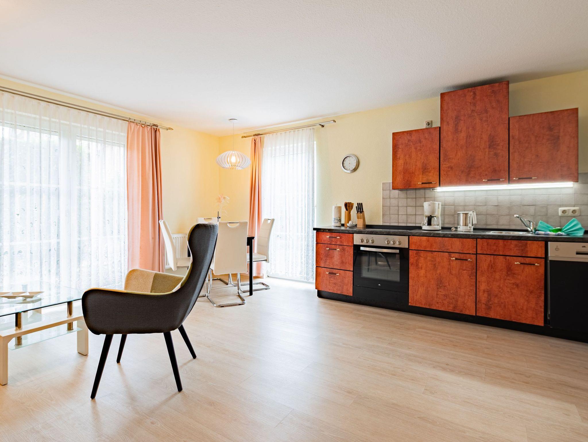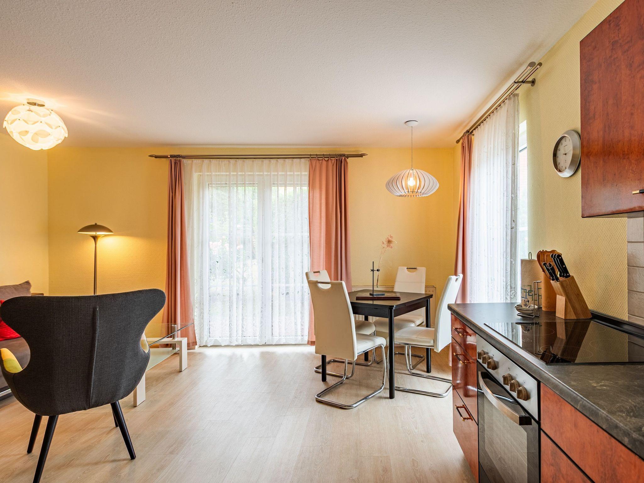 Ferienwohnung Kiebitz in Sellin auf Rügen bietet stilvolle Entspannung mit eigener Terrasse und Gemeinschaftssauna, nahe Ostseestrand.