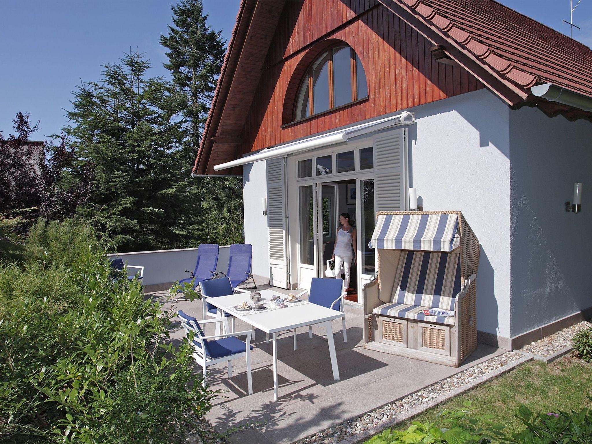 Die beheizbaren Fußböden sind mit Shivakashi-Granit oder Parkett belegt. Im Eingangsbereich stehen Ihnen ein Hauswirtschaftsraum mit Waschmaschine und Trockner und ein Gästebad mit Dusche/WC zur Verfügung. Von der Eingangsdiele aus gelangen Sie einerseits in das stilvolle Arbeitszimmer mit einem Schreibtisch mit Internet-W-LAN-Anschluss und einer eleganten Couch, die auch zum Schlafen geeignet ist. Andererseits gibt es vom Eingangsbereich auch den Zugang zum wunderschönen lichtdurchfluteten Wohnraum über 2 Ebenen, der ein ganz besonderes Raumerlebnis vermittelt. Hier befindet sich auch der Essbereich mit dem Zugang zum Balkon zur Abendsonne und mit der offenen Küche, die harmonisch in den Wohnbereich integriert wurde. Diese Küche ist mit modernsten Geräten ausgestattet, wie zum Beispiel einem Induktionskochfeld mit Dunstabzugshaube mit Außenentlüftung, einem Backofen, einer Mikrowelle, einer Geschirrspülmaschine und diversem Kleininventar, das die vorzügliche Ausstattung vervollständigt und auch die Ansprüche ambitionierter Hobbyköche erfüllt. Der großzügige Wohnbereich mit der wohnlichen Sitzgruppe und einem modernen Flachbild-TV verfügt auch über den Zugang zur großen Südterrasse. Diese bietet genügend Platz zum Entspannen auf formschönen, bequemen Gartenmöbeln oder im Strandkorb und erlaubt einen schönen Blick in den gartenarchitektonisch angelegten Außenbereich. Hier befindet sich auch die sonnige Liegewiese.