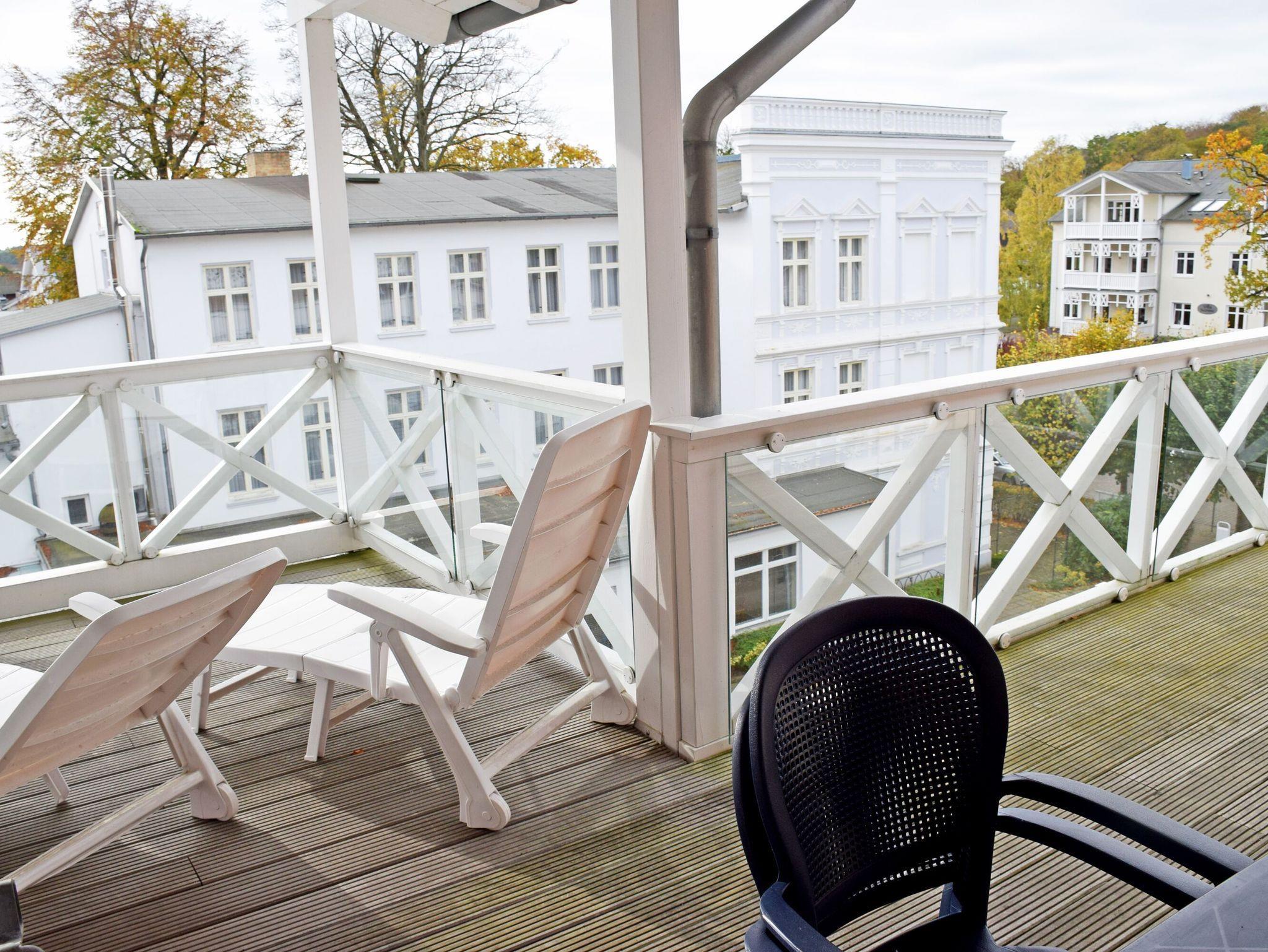 Die Ferienwohnung Villa Sonneck in Sellin bietet komfortablen Urlaub mit Balkon, Sauna und Nähe zum Strand.