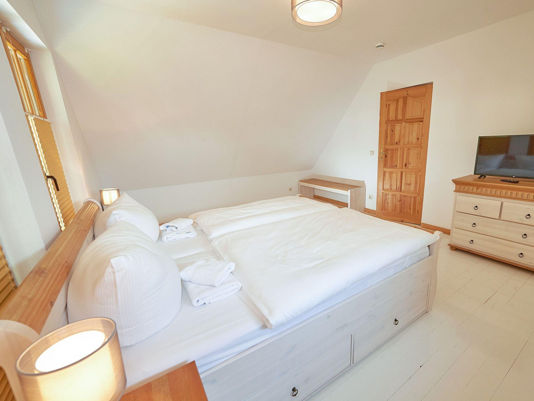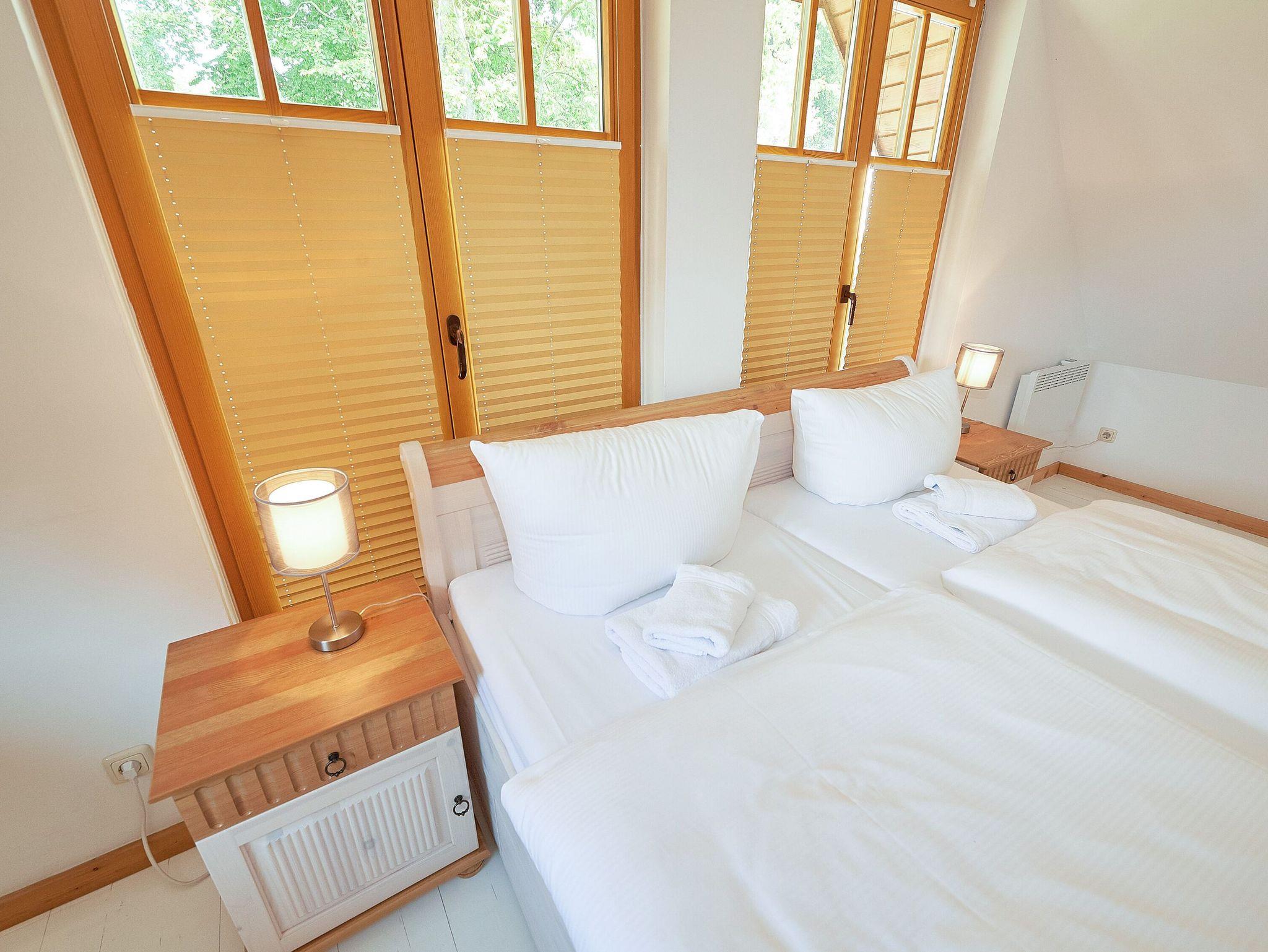 Die zwei Schlafzimmer befinden sich im Obergeschoss. Das erste Schlafzimmer ist mit einem herrlich bequemen Doppelbett und zusätzlichen Flachbild-TV ausgestattet, das zweite mit zwei Einzelbetten sowie genügend Stauraum für Ihre Garderobe.