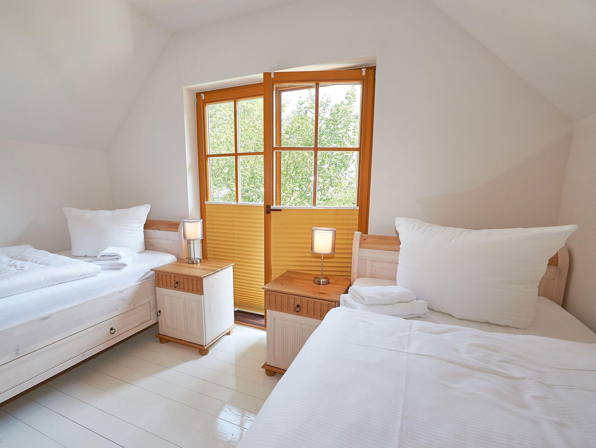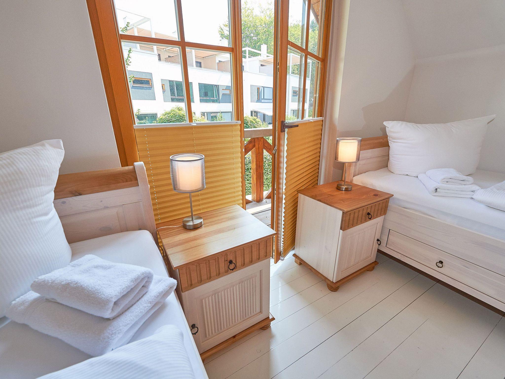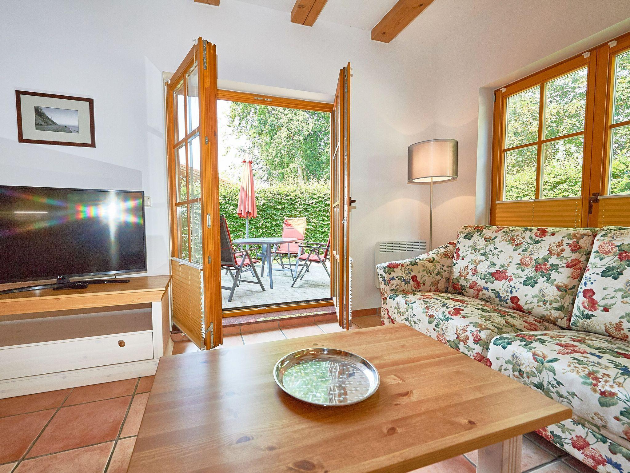 Die Haushälfte 4 im Strandschlösschen Sellin bietet gemütliches Wohnen mit Kamin, WLAN und Terrasse nur 300 m vom Strand entfernt.