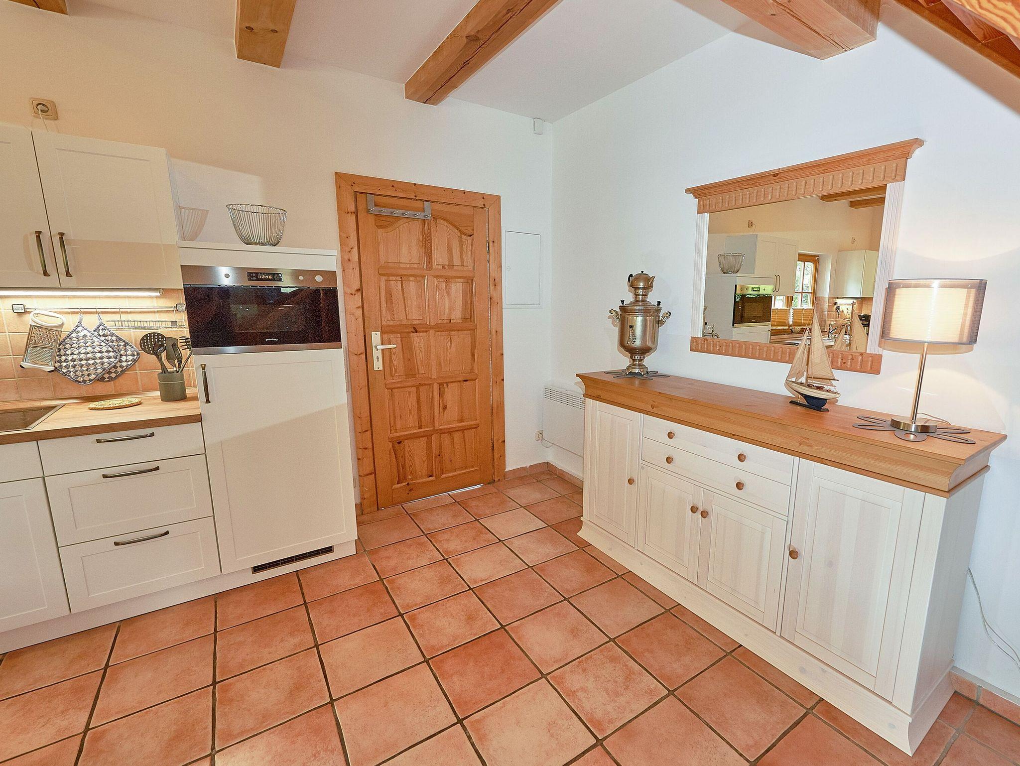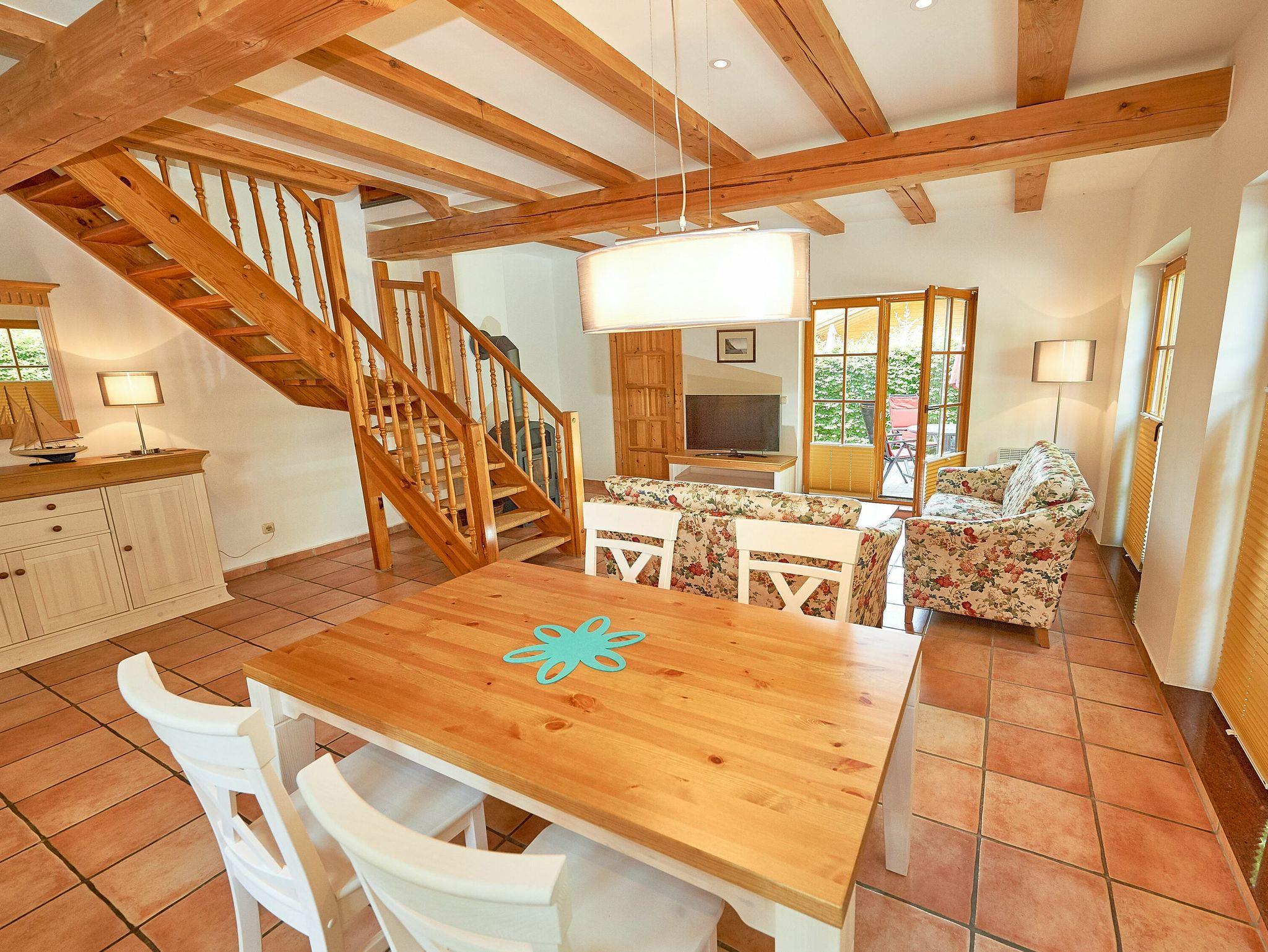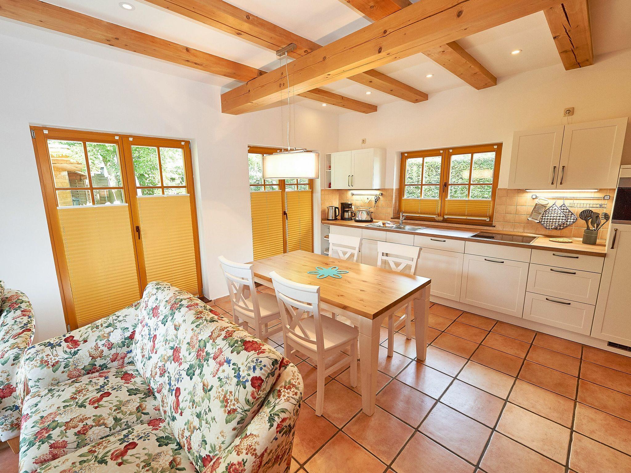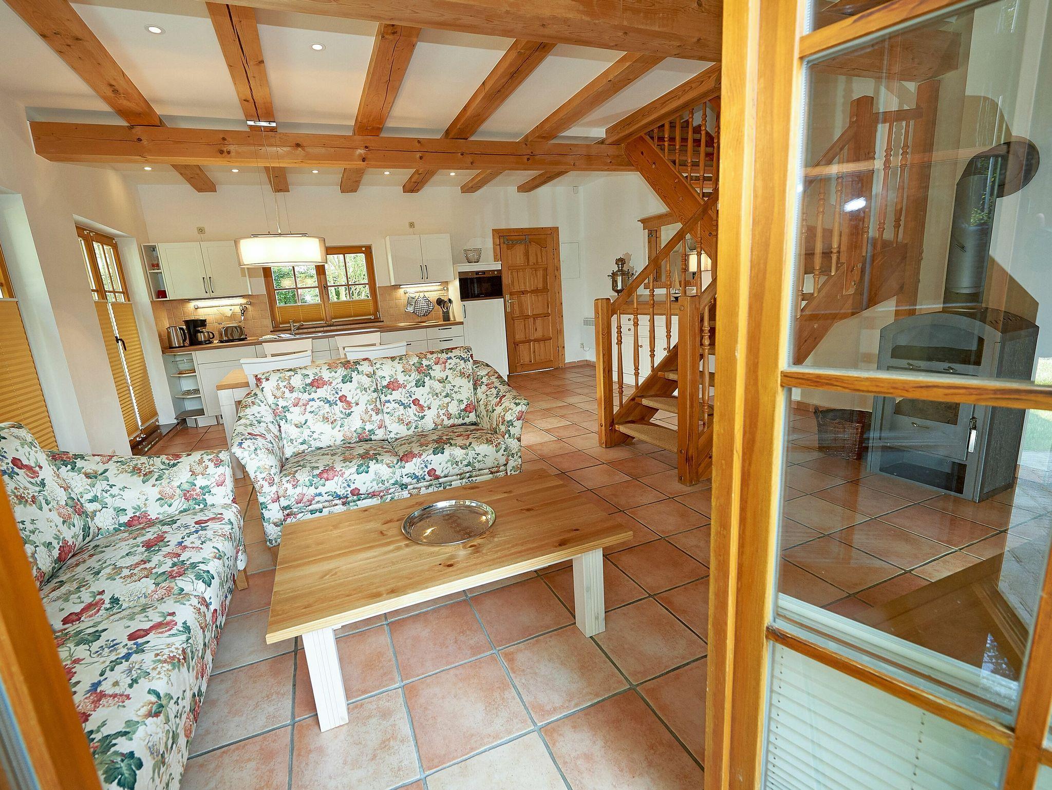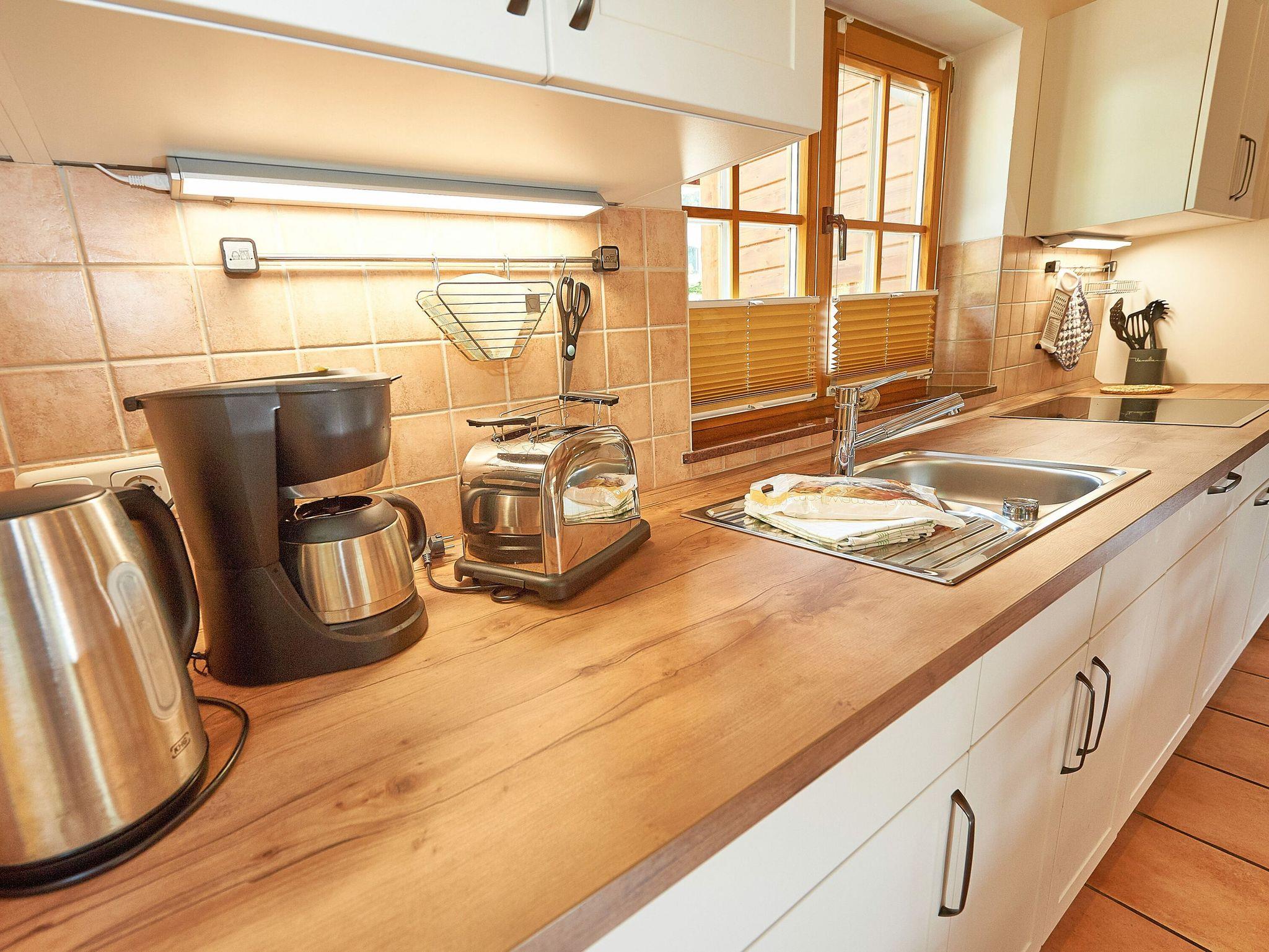 Zwei Sofas vor dem großen Flachbild-TV, kostenfreies W-LAN und der Kaminofen ermöglichen angenehme Abende, auch wenn die Sonne mal nicht vom Himmel lacht. Der große Esstisch ist für 4 Personen geeignet. Die harmonisch im Wohnbereich integrierte Küchenzeile ist ausgestattet mit einem 4-Zonen-Cerankochfeld, einem Kühlschrank mit Gefriermöglichkeit, einer Spülmaschine, einer Mikrowelle mit Grill, Kaffeemaschine, Toaster, Wasserkocher und diversem Kleininventar, das die Ausstattung komplettiert. Auch Ihre kostenfrei nutzbare Waschmaschine finden Sie hier.