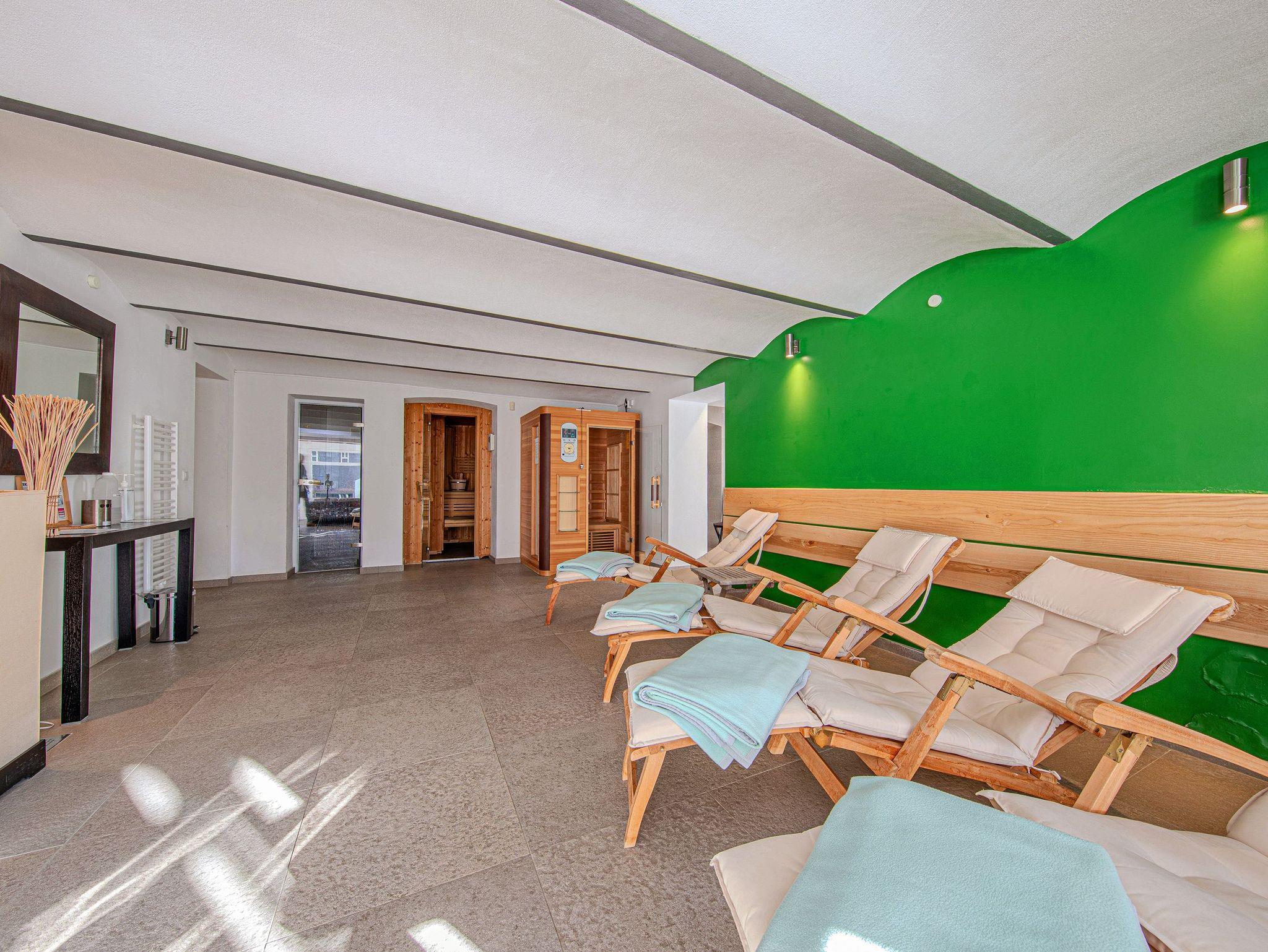 Neben Ihrem reservierten PKW - Stellplatz steht Ihnen im Erdgeschoss des Hauses ein großer und kostenfrei nutzbarer Wellnesbereich zur Verfügung. Neben einer Sauna, einem Dampfbad und einer Wärmekabine, steht hier auch ein Ruheraum mit einigen Liegen zur Verfügung. Zusätzlich dazu ist im angelegten Außenbereich des Hauses saisonal (in den Sommermonaten) ein großer Pool kostenfrei nutzbar.