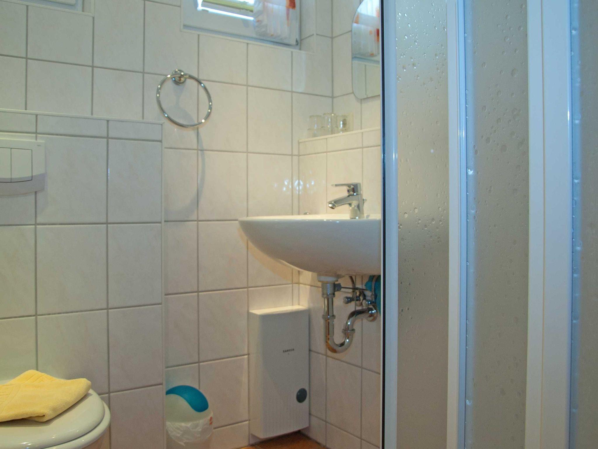 • Bad mit Dusche/WC und Waschbecken, Handtuchheizkörper