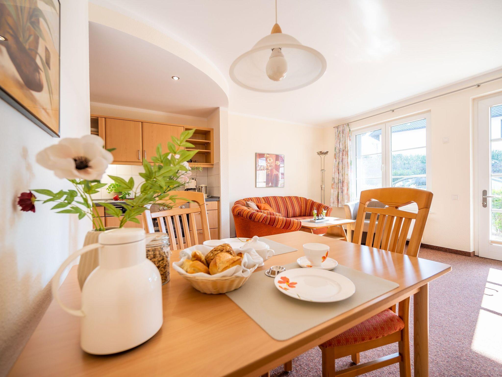 Die freundlich eingerichtete Wohnung 11 in der Ferienanlage Margaretha ist ca. 44 m² groß und für bis zu 2 Personen ausgelegt.