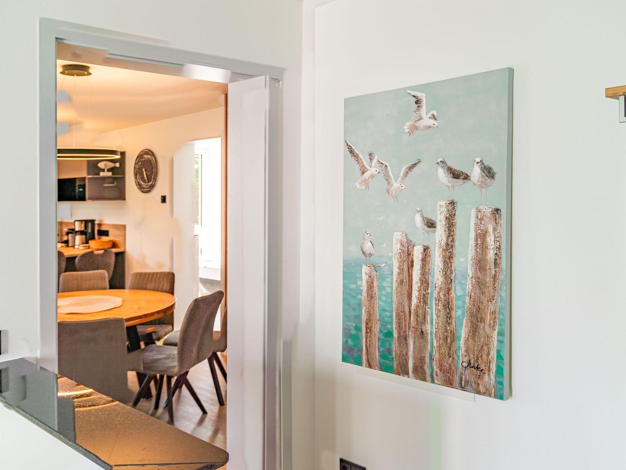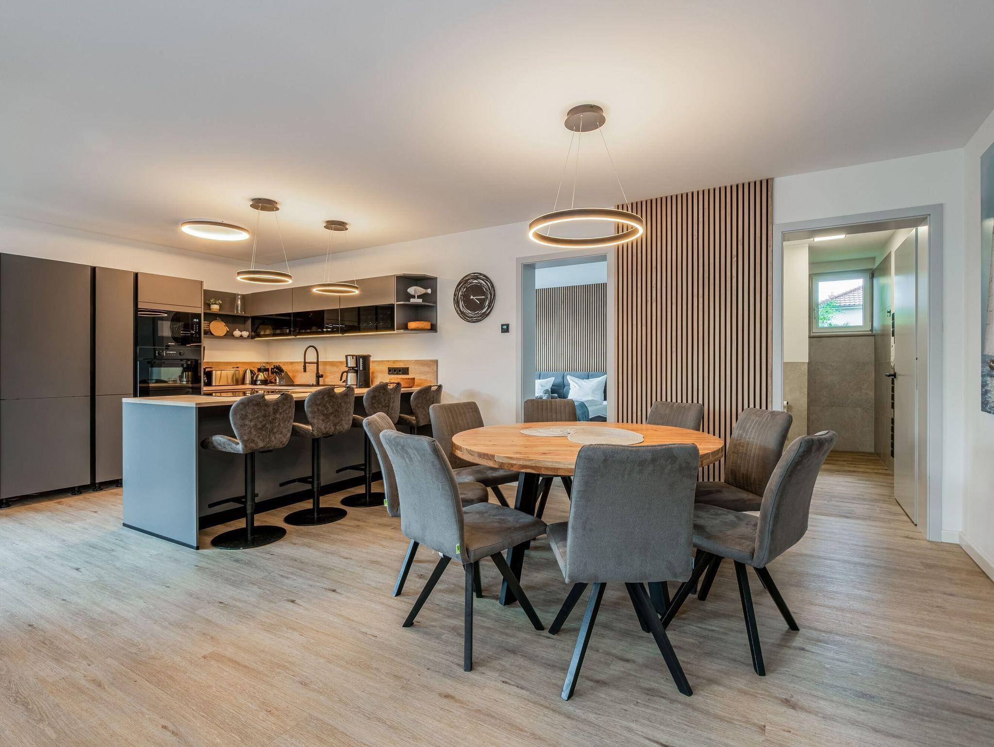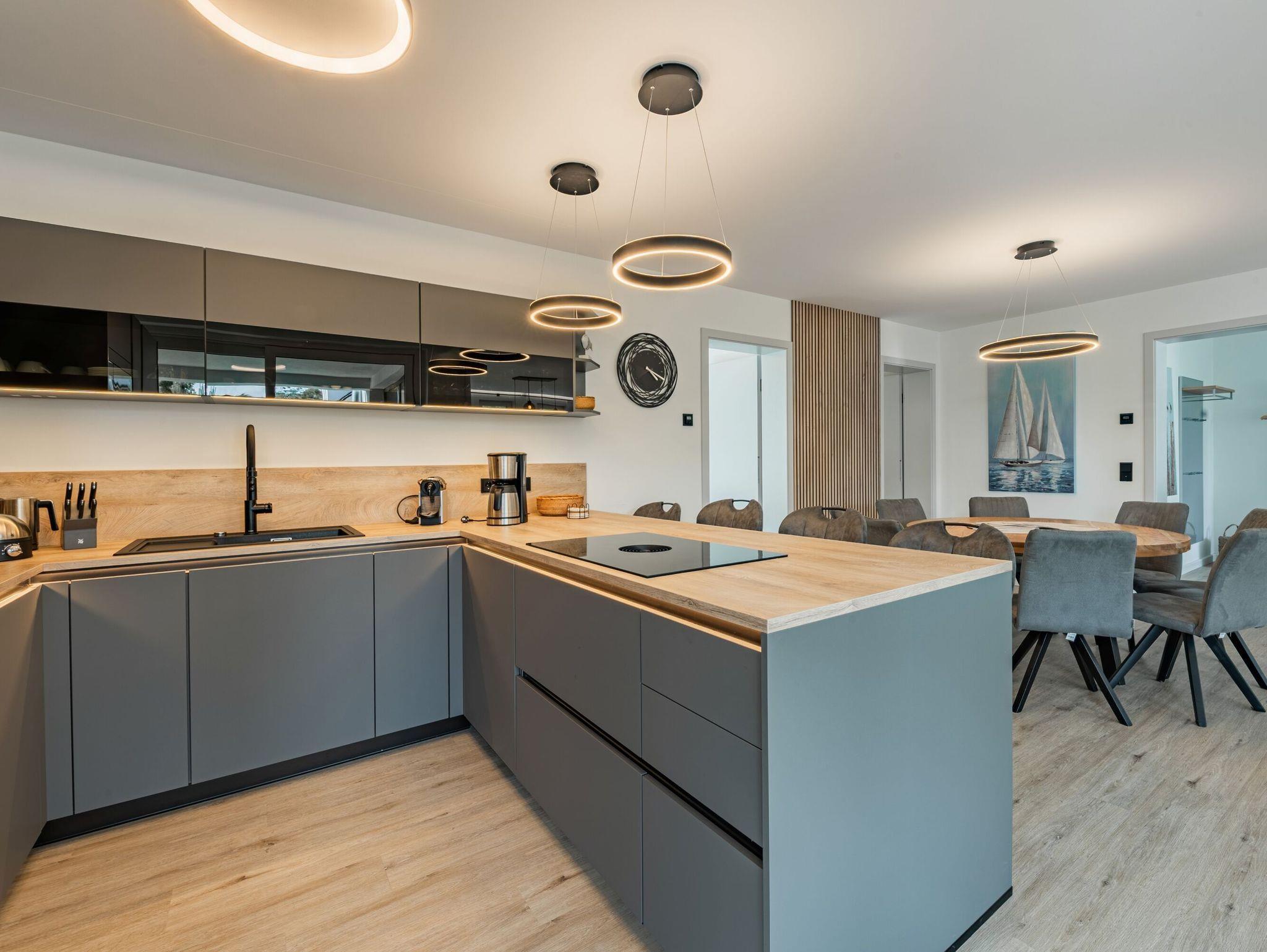 Ein behaglicher Kaminofen sorgt für gemütliche Abende, während Smart-TV und kostenfreies WLAN Unterhaltung bieten. Die voll ausgestattete Küche ? inklusive Geschirrspüler, Mikrowelle, Toaster, Filter-Kaffeemaschine und Pad-/Kapselmaschine ? macht die Selbstversorgung einfach. Zur Entspannung lädt eine private Sauna ein, und für zusätzlichen Komfort stehen Waschmaschine und Trockner bereit. Dank eigenständigem Check-in sind flexible Anreisen möglich.