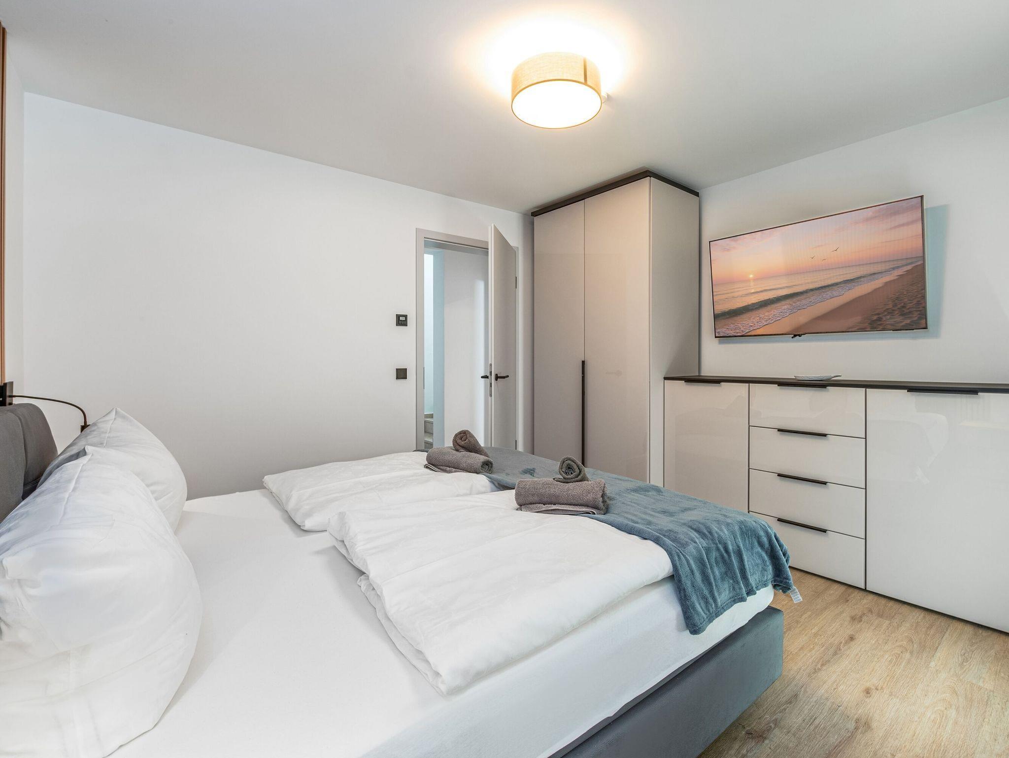 Erleben Sie unvergessliche Tage in der stilvollen Ferienwohnung 1 der Villa ?Stella Maris? in Sellin! Mit großzügigen 173 m² bietet sie Platz für bis zu 8 Personen ? perfekt für Familien oder Gruppen, die höchsten Komfort suchen. Die Wohnung verfügt über 4 geschmackvoll eingerichtete Schlafzimmer, von denen jedes mit einem eigenen Fernseher, einem modernen Badezimmer mit Dusche und einem Sonnenschutz ausgestattet ist. Ein Schlafzimmer befindet sich im Erdgeschoss ? ideal für Gäste, die kurze Wege bevorzugen ? während sich die drei weiteren Schlafzimmer sowie die private Sauna im ruhig gelegenen Untergeschoss befinden. Dies garantiert jedem Gast maximale Privatsphäre und höchsten Komfort.