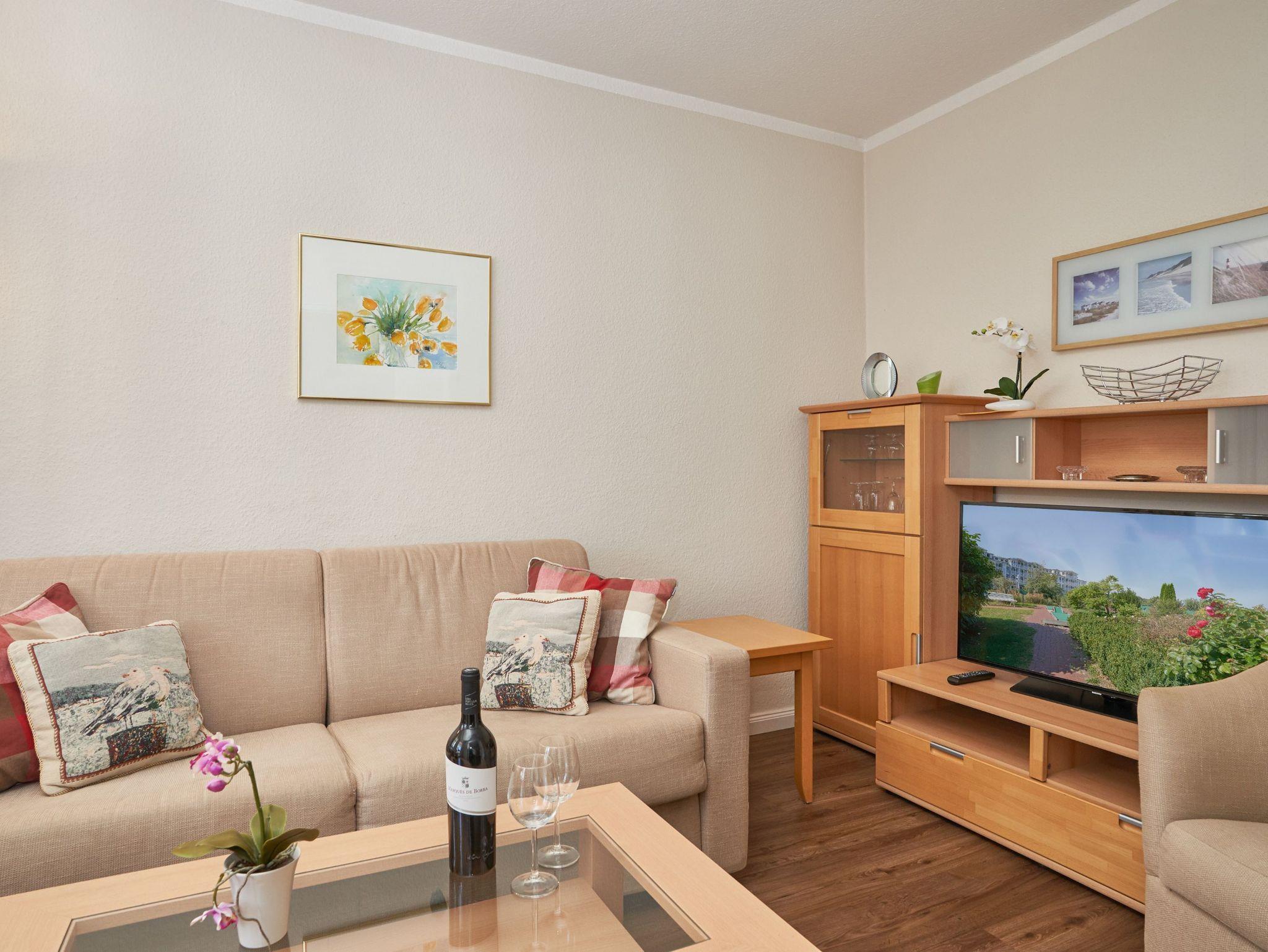 Moderne Ferienwohnung im Seepark Sellin mit Balkon, WLAN, Sky-TV und kostenfreiem Zugang zum AHOI Schwimmbad.
