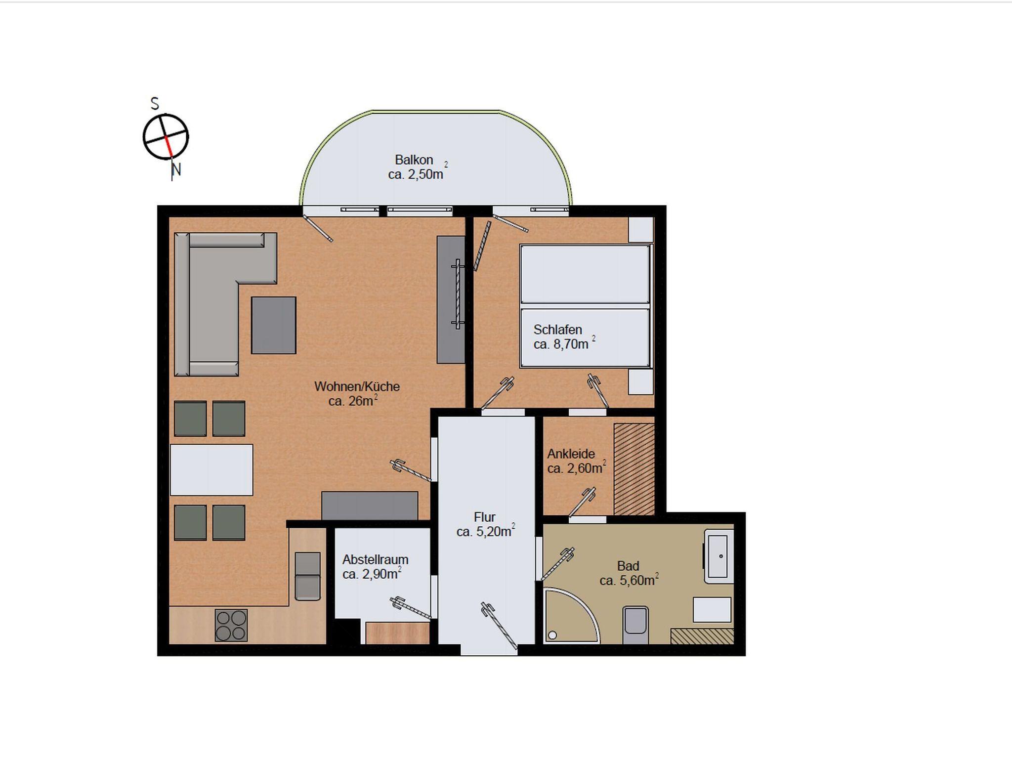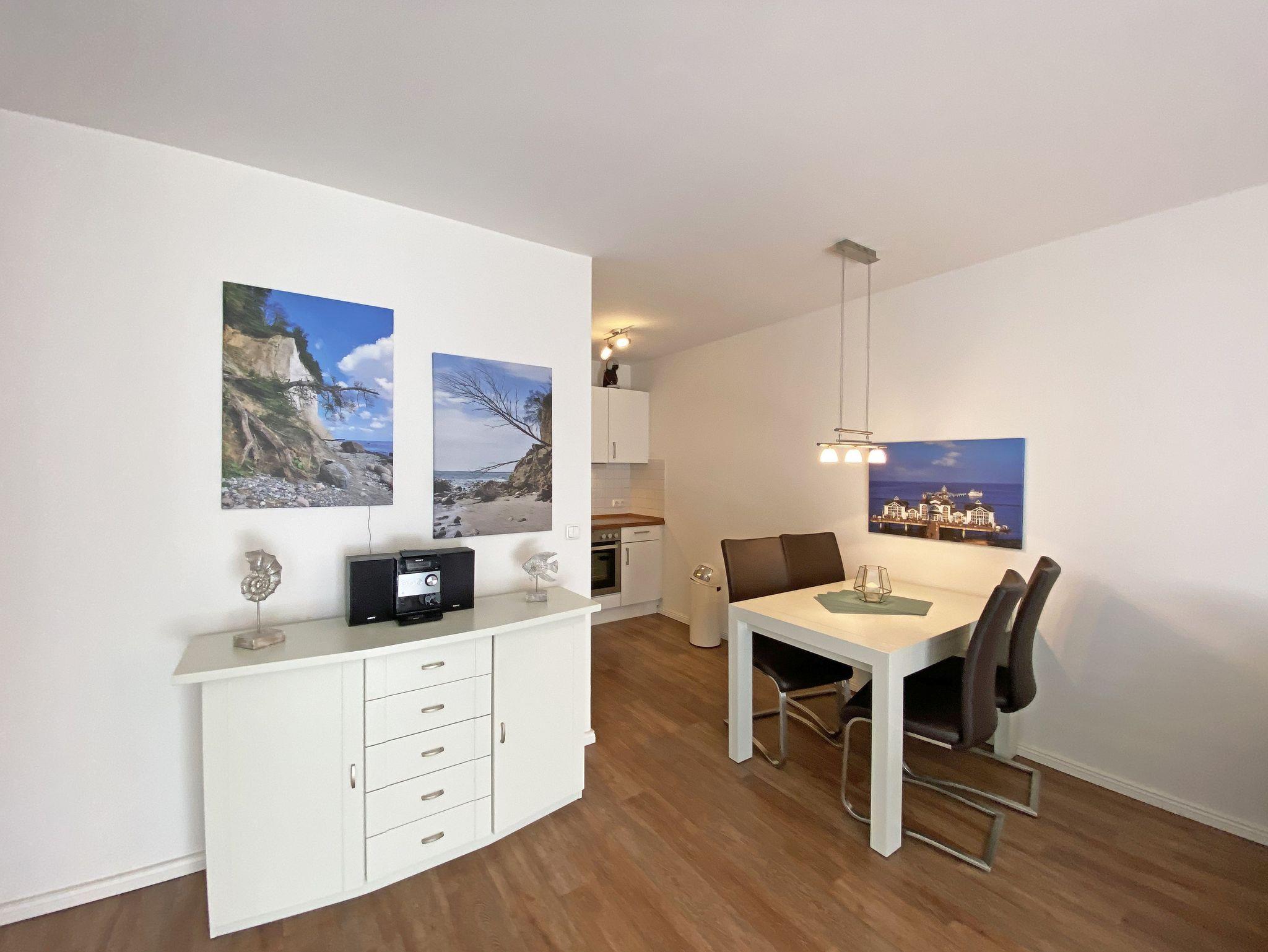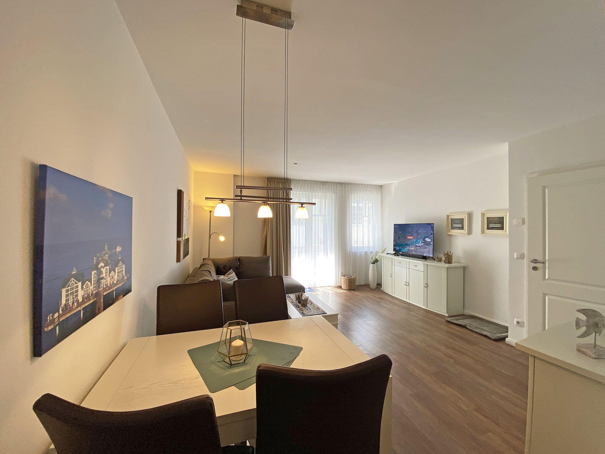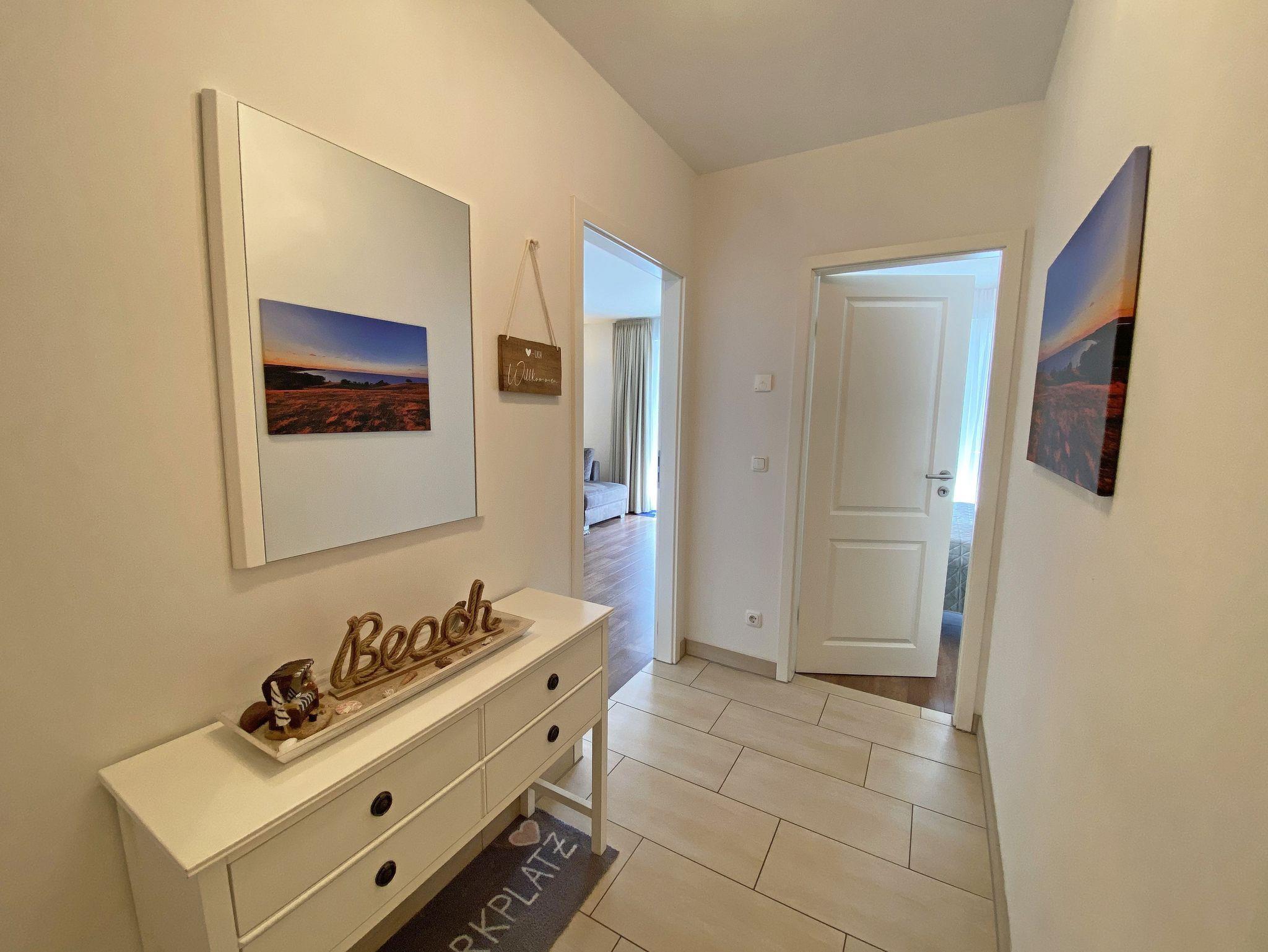 Die 2-Zimmer Nichtraucherwohnung ?Wellnesszeit befindet sich im 2. OG und ist bequem per Fahrstuhl zu erreichen. Die Wohnfläche beträgt ca. 54 m² und ist für max. 2 Personen geeignet. Der zu der Wohnung gehörende bestuhlte Balkon mit Sonnenschirm hat eine sonnige Süd/West Ausrichtung und lädt zum Verweilen ein. Das großzügige Wohnzimmer ist mit einem Essbereich, einer geschmackvollen weißen Wohnzimmereinrichtung und einer Couch ausgestattet. Der angrenzende und offene Küchenbereich umfasst einen 4-Zonen Ceranherd, Backofen, Dunstabzugshaube, Kühlschrank, Geschirrspüler, Mikrowelle, Wasserkocher, Toaster, Kaffeemaschine, Padmaschine (Dolce Gusto), Stabmixer, Eierkocher und diverse Küchenutensilien. Abgerundet wird der Wohnbereich von einem Smart-TV (48 Zoll), eine Soundbar von Bose mit Bluetooth, ein Digitalradio mit CD-Player und Bluetooth sowie Spielesammlung und Bücher, wenn das Wetter mal nicht mitspielt. Ein Internetanschluss (WLAN) können Sie inklusive in der Wohnung nutzen. Das Schlafzimmer ist mit einem Doppelbett (1,80m x 2,00m), verstellbaren Lattenrosten, Nachttischkonsolen, Flachbild-TV und Bluetooth-DAB-Radiowecker von Teufel ausgestattet. Der Kleiderschrank befindet sich im angrenzenden Ankleideraum. Abdunkelnde, beschichtete Übergardinen im Wohn- und Schlafbereich sorgen für einen ungestörten Schlaf. Das Bad ist mit einer flachen Glasdusche, Fön, Kosmetikspiegel, Waschmaschine, WC und Waschplatz ausgestattet. 2 Abstellräume sorgen für genügend Stauraum (Gepäck etc.). Hier befinden sich auch diverse Reinigungsutensilien, ein Bügelbrett und Bügeleisen sowie ein Wäscheständer. In allen Räumen sorgt eine Fußbodenheizung für angenehme Wärme. Der sich im Erdgeschoss befindliche Wellnessbereich (kostenpflichtig) verfügt über eine finnische Sauna, Dampfbad und einen stilvollen Ruhebereich. Die Wertmarken können Sie auf Nachfrage während Ihres Urlaubes erwerben. Der Parkplatz Nr. 13 (Einfahrtshöhe 2,00 m) befindet sich in der Tiefgarage (Doppelparker: bis 1,80m Höhe, 5,00m Länge sowie 2 t Gewicht) und ist für Pkws und Kombis (bis 1,80 m Höhe und 1,90 m Breite) geeignet. Ihre Fahrräder können Sie im hauseigenen Fahrradkeller unterbringen. Ein kleines Haustier (keine Katzen) mit eigenem Schlafplatz ist gegen eine Gebühr ein gern gesehener Gast. Ein Fress- und Wassernapf und ein Hundebett stehen auch zur Verfügung. Die Erstausstattung eines Wäschepaketes (komplette Bettwäsche, 1 Duschhandtuch, 2 kleine Handtücher) können Sie bis 14 Tage vor Anreise gegen einen Aufpreis dazu buchen oder durch eigene ergänzen. Ab 2 gebuchten Paketen erhalten Sie einmalig 1 Geschirrhandtuch und 1 Duschvorleger hinzu.