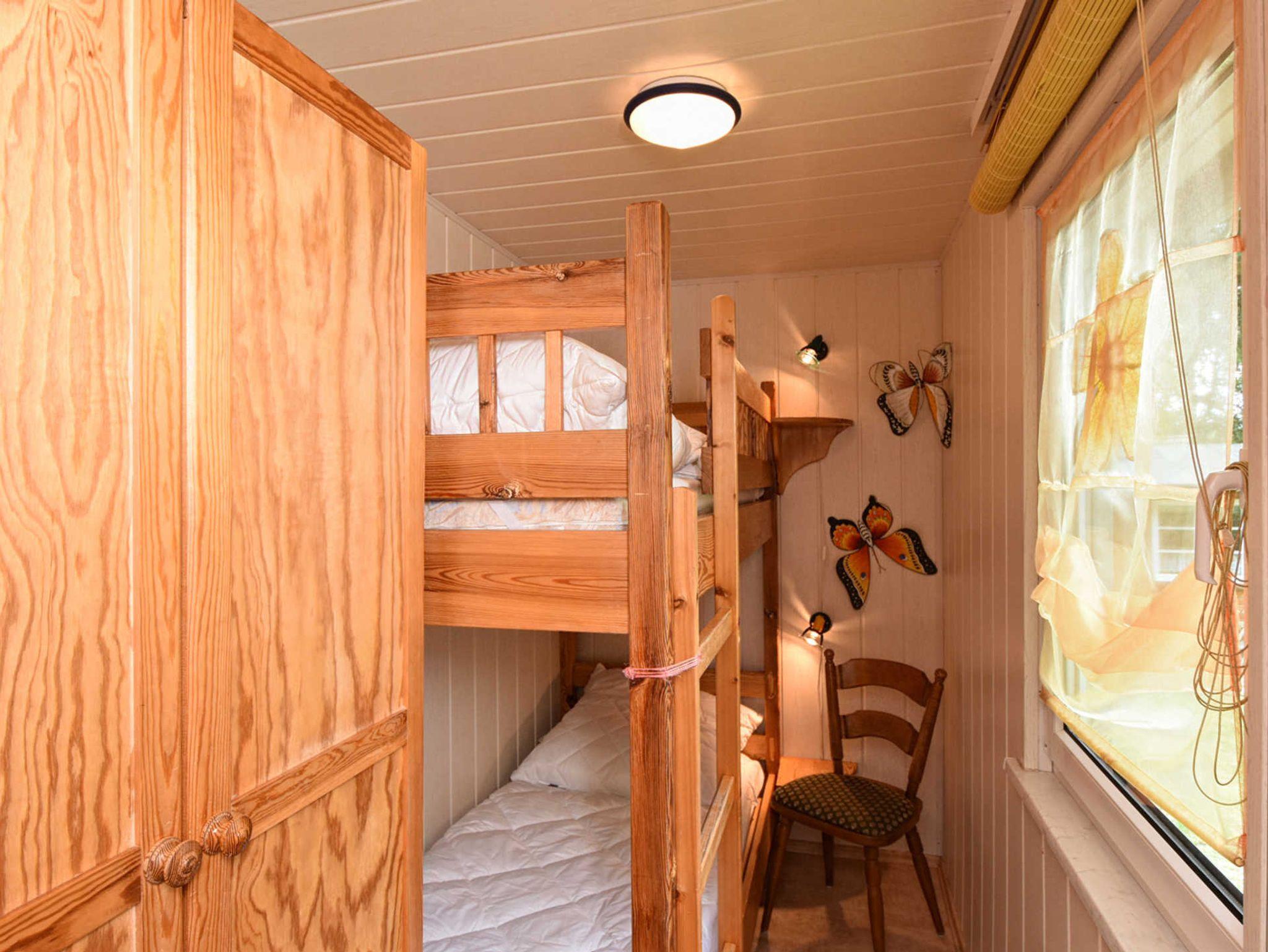 Er ist ausgestattet mit einem Schlafzimmer (Doppelbett), einem Kinderschlafzimmer (Doppelstockbett), einem Wohnbereich mit TV / Radio / WLAN, einer Küche mit Mikrowelle, Wasserkocher, Kaffeemaschine, Kühlschrank, Herd, Toaster, Geschirr und Besteck. Im Eingangsbereich steht eine Esstisch mit Stühlen. Im Bad befindet sich eine Dusche, Waschbecken und WC. Auf der Terrasse befinden sich Gartenmöbel und Sitzauflagen. Ein Grill steht zur Verfügung. Grillen ist nur auf dem vorgesehenen Grillplatz erlaubt.