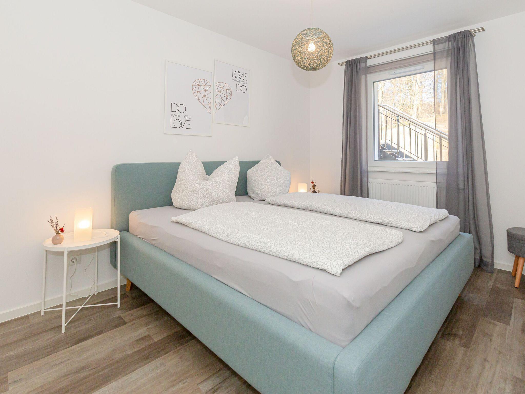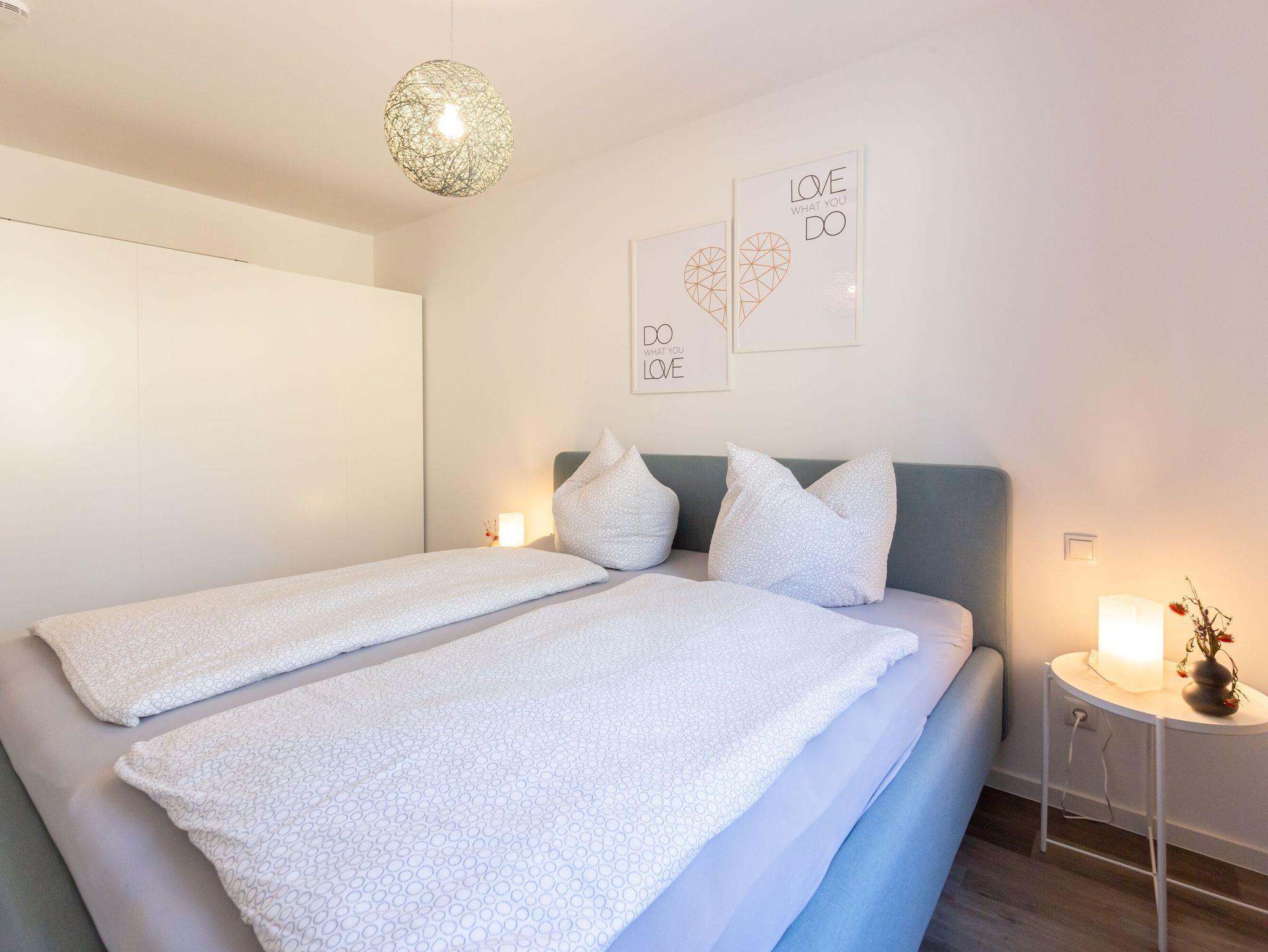 Die Ferienwohnung Vergissmeinnicht in Sellin bietet 85 m² Komfort nahe Strand und Zentrum mit Balkon, Sauna und E-Auto Ladestation.
