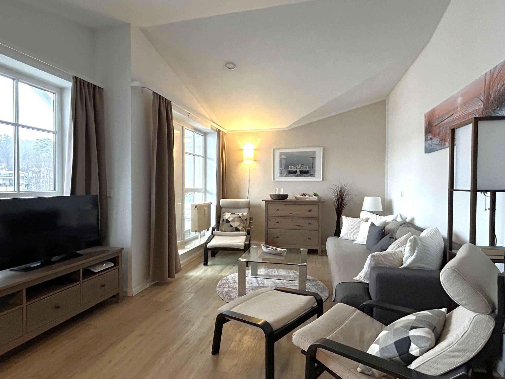 Modernes Ferienappartement im Seepark Sellin mit Balkon, WLAN, Tiefgarage und Nähe zu Ostsee, Strand und AHOI Erlebniswelt.