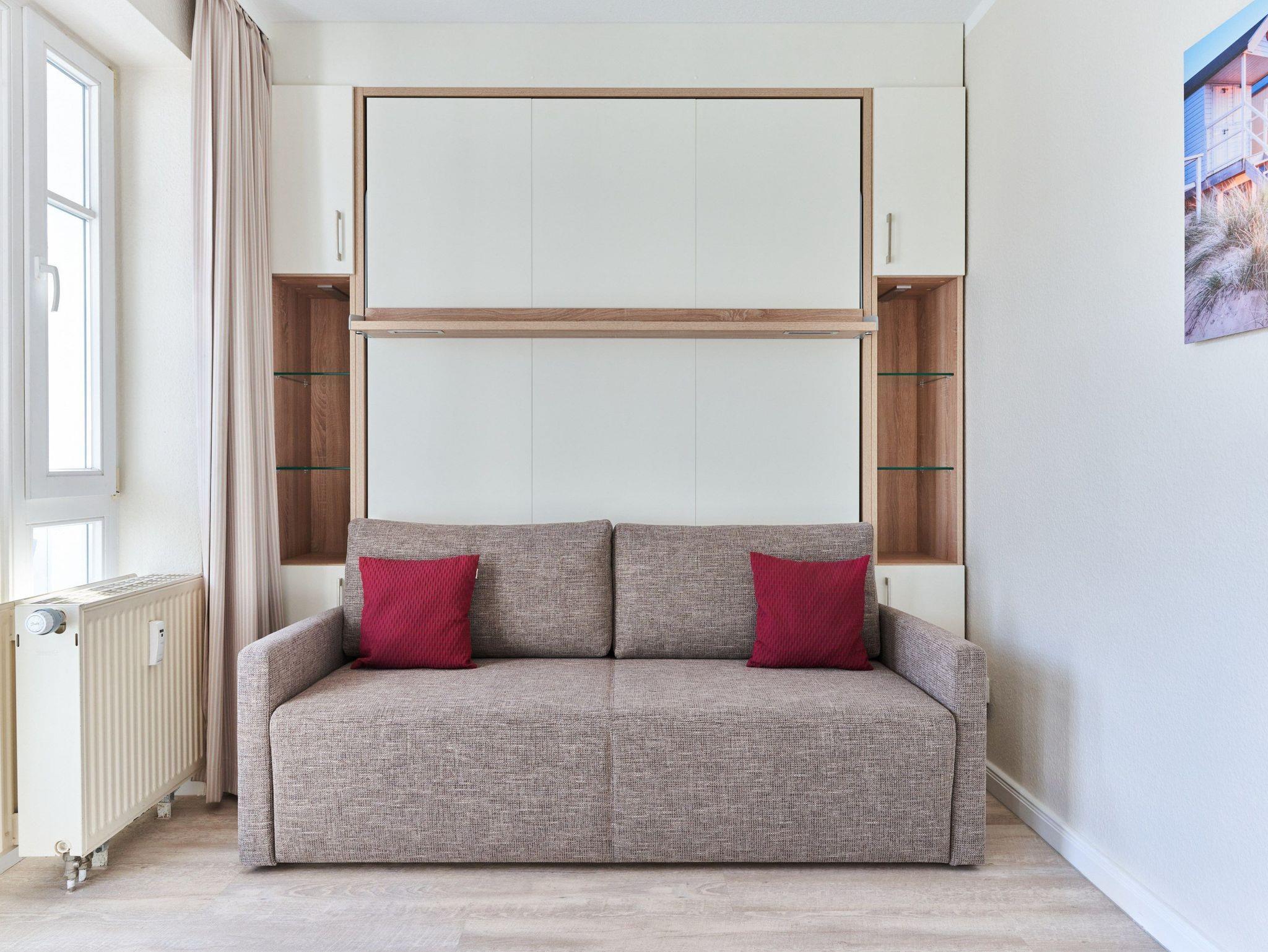 Die Ferienwohnung 341 im Seepark Sellin befindet sich im Haus Haus Having in der 2. Etage und bietet auf 20 m² Platz für maximal 2 Personen. Die Wohnung verfügt über ein kombiniertes Wohn- und Schlafzimmer, ein Badezimmer und einen Balkon.