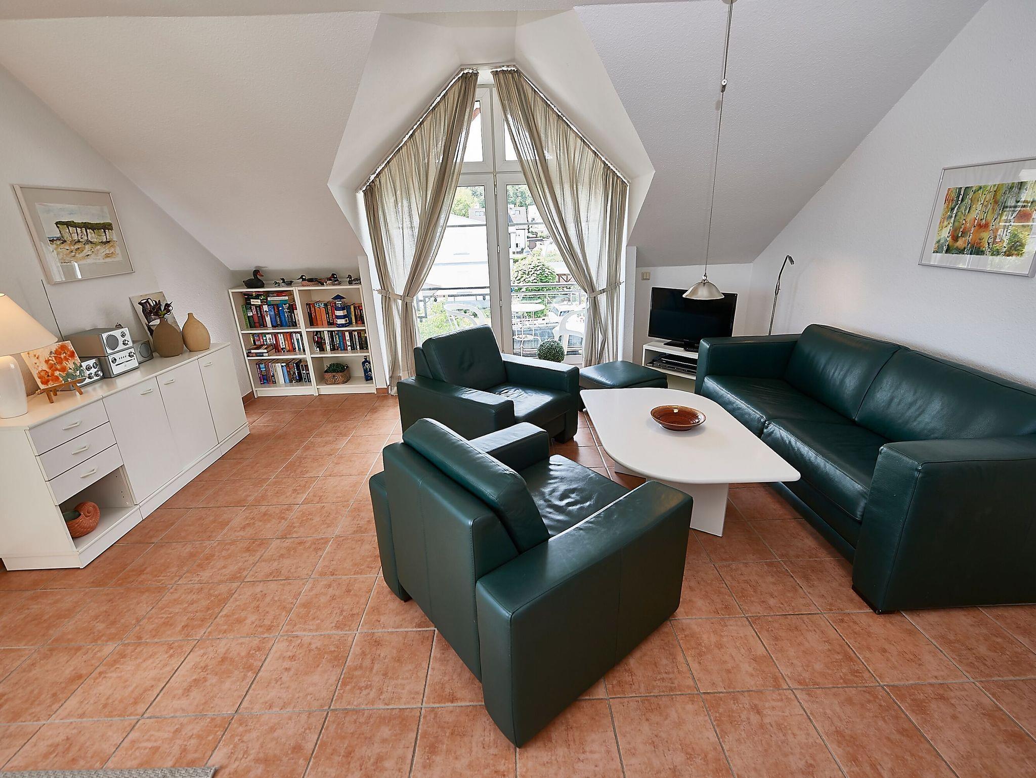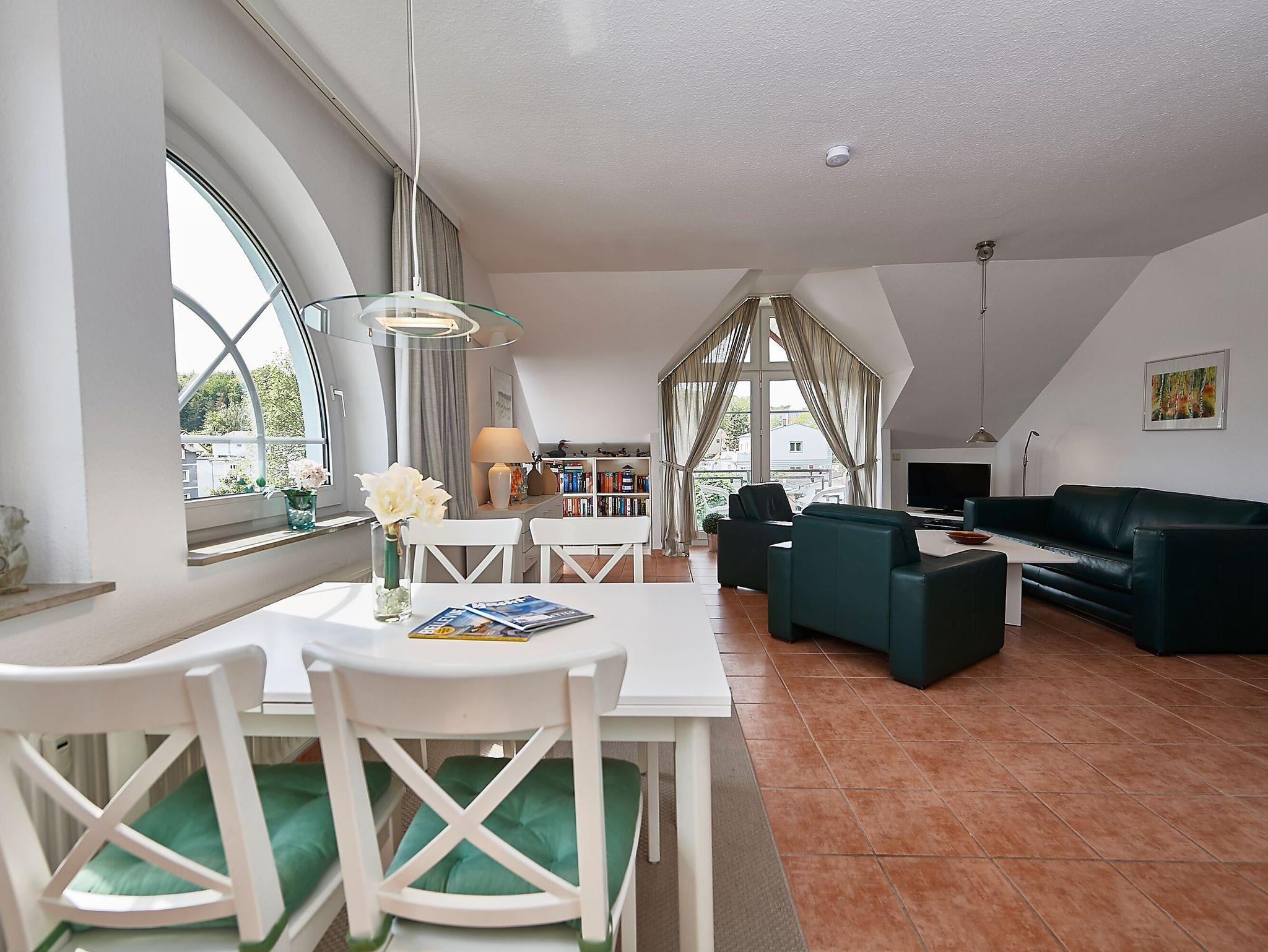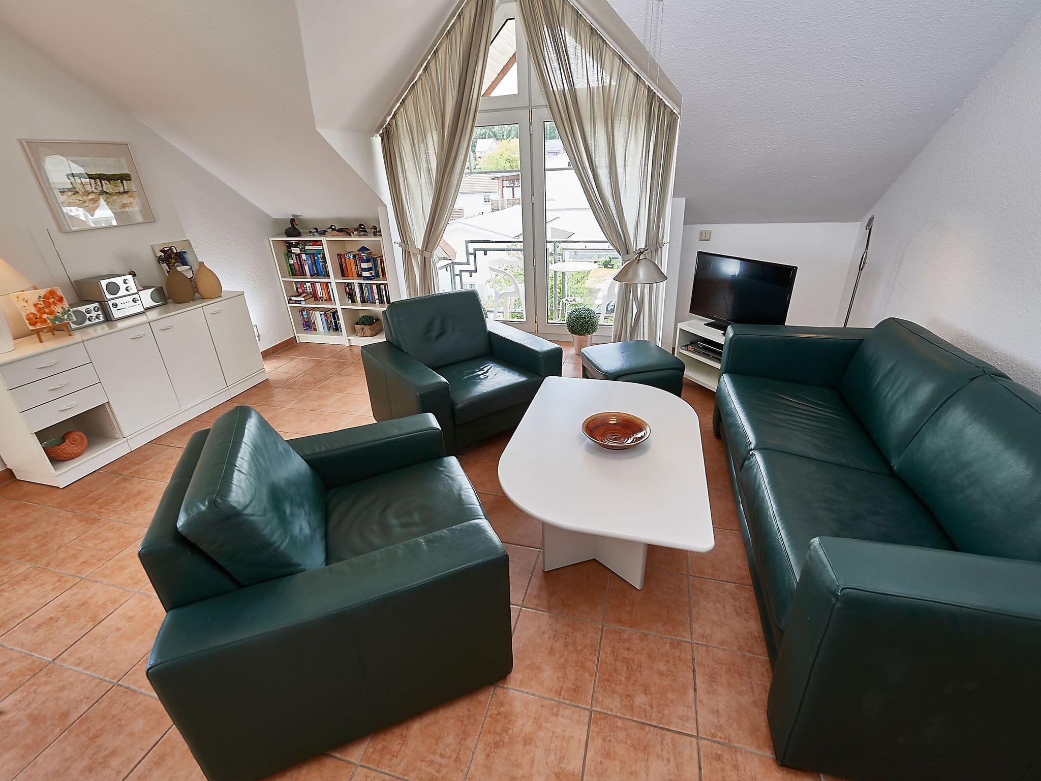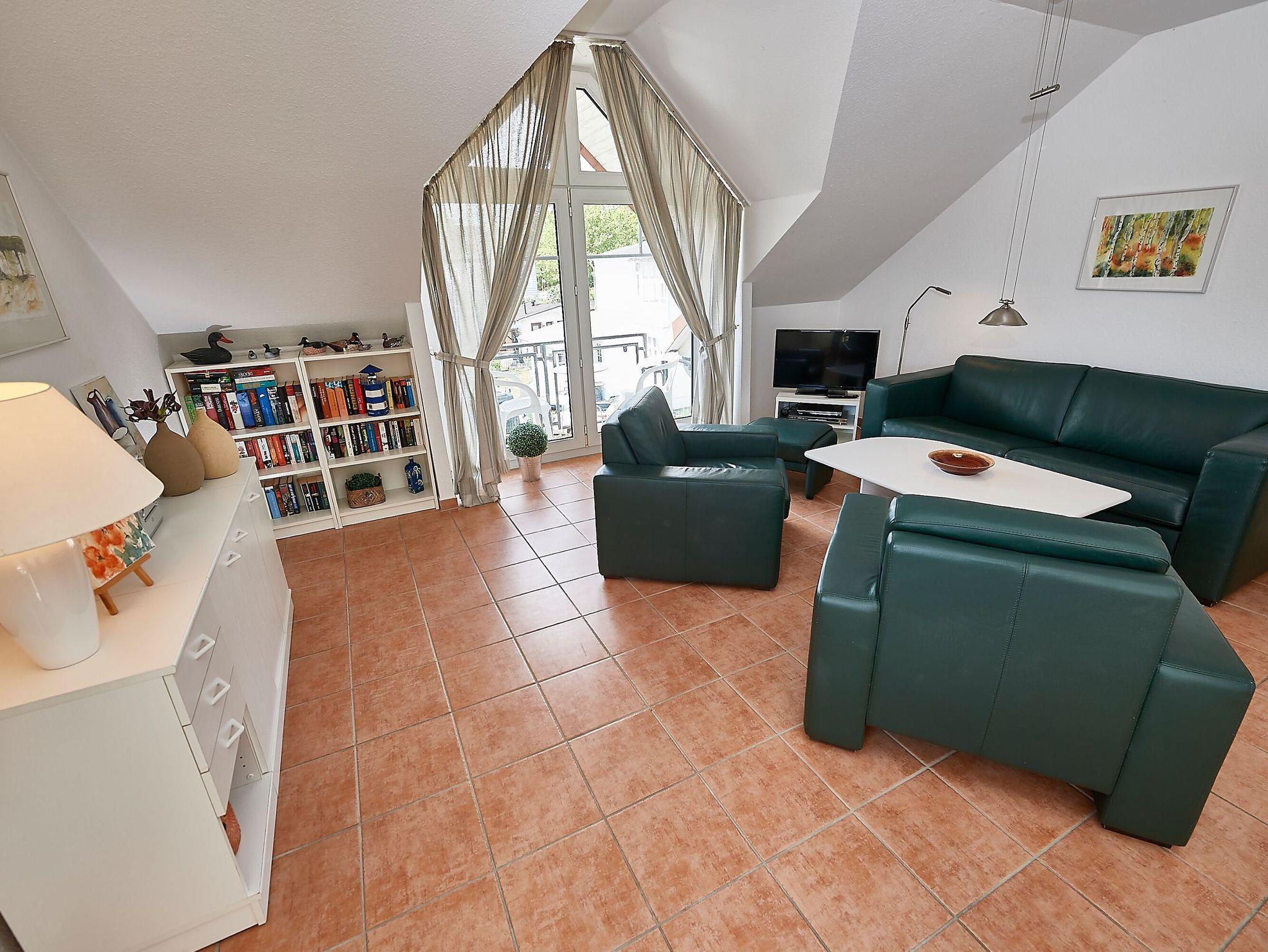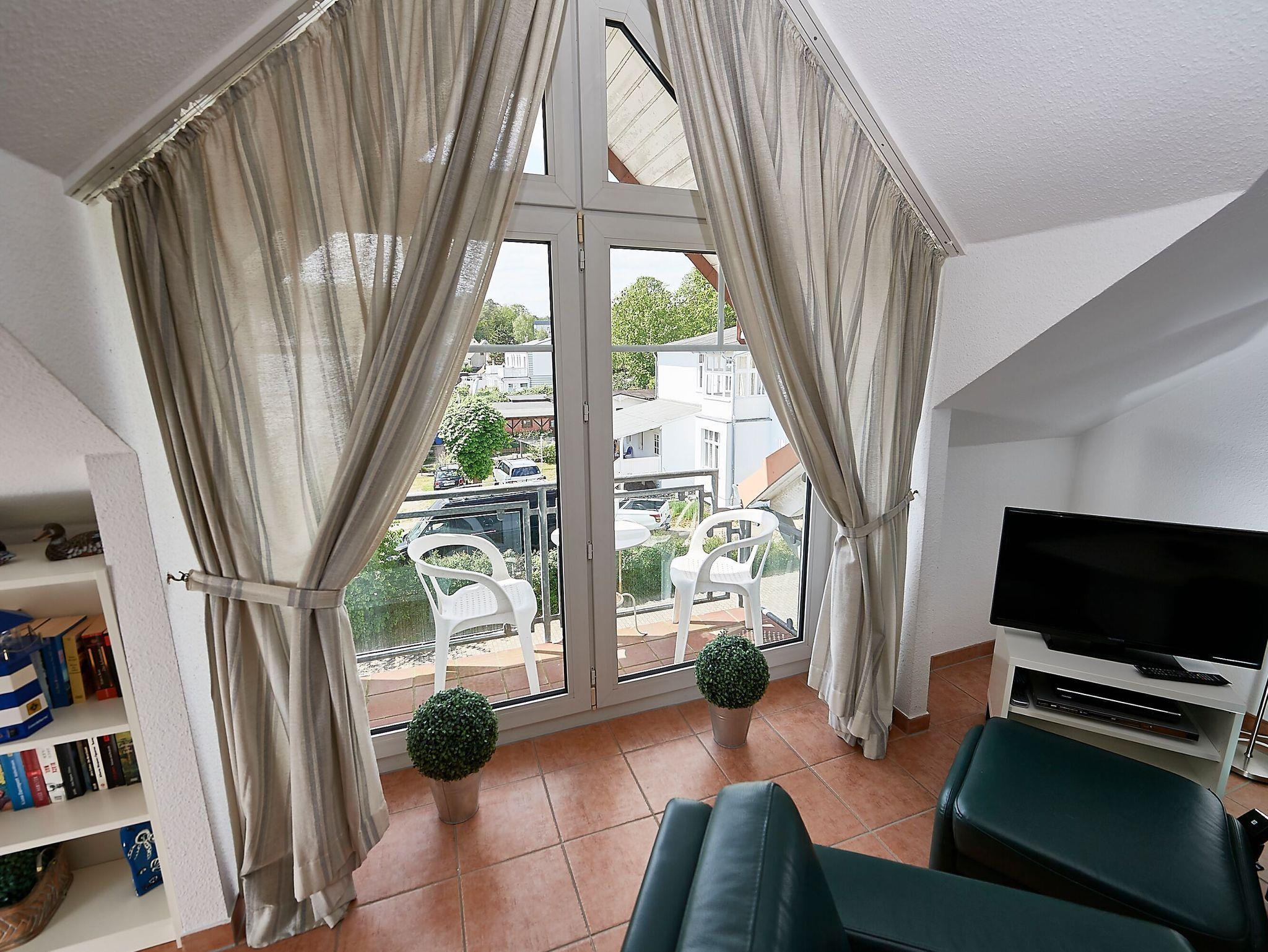 Sonniges 2-Raum-Dachgeschoss-Appartement mit Balkon, WLAN und Stellplatz in Sellin, nur 950 m vom Strand entfernt.