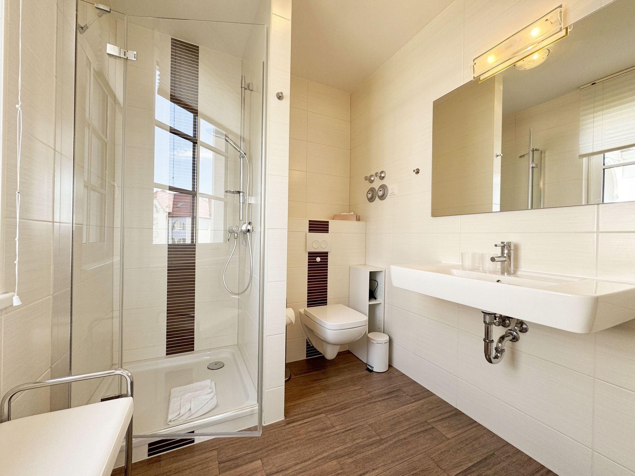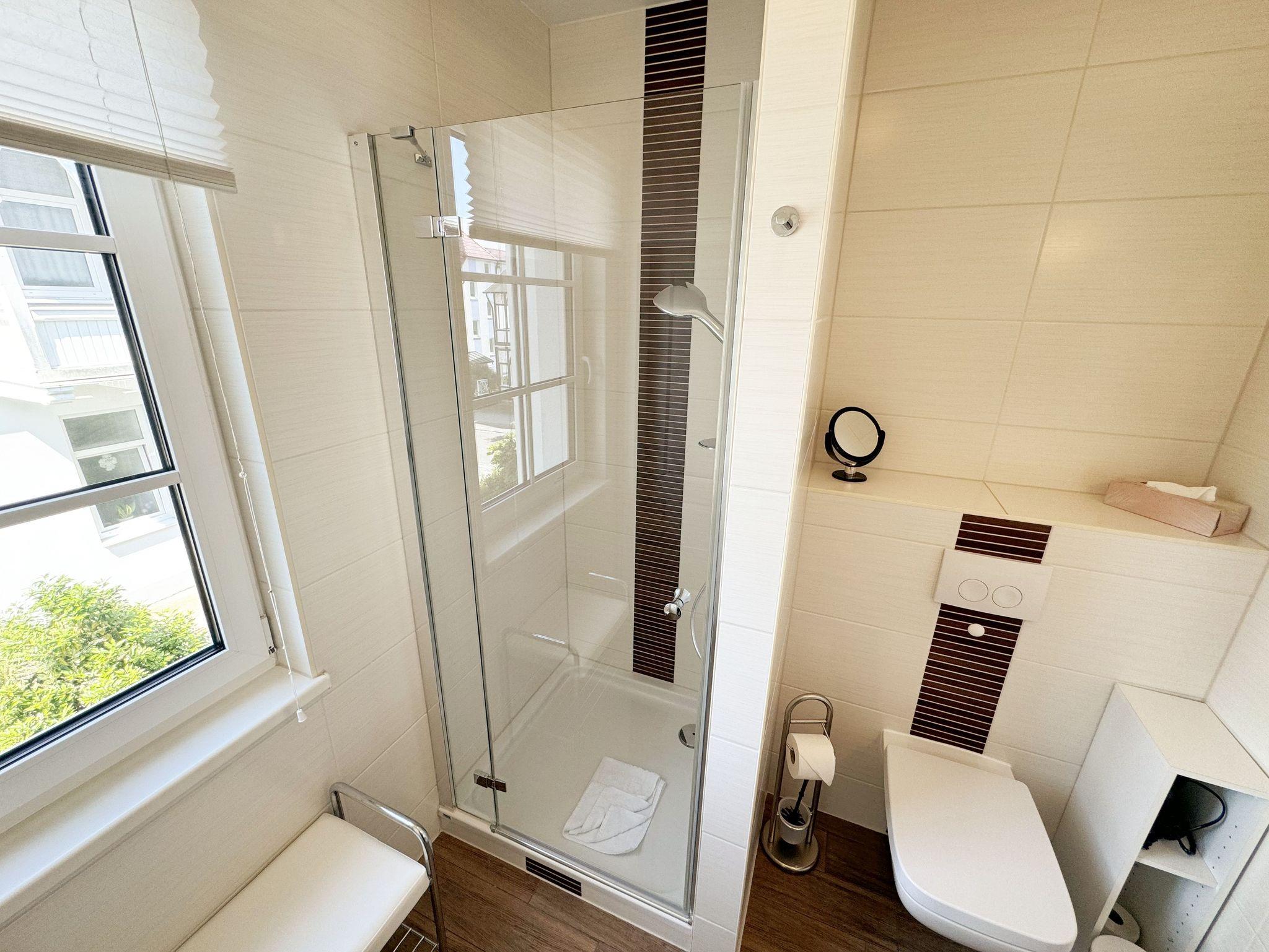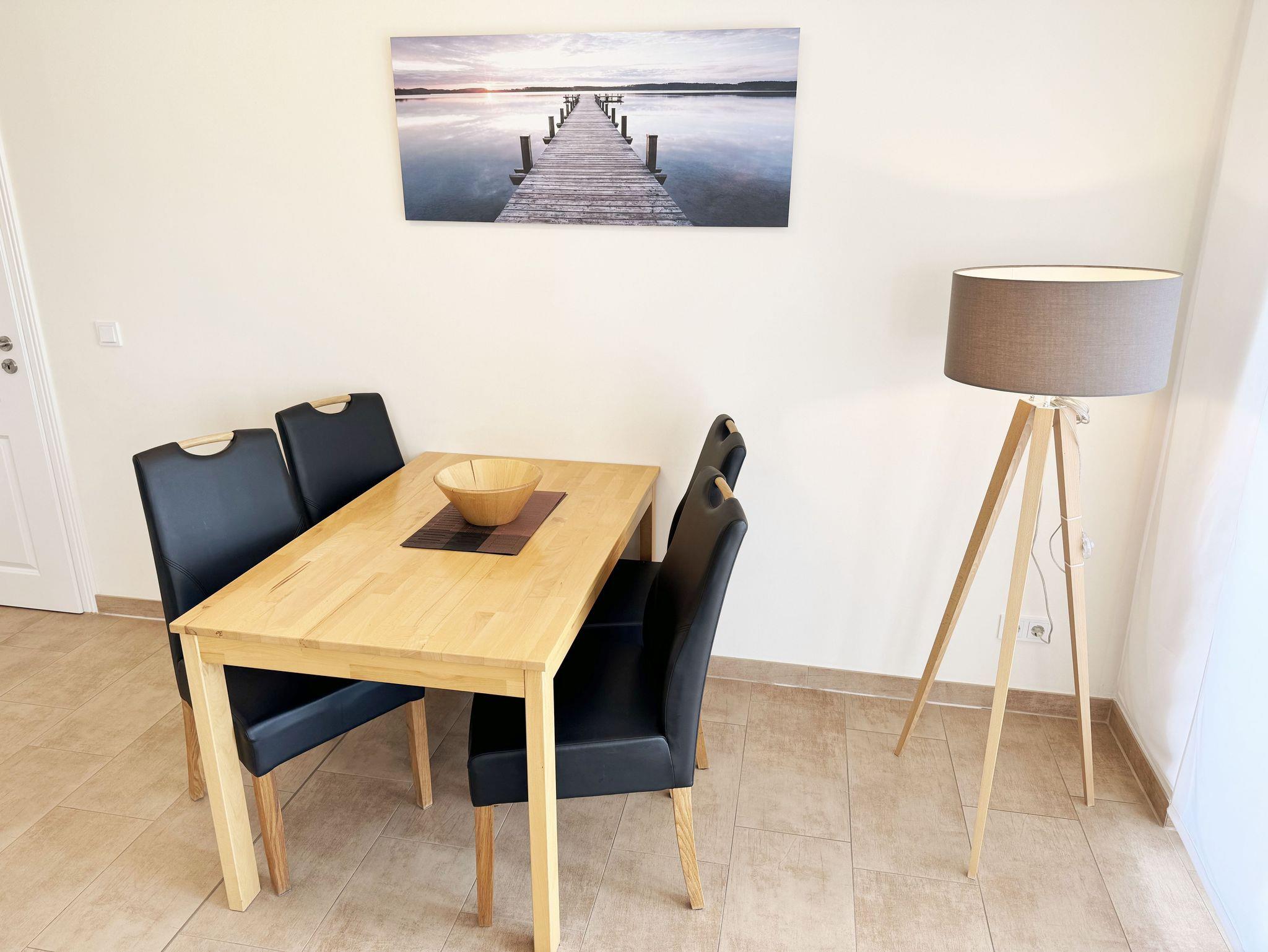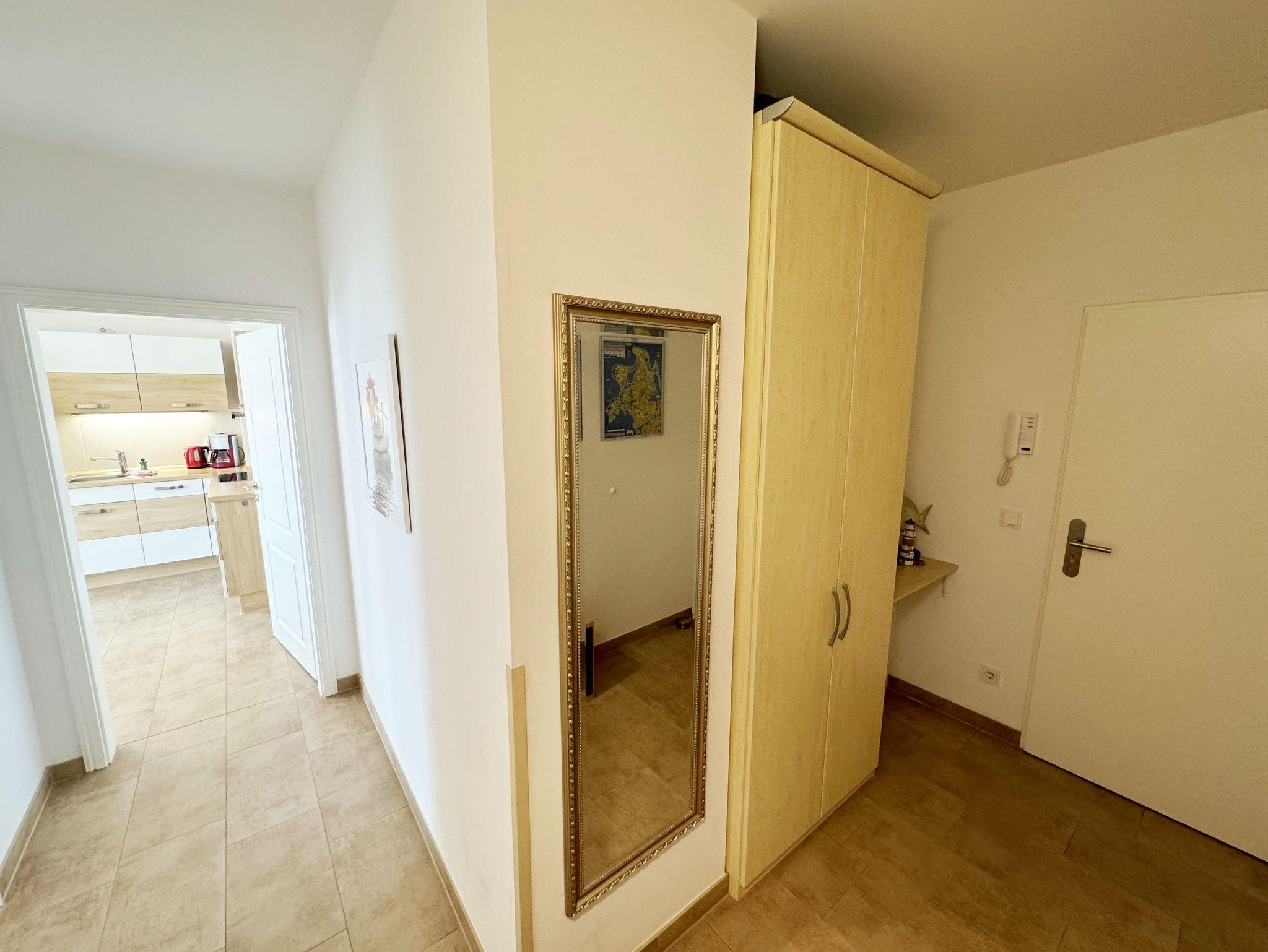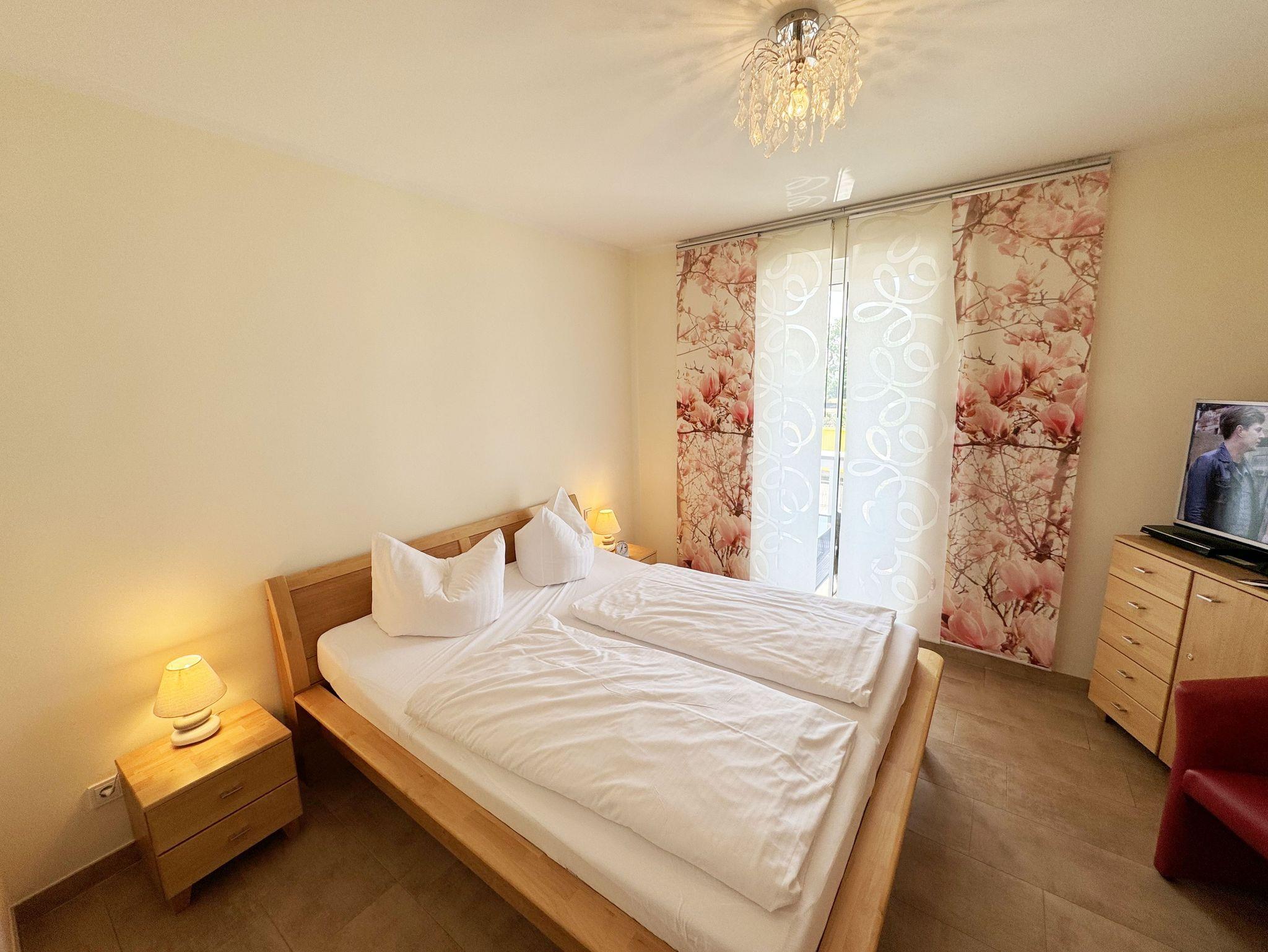 Freuen Sie sich auf Ihren nächsten Urlaub in der großzügigen, hellen und modern eingerichteten Nichtraucherferienwohnung Nr. 07 in der Villa Annika. Die Wohnung befindet sich im 1. Obergeschoss des Hauses und verfügt über eine Wohnfläche von ca. 60 qm, einen großen Südbalkon und einen separaten Wohn- und Schlafraum. Die Ferienwohnung ist für max. 2 Erwachsene und 1 Kind bis 17 Jahre ausgelegt. Der Flur/Eingangsbereich verfügt über eine Garderobe und einen Abstellschrank. Von hier aus gelangen Sie in den kombinierten Wohn- und Essbereich mit integrierter Küchenzeile. Die komplett ausgestattete Küchenzeile verfügt über ein Cerankochfeld, Backofen, Dunstabzugshaube, Kühl-Gefrierkombination, Spülmaschine, Kaffeemaschine, Dolce Gusto Kapselmaschine, Wasserkocher, Toaster und weitere diverse Küchenutensilien. Der Esstisch mit Bestuhlung ist für 4 Personen geeignet. Von hier aus gelangen Sie durch eine Doppeltür auf den Balkon. Im Wohnbereich befinden sich ein Zweisitzer und ein Dreisitzer welche eine Liegefläche von 1,00m x 1,80m hat. Ein kleiner Couchtisch, Leselampe, TV-Board mit Smart-TV, DVD-Player, DAB-Radio, Micro Hi-Fi-Anlage mit USB und CD runden den Wohnbereich ab. Das Schlafzimmer hat einen direkten Zugang auf den Balkon. Das im Schlafbereich vorhandene Doppelbett hat eine Größe von 2 x 0,80 m x 2,00 m und verfügt über einen Kleiderschrank, Wäschekommode, Sessel und LED-TV mit DVD. Ein Kinderreisebett kann im Schlafzimmer aufgestellt werden. Das Bad rundet mit einem WC, Waschbecken, Dusche, Kosmetikspiegel, Handtuchwärmeheizkörper und Fön die Wohnung komplett ab. In allen Räumen sorgt eine Fußbodenheizung für angenehme Wärme. Ein Bügelbrett und ein Bügeleisen sind als weitere Utensilien vorhanden. Auf einen WLAN-Zugang müssen Sie in Ihrem Urlaub nicht verzichten. Der wohnungseigene Balkon verfügt über 1 Tisch, 2 Stühle sowie über eine gemütliche Sitzgruppe und ist Richtung Süden ausgerichtet. Ein eigener Stellplatz (Nr.07) befindet sich in der hauseigenen Tiefgarage (Höhe 1,90 m) sowie eine Fahrradabstellmöglichkeit auf dem Areal und der in der Tiefgarage. Haustiere sind nicht erlaubt. Die Erstausstattung eines Wäschepaketes (komplette Bettwäsche, 1 Duschhandtuch, 1 kleines Handtuch) können Sie bis 14 Tage vor Anreise gegen einen Aufpreis dazu buchen oder durch eigene ergänzen. Ab 2 gebuchten Paketen erhalten Sie einmalig 1 Geschirrhandtuch und 1 Duschvorleger hinzu.