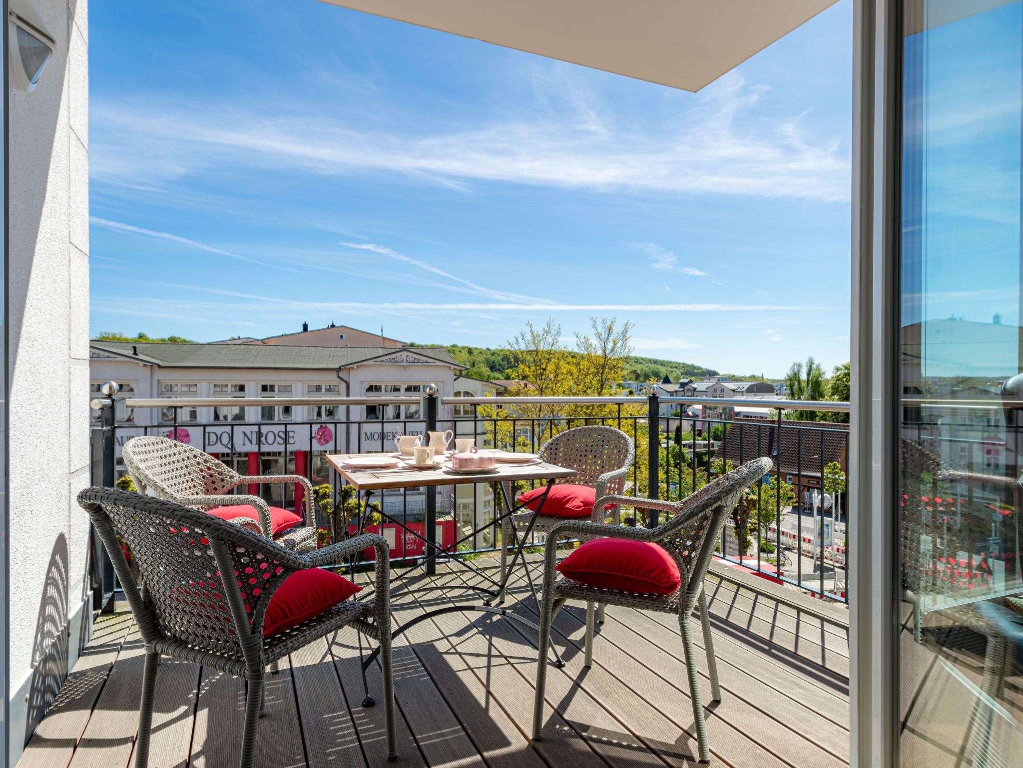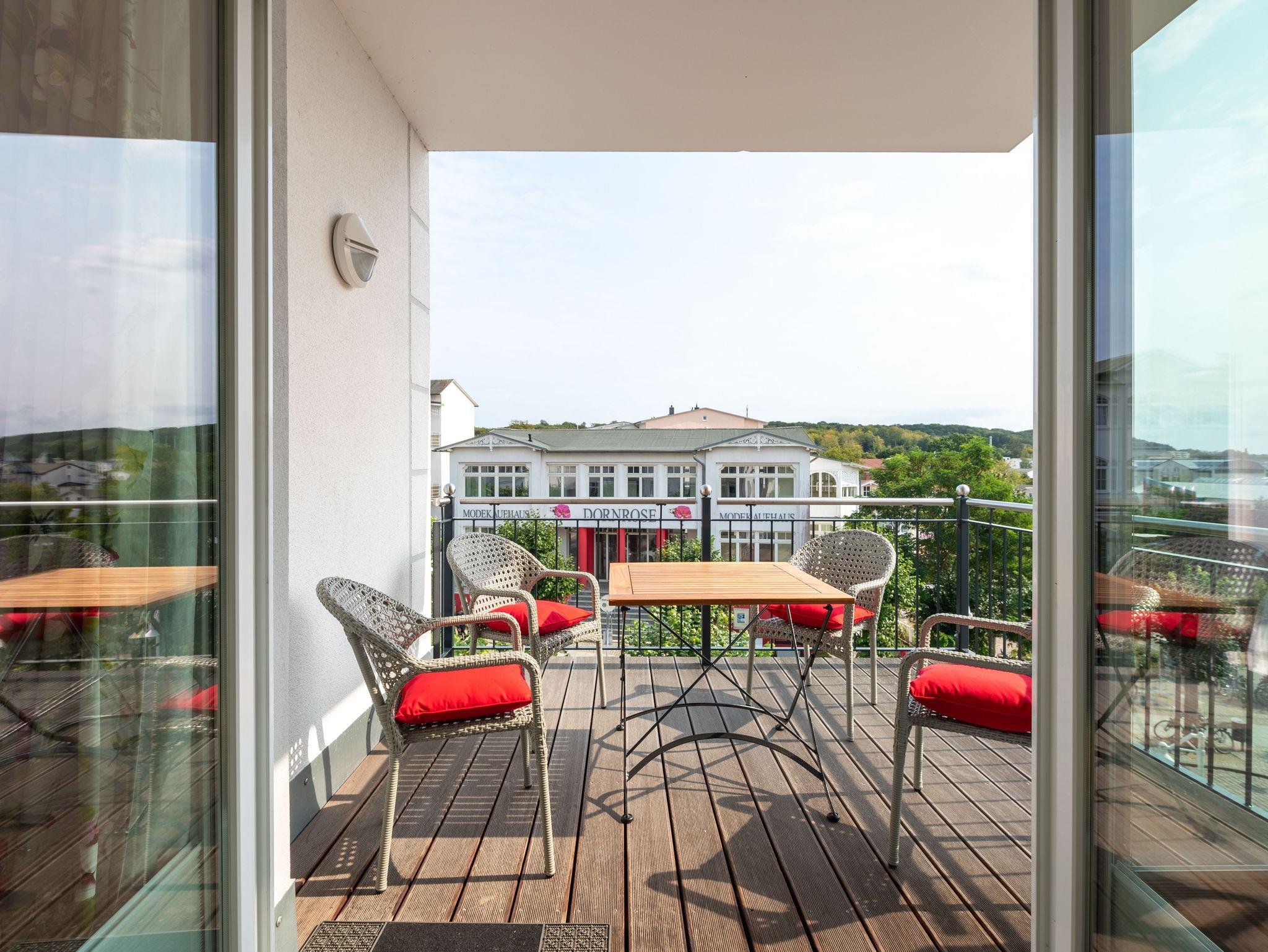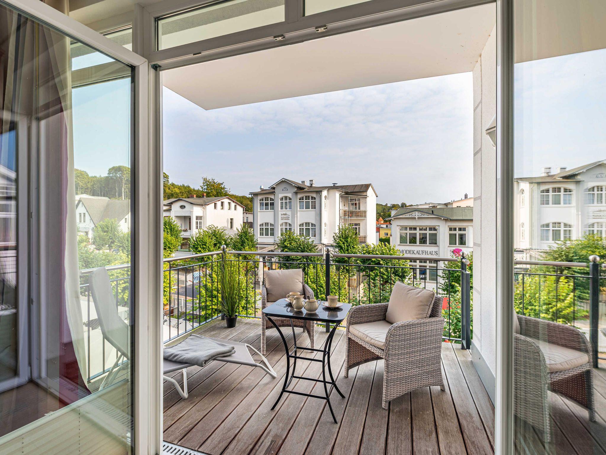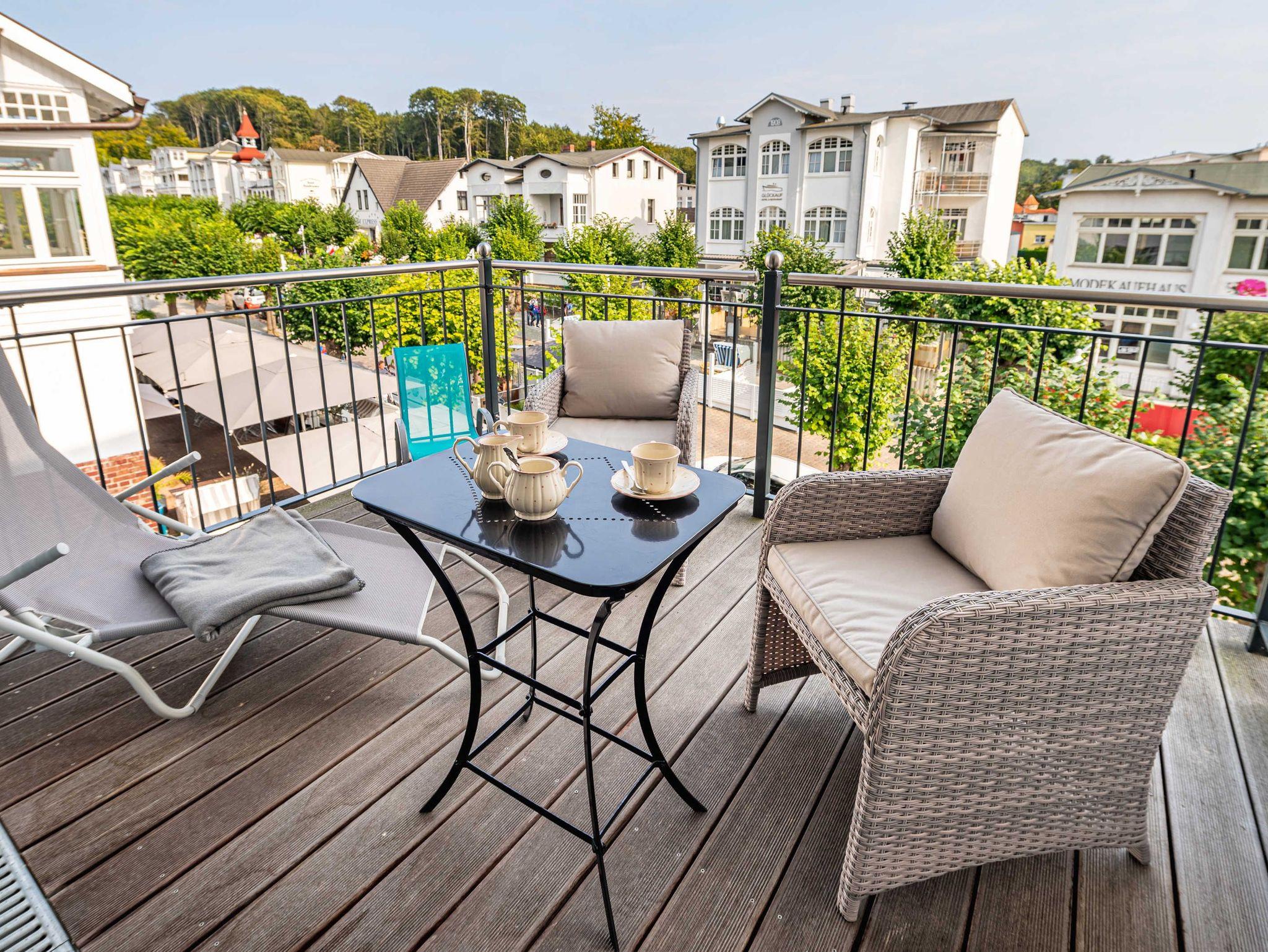 Schöne Ferienwohnung Wilhelmine in Sellin mit zwei Balkonen und Blick auf die Wilhelmstraße.