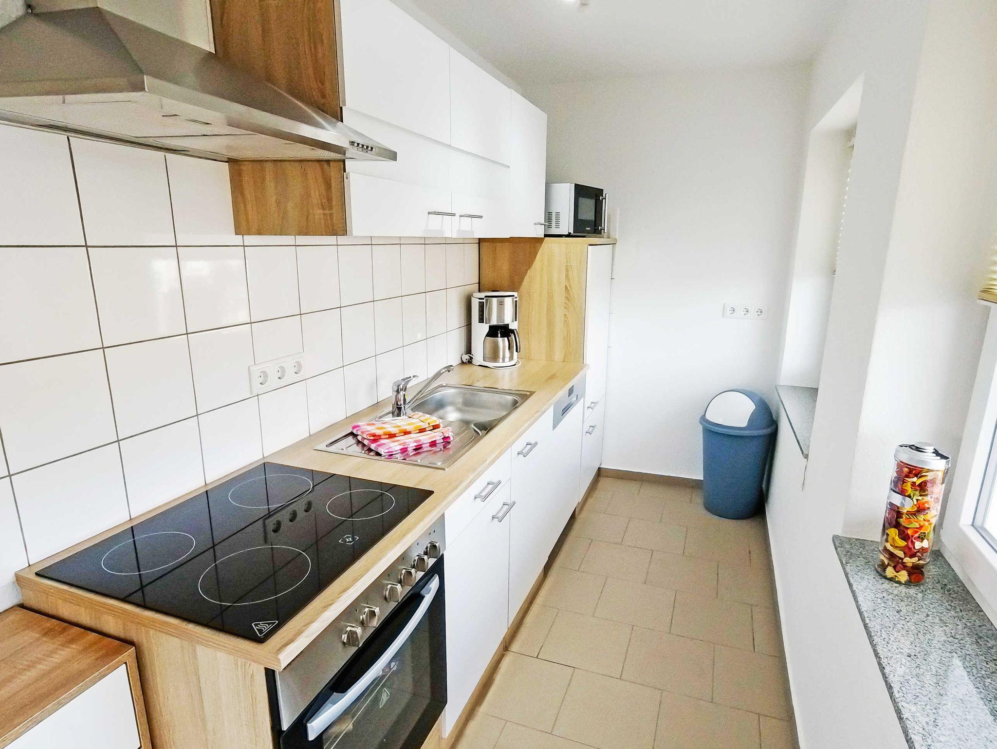 Die separate Einbauküche ist sehr gut ausgestattet und verfügt über einen Herd mit Ceranfeld und Backofen, Abzugshaube, Spülmaschine, Kühlschrank mir Gefrierfach, Mikrowelle, Kaffeemaschine, Toaster, Wasserkocher, Eierkocher sowie ausreichend Geschirr und Kochutensilien.
