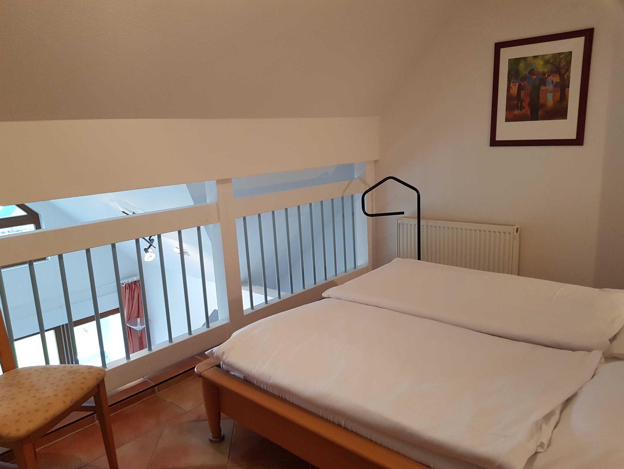 Große offene Maissonette Wohnung mit Balkon und Blick auf den Neuensiener See. Im oberen Teil befindet sich ein Doppelbett und kleines Kinderschlafzimmer. Im unteren Teil ist das Wohnzimmer mit Küchenzeile und anschließendem Bad mit Dusche , WC. Balkon mit Sitzgelegenheiten. Die Betten sind bei Anreise bezogen. Handtücher, soweit nicht selbst mitgebracht, können zusätzlich gemietet werden.