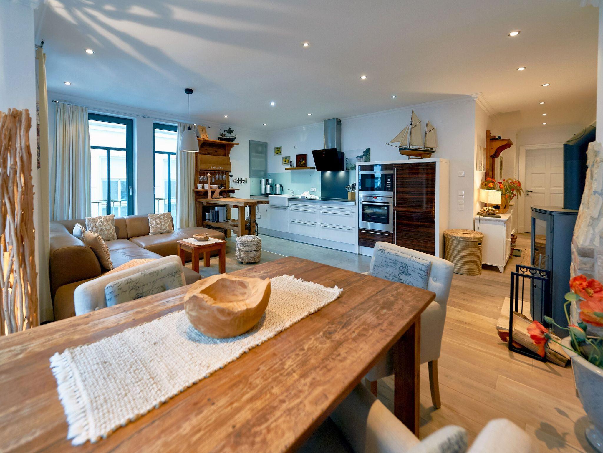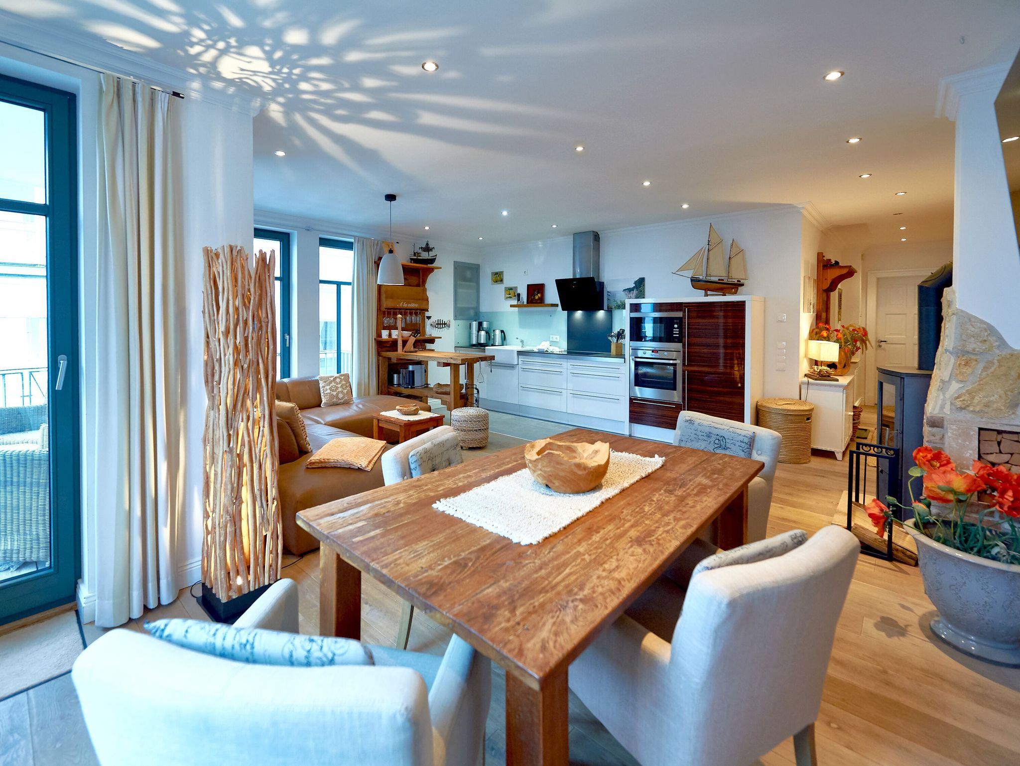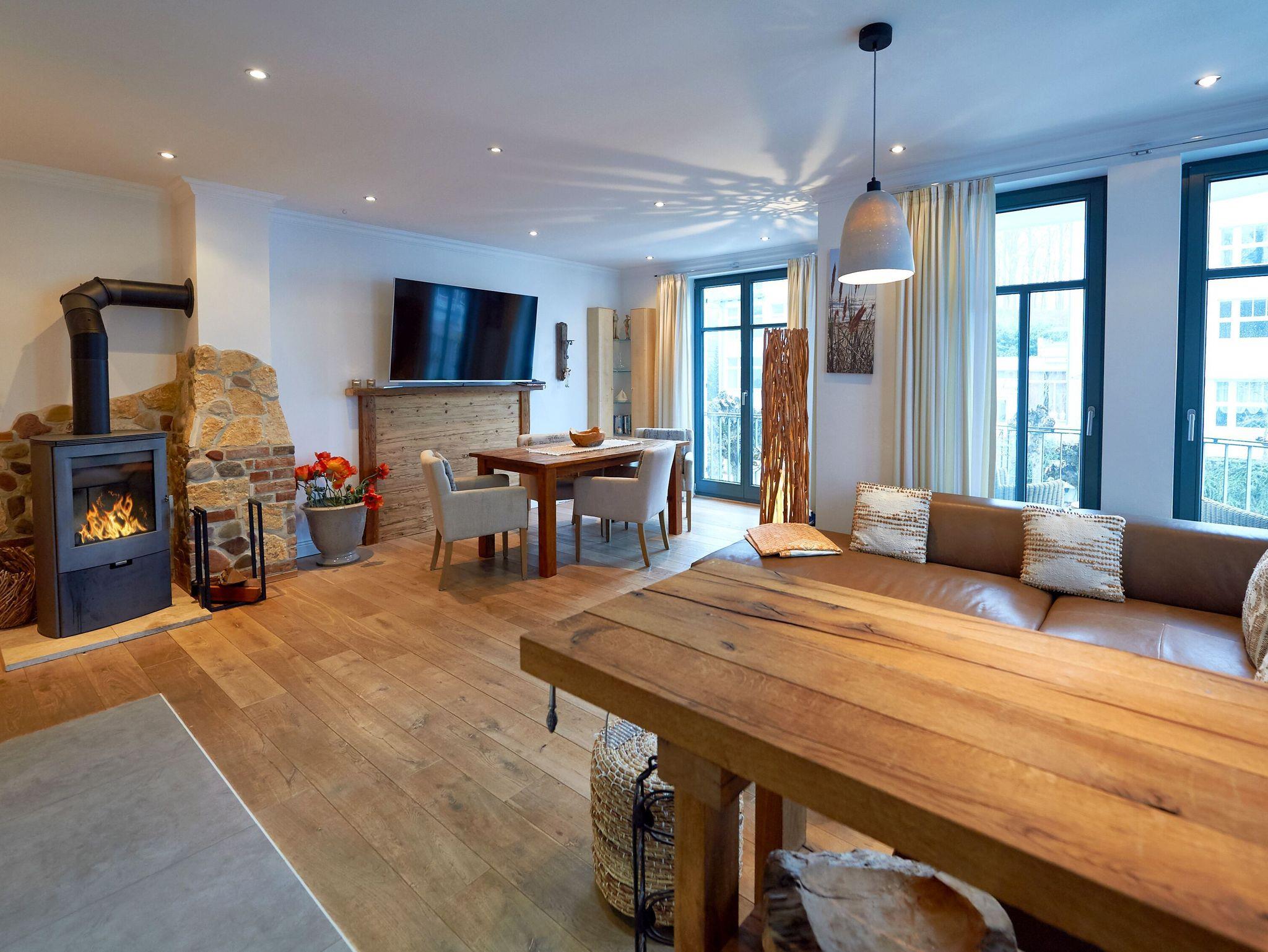 Modernes 3-Raum-Appartement mit Kamin, Balkon, Terrasse und beheiztem Pool in Sellin an der Ostsee.