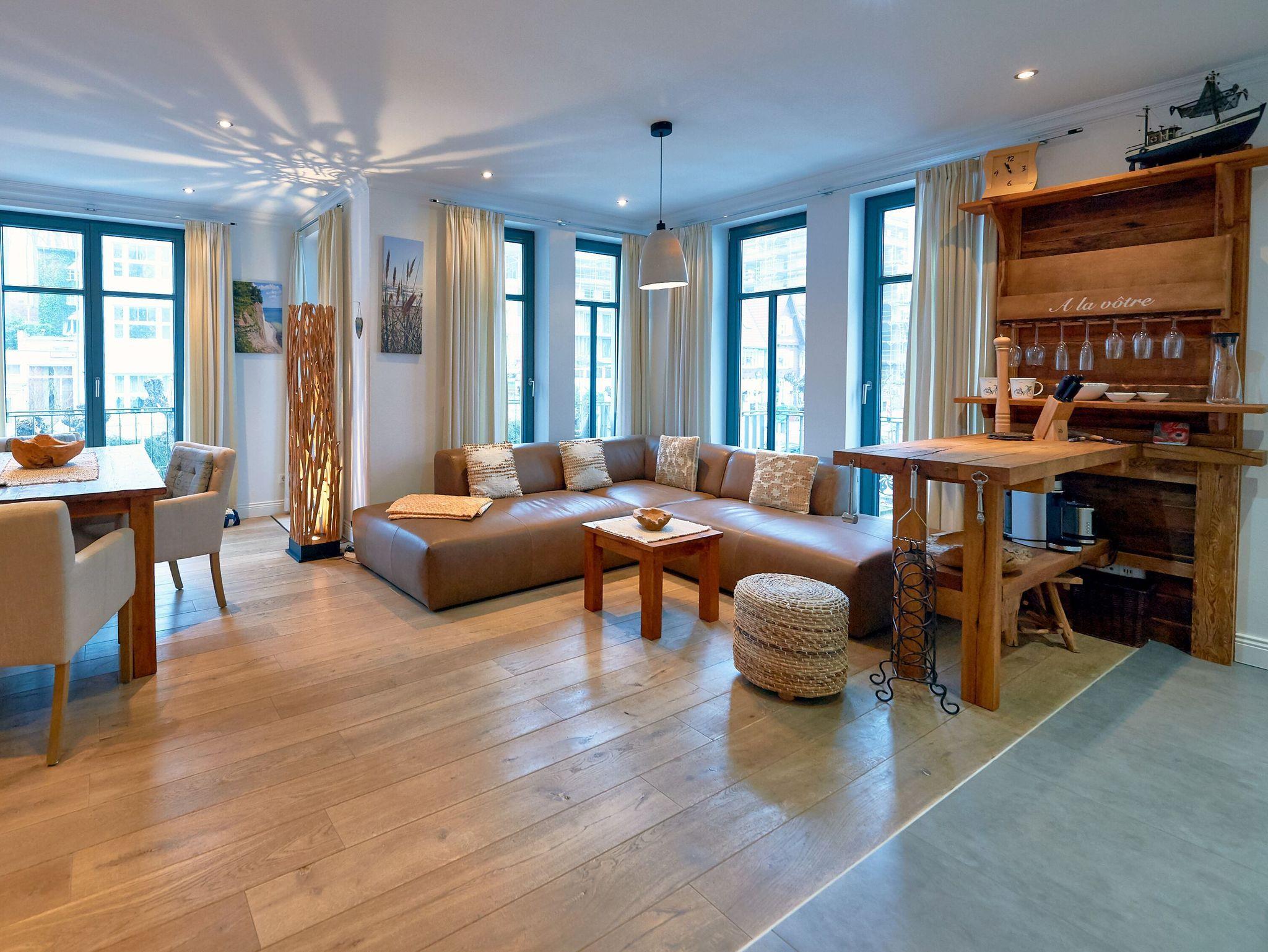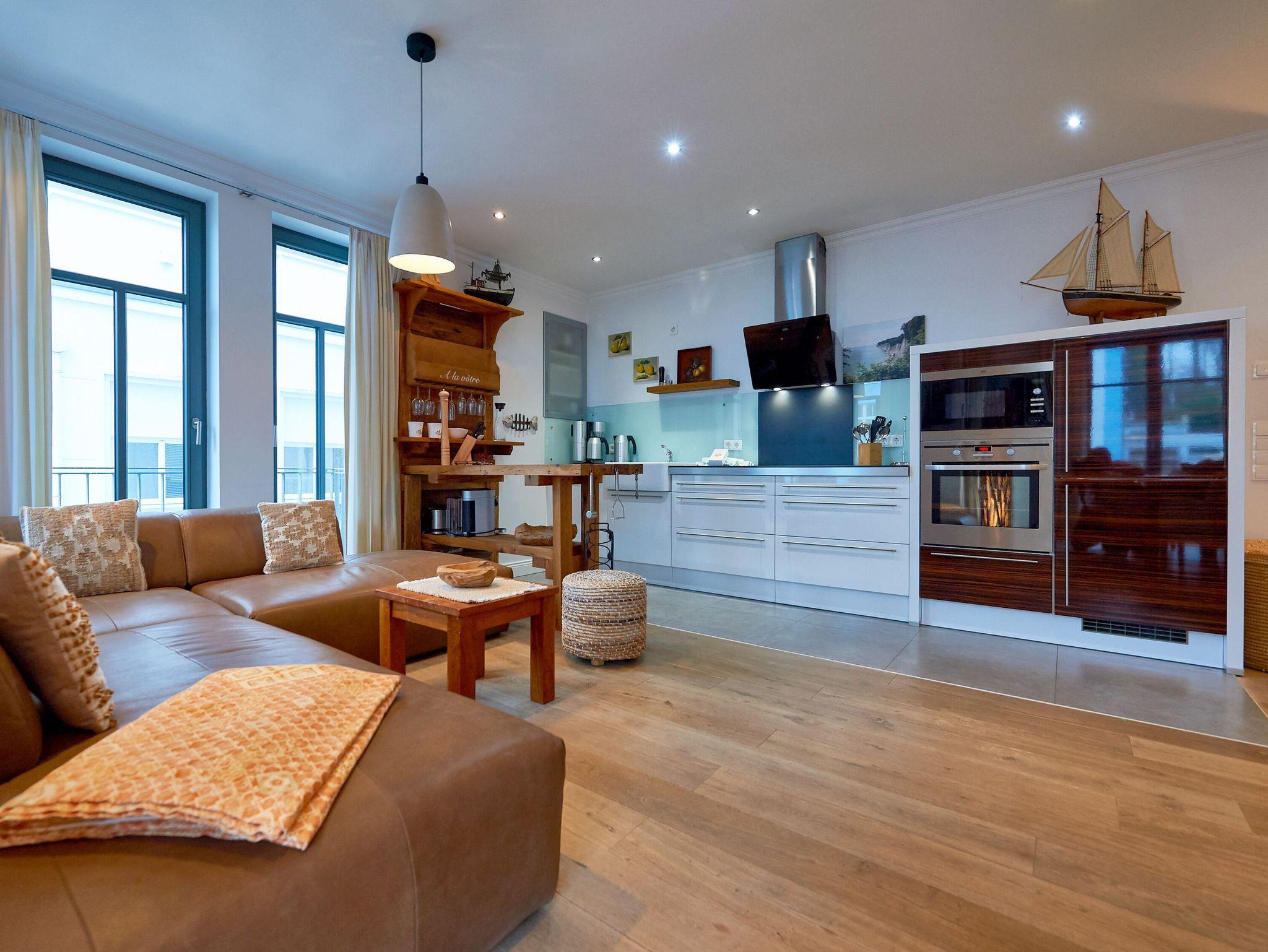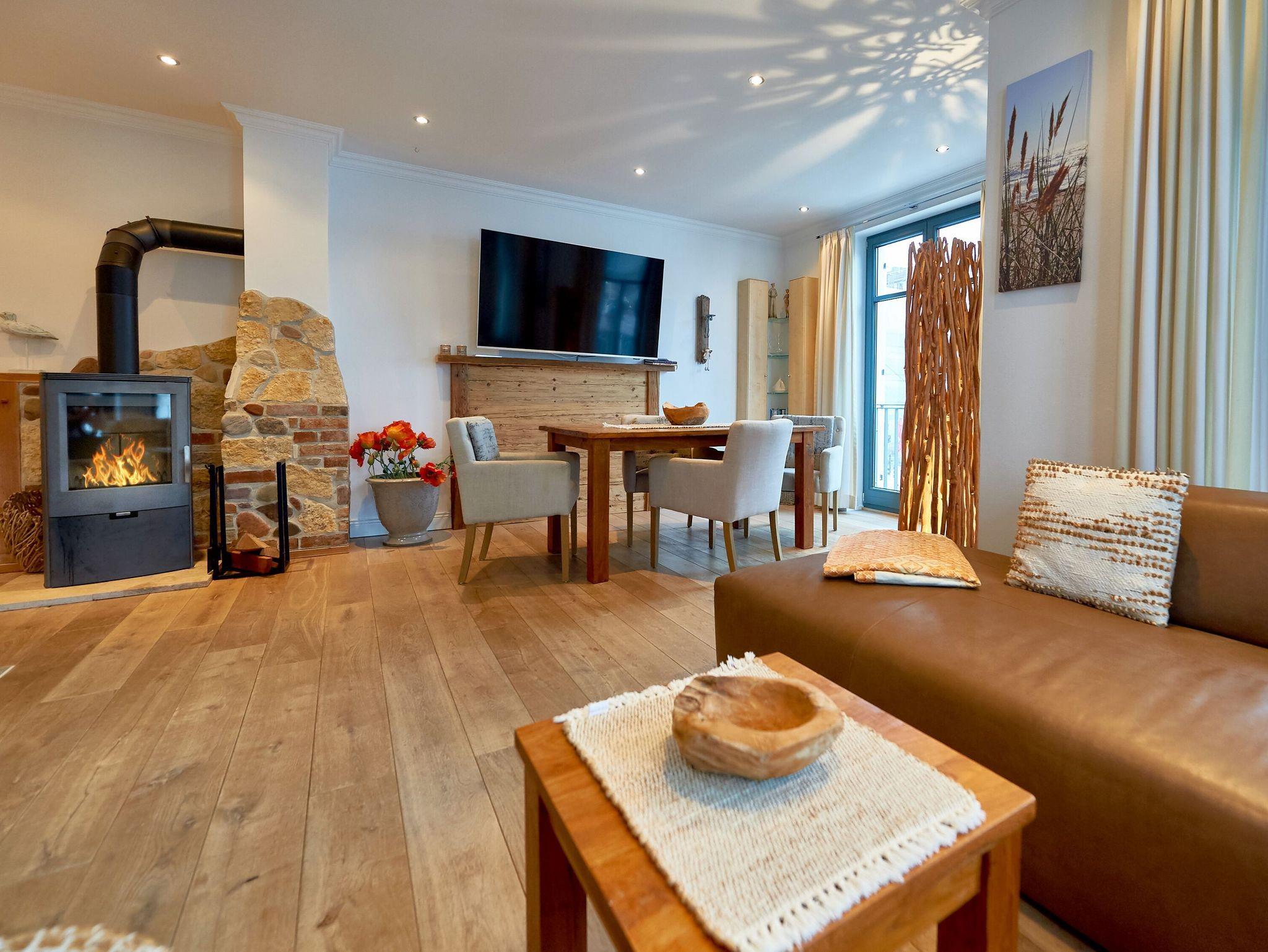 Modernes 3-Raum-Appartement mit Kamin, Balkon, Terrasse und beheiztem Pool in Sellin an der Ostsee.