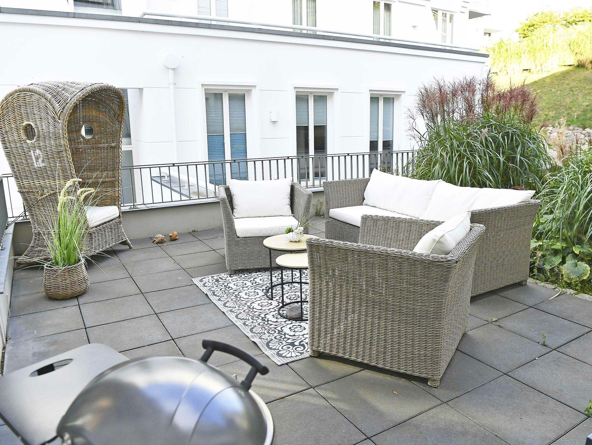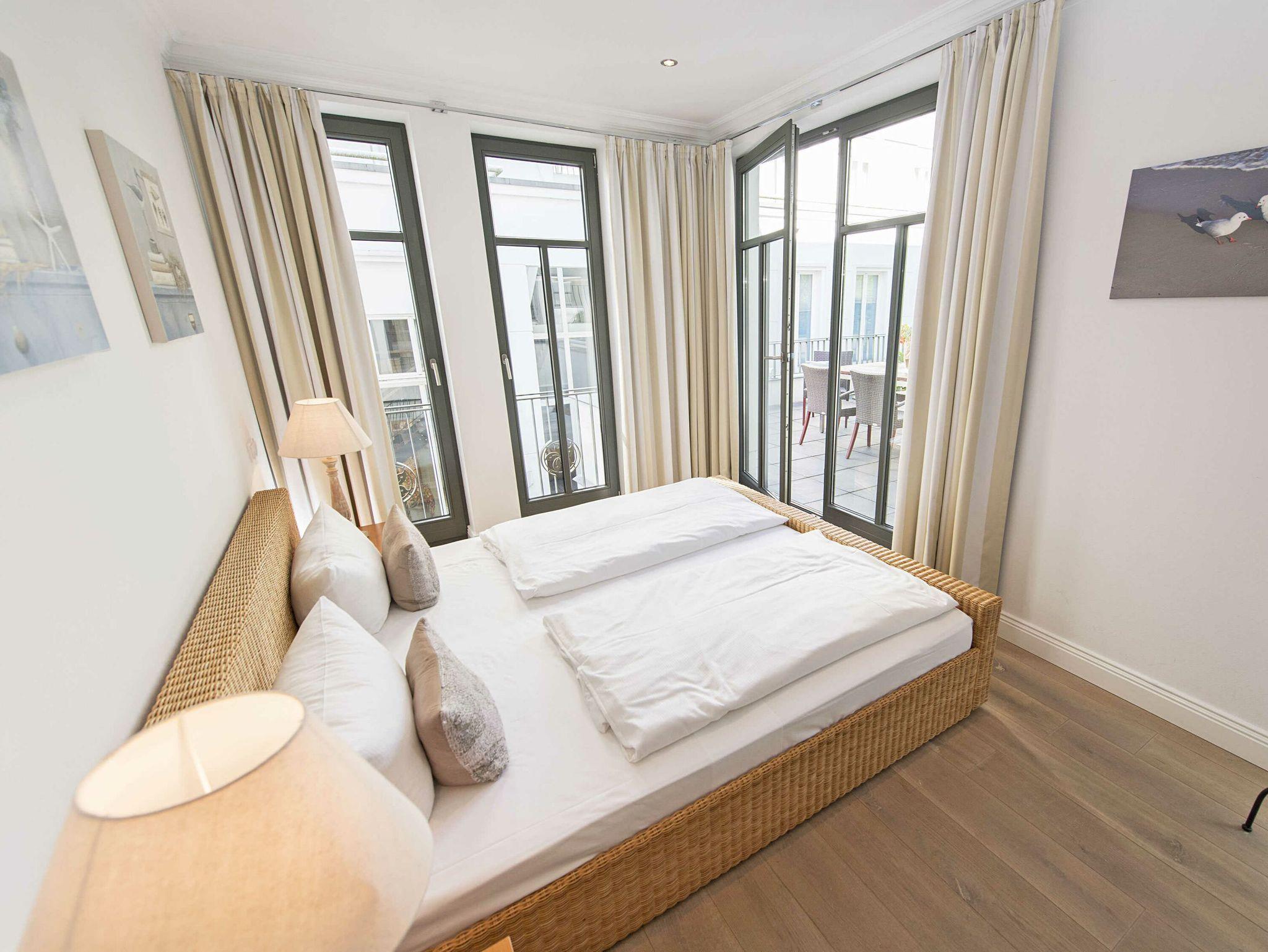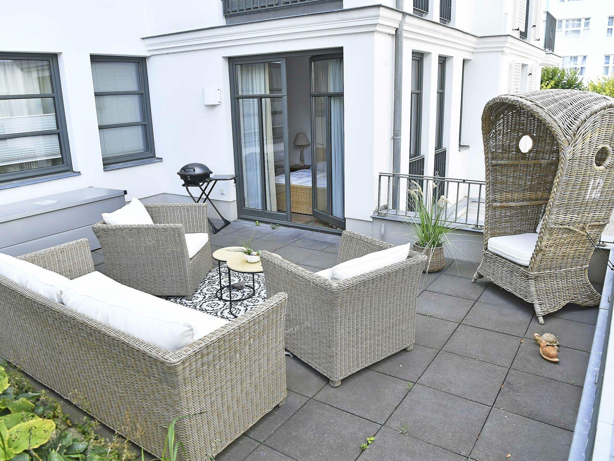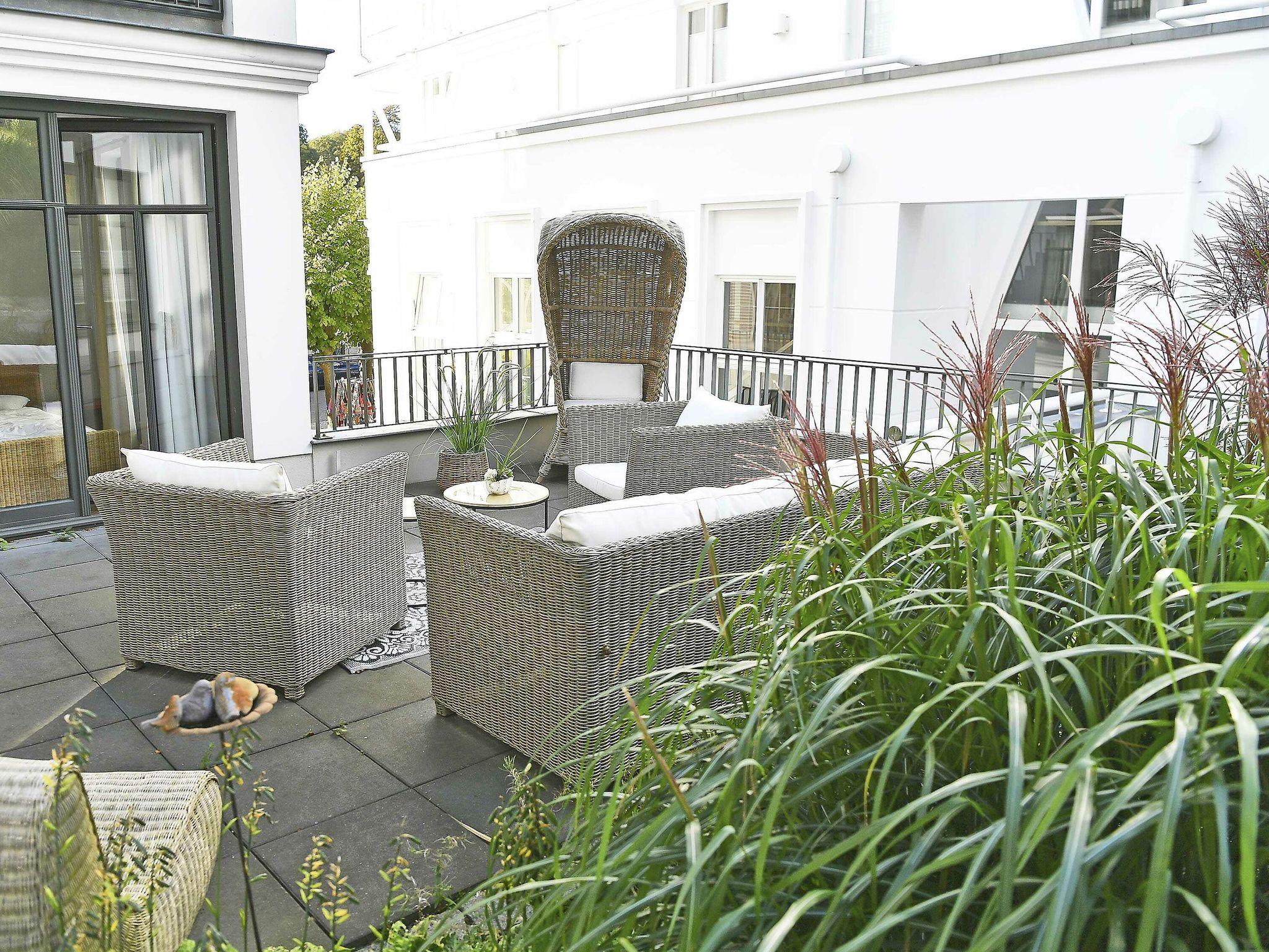 Das großzügige Appartement besitzt einen sehr gemütlichen West-Balkon mit Blick auf die Wilhelmstrasse sowie eine großzügige und sonnige Gartenterrasse. Genießen Sie den Frühling mit einem ausgedehnten Frühstück auf der eigenen Sonnenterasse oder nehmen Sie im villeneigenen Pool ein erfrischendes Bad an warmen Sommertagen. Genießen Sie die ersten Herbststürme am prasselnden Kaminfeuer oder einen herrlich verschneiten Jahreswechsel mit Feuerwerk über dem Meer.