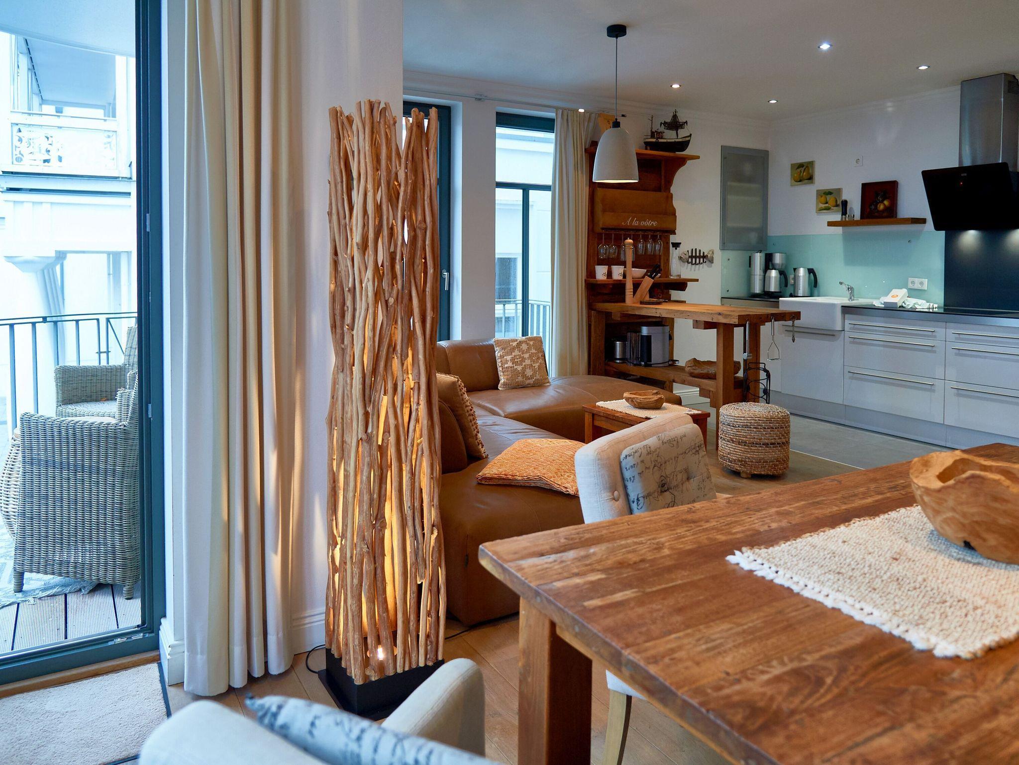 Das 3-Raum-Appartement Findling liegt von der Wilhelmstraße gesehen im 1. Obergeschoss, jedoch ebenerdig zur rückseitigen Grünanlage mit dem beheizten Außenpool (saisonal in Betrieb). Das Appartement wurde vom Eigentümer ausschließlich mit hochwertigen MARKTEX Möbeln ausgestattet. Bei der Einrichtung treffen modern und rustikal aufeinander ein besonderes Wohlfühlambiente ist damit garantiert. Maritime Dekorationselemente runden die exklusive Ausstattung dieses Appartements ab.