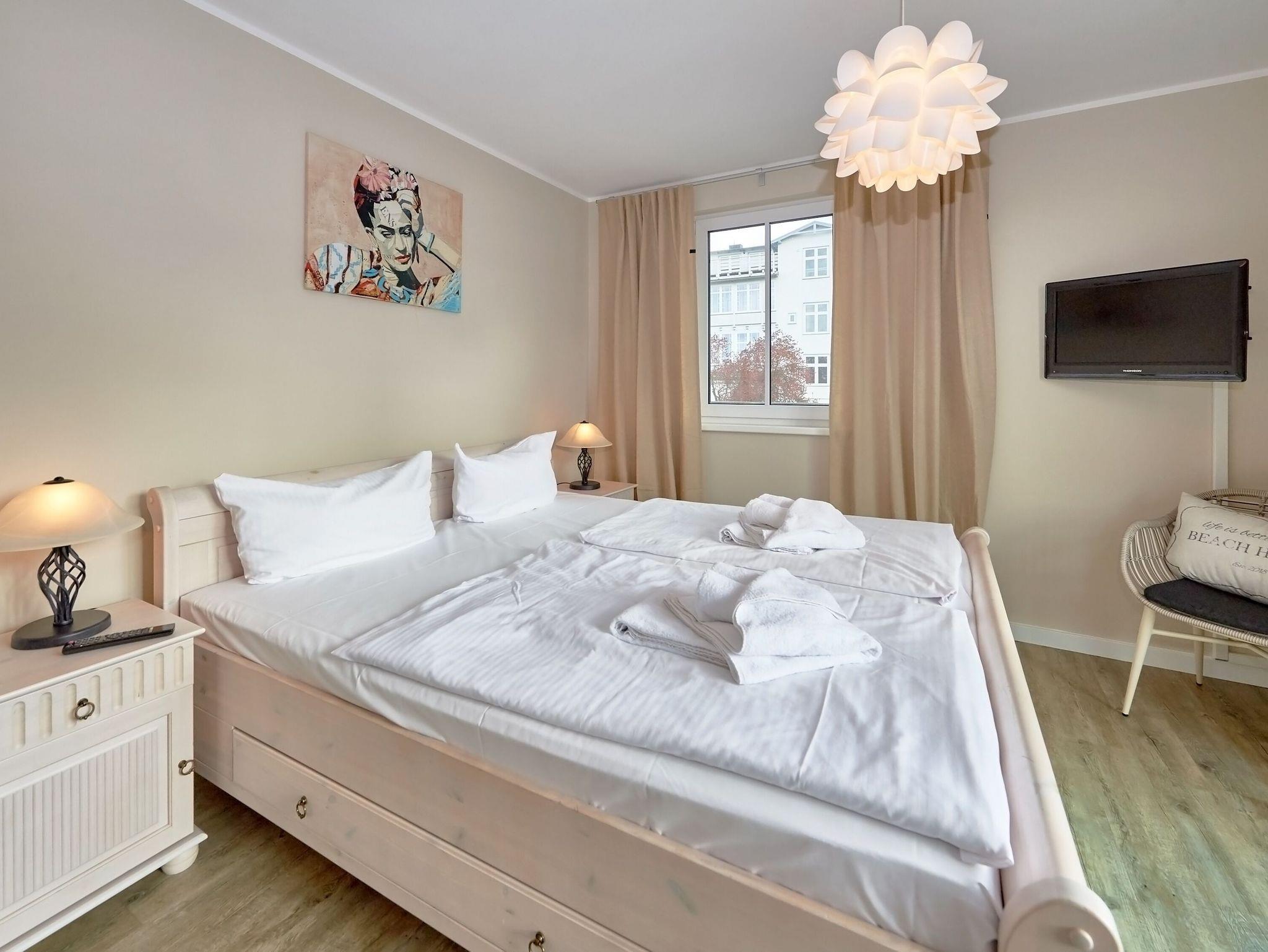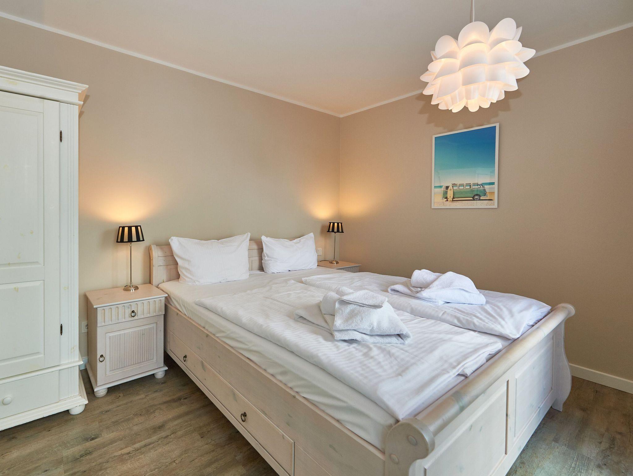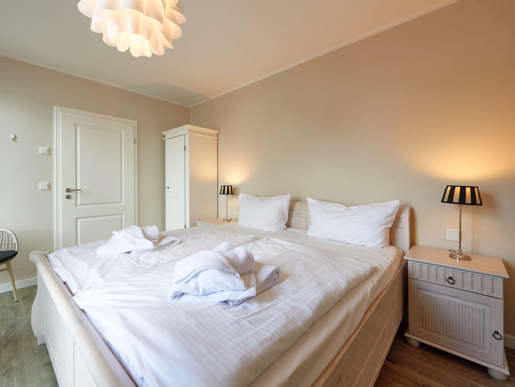 Ihr Appartement hat keine direkten Nachbarn und ist im weißen Landhausstil eingerichtet. Die technische Ausstattung mit flächendeckender Fußbodenheizung, großem Flachbild-TV, DVD-Player, Blu-Ray-Player, Stereoanlage und kostenfreiem W-LAN lässt keine Wünsche offen. Machen Sie es sich auf der herrlich gemütlichen Couch (Aufbettungsmöglichkeit für zwei Personen) bequem und genießen Sie das stilvolle Ambiente Ihres Zuhauses auf Zeit.