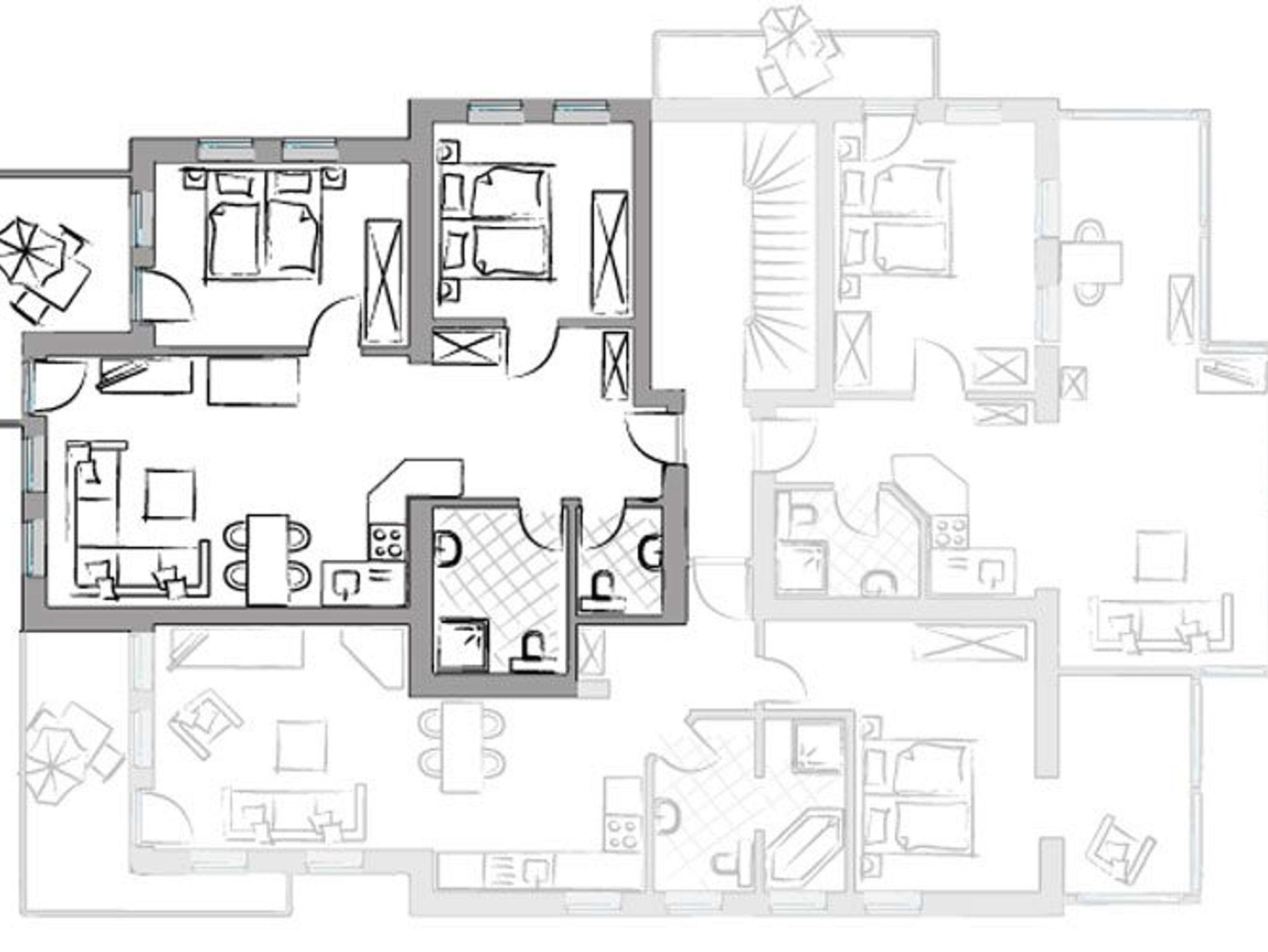 Das Appartement verfügt über zwei separate Schlafzimmer mit jeweils einem Doppelbett (1,80 x 2,00 m) sowie einen zweiten Fernseher in einem der beiden Schlafzimmer. Kinderreisebettchen können in den Schlafzimmern nicht untergebracht werden!